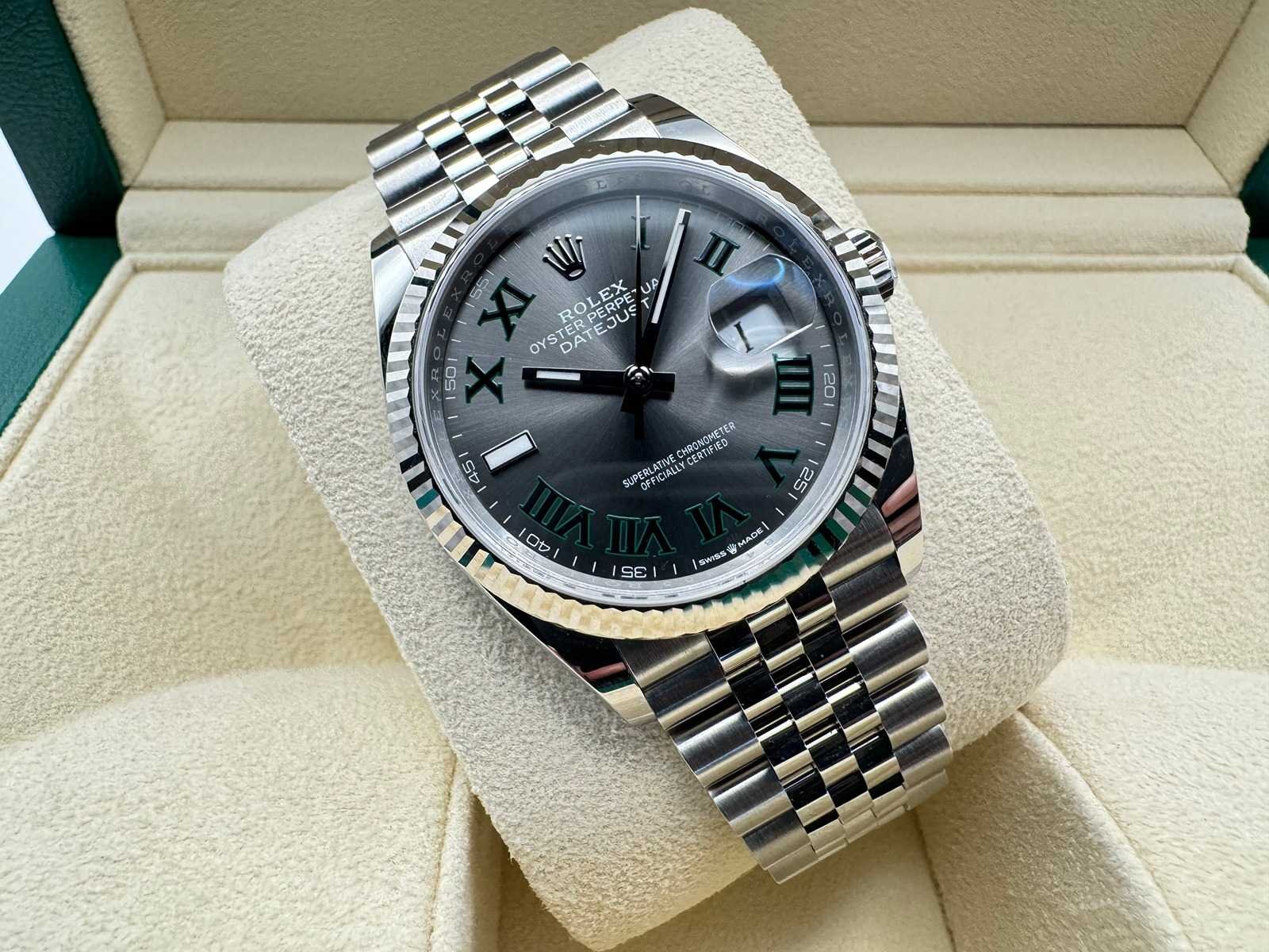 Rolex Datejust 36 Wimbledon Dial 126234 Introducing the Rolex Datejust 36 Wimbledon Dial 126234, a sleek and reliable timepiece from 2025. Key Features: Design and Materials: Case: 36mm case made from 904L Oystersteel and 18K white gold. Bezel: Fluted bezel in 18K white gold. Dial: Wimbledon dial with distinctive Roman numerals and Chromalight display for enhanced legibility. Crystal: Scratch-resistant sapphire crystal with Cyclops lens over the date. Movement: Caliber: Powered by the Rolex Calibre 3235, a self-winding mechanical movement. Power Reserve: Approximately 72 hours. Strap: Material: Jubilee bracelet in Oystersteel. Clasp: Jubilee clasp Additional Features: Water Resistance: Waterproof to a depth of 100 meters (330 feet). Date Function: Instantaneous date with rapid setting. Warranty: International Rolex warranty until 2029. The Rolex Datejust 36 Wimbledon Dial 126234 offers modern precision and a timeless design. This 2025 model is a versatile and dependable choice for any occasion. Bezorgtermijn 7 dagen Merk: Rolex Model: Datejust 36 Bouwjaar: 2026 Referentienummer: 126234 Materiaal kast: Steel Materiaal horlogeband: Steel Jubilee Fluted Materiaal sluiting: Steel Wijzerplaat: Wimbledon Kastmaat: 36 mm