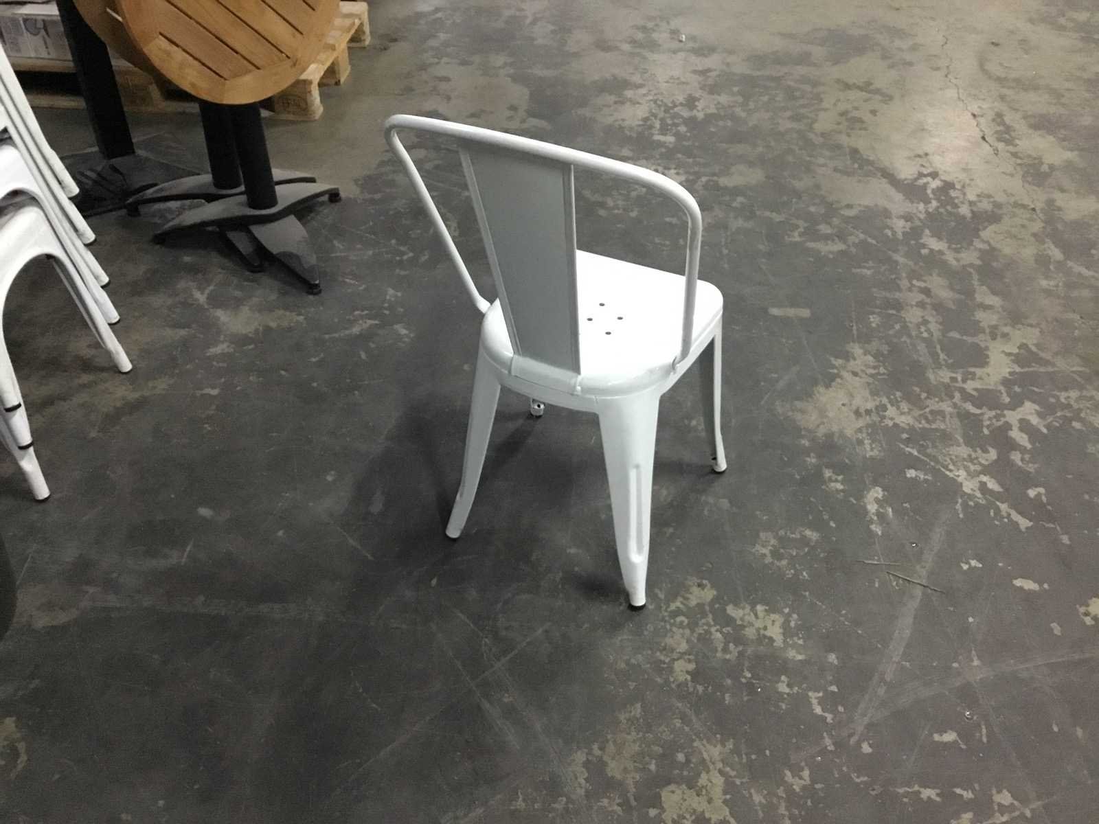 Model: terrasstoel Kleur: Wit Lengte: 38cm Breedte: 45cm Hoogte: 86cm Materiaal: Ijzer