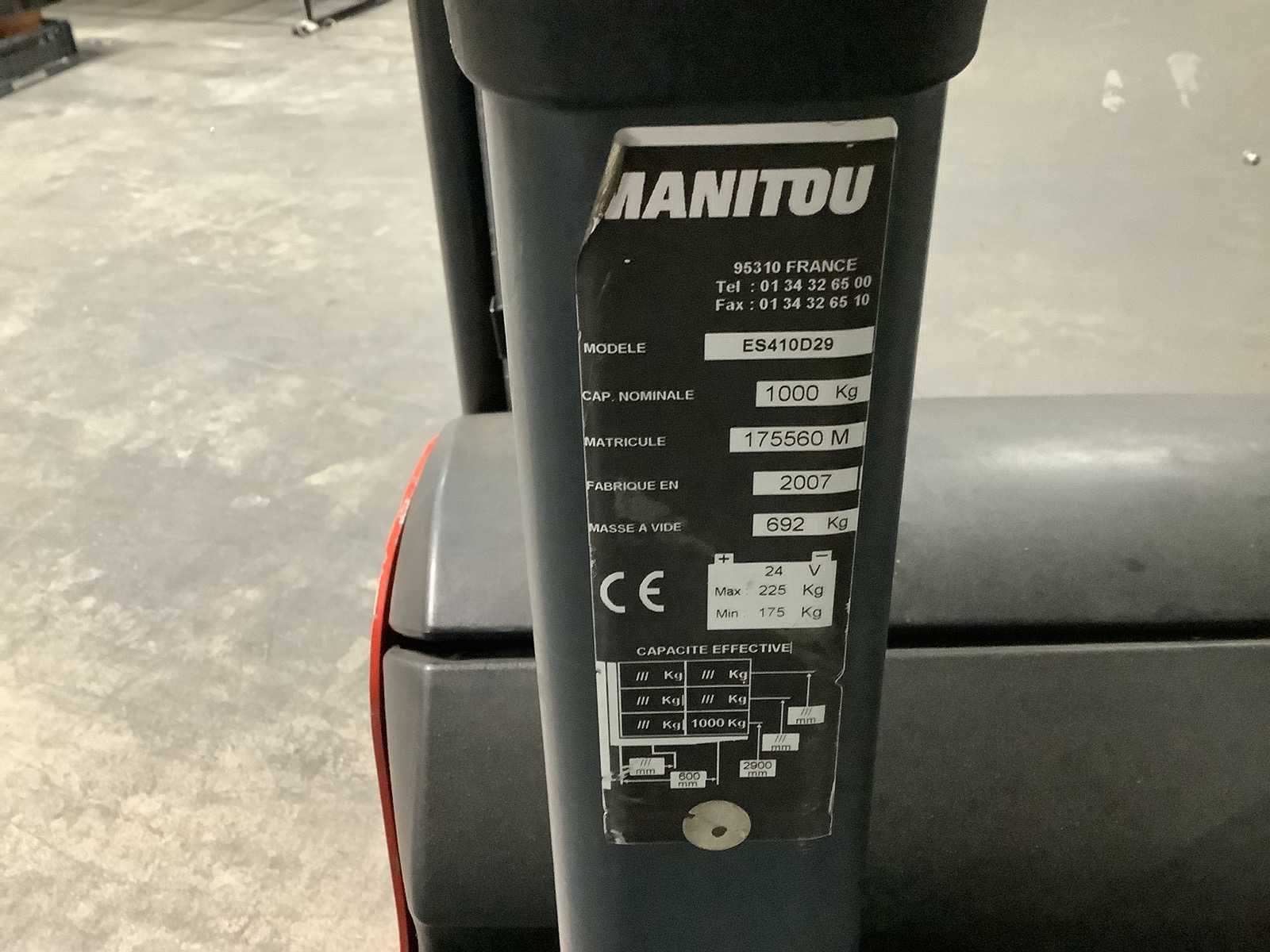 Merk: Manitou Type: Es410d29 Bouwjaar: 2007 Hefvermogen: 1000kg Accu lader: true