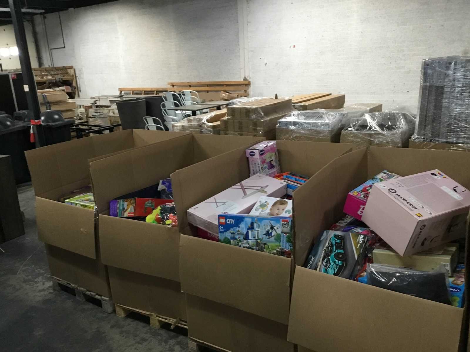 8 Palletboxen vol met diverse speelgoed inclusief pallet. Merk: Lego, Baby Born, Vtech, Little Dutch Product type: Divers speelgoed Lengte: 120cm Breedte: 80cm Hoogte: 80cm