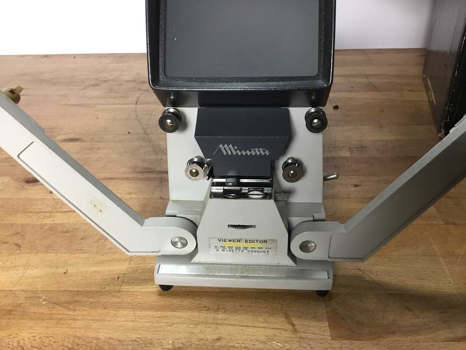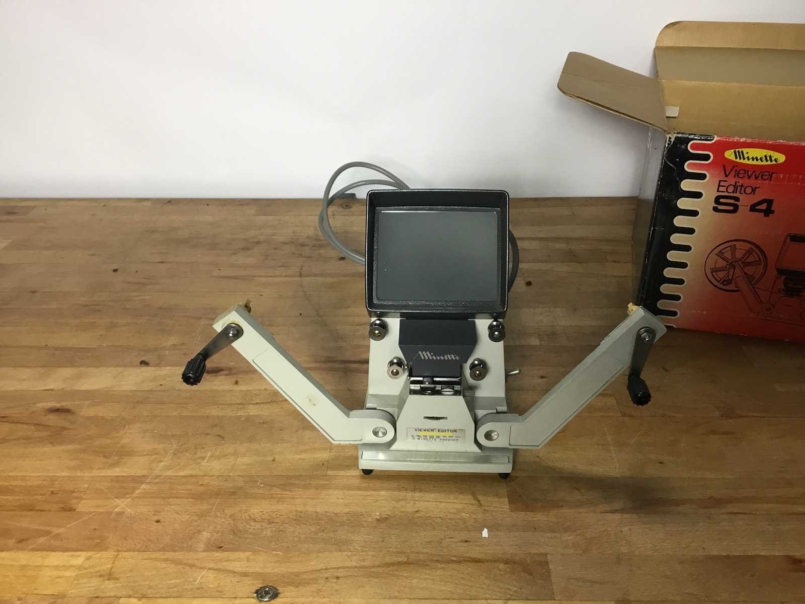 Vintage Minette Viewer Editor S4 voor het bewerken van films van 8 mm. In goede staat, inclusief originele verpakking. Ideaal voor filmliefhebbers en verzamelaars. Bekijk de foto's voor details. Merk: Minette Model: Viewer editors4