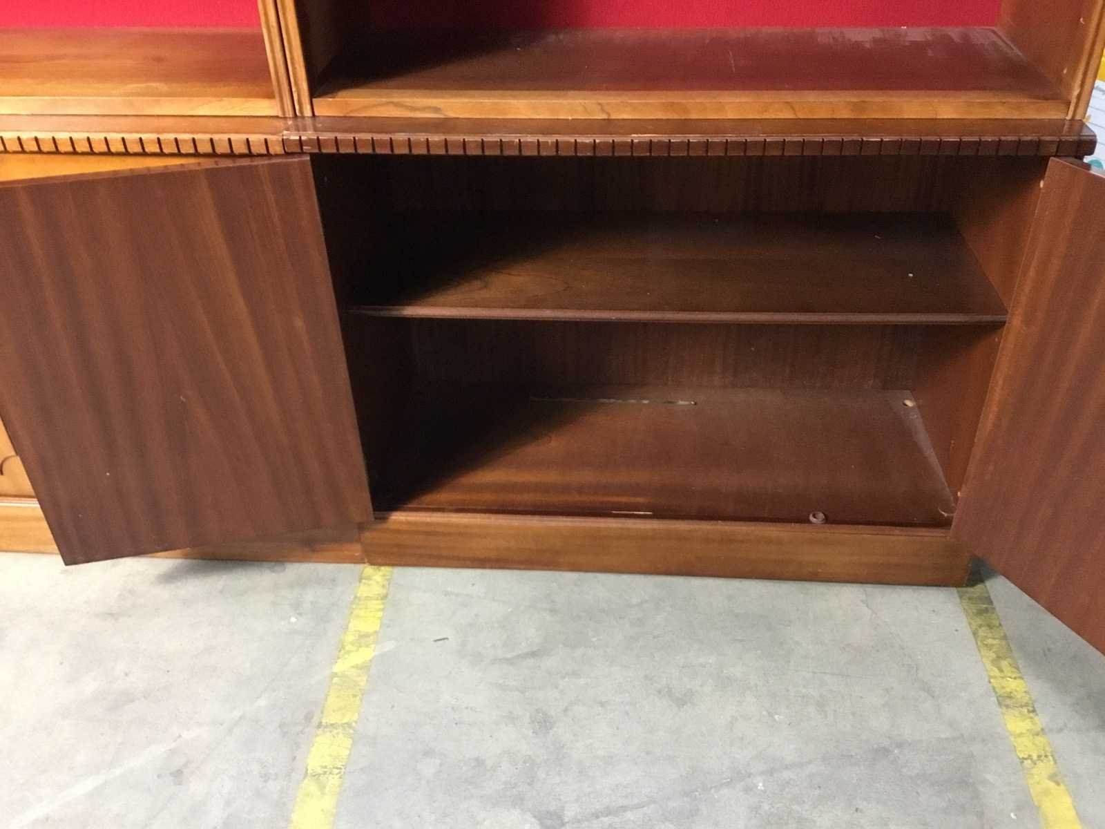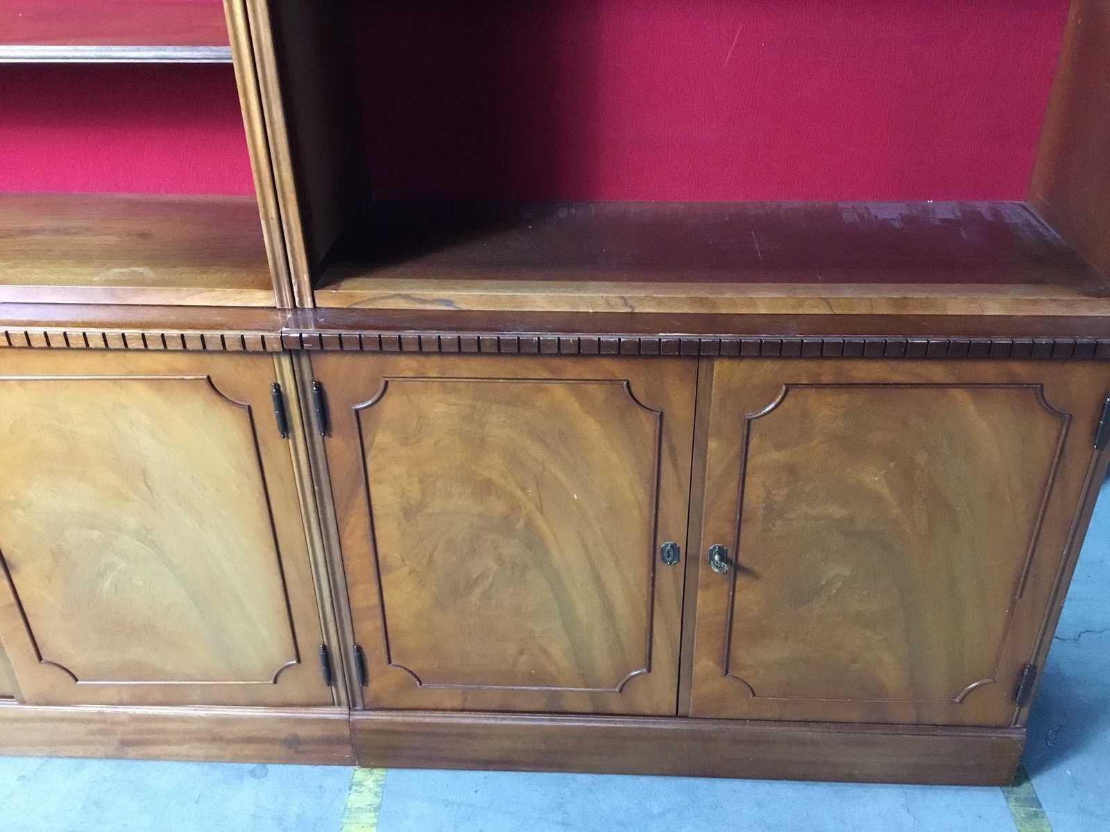 Klassieke houten boekenkast met twee secties en een opvallende rode stoffen achterwand. Kast bestaat uit 2 delen het bovenste deel is 30 diep en 115 hoog. Antiek en in goed conditie. Merk: Antieke showkast Lengte: 95cm Breedte: 40cm Hoogte: 187cm Diepte: 35cm