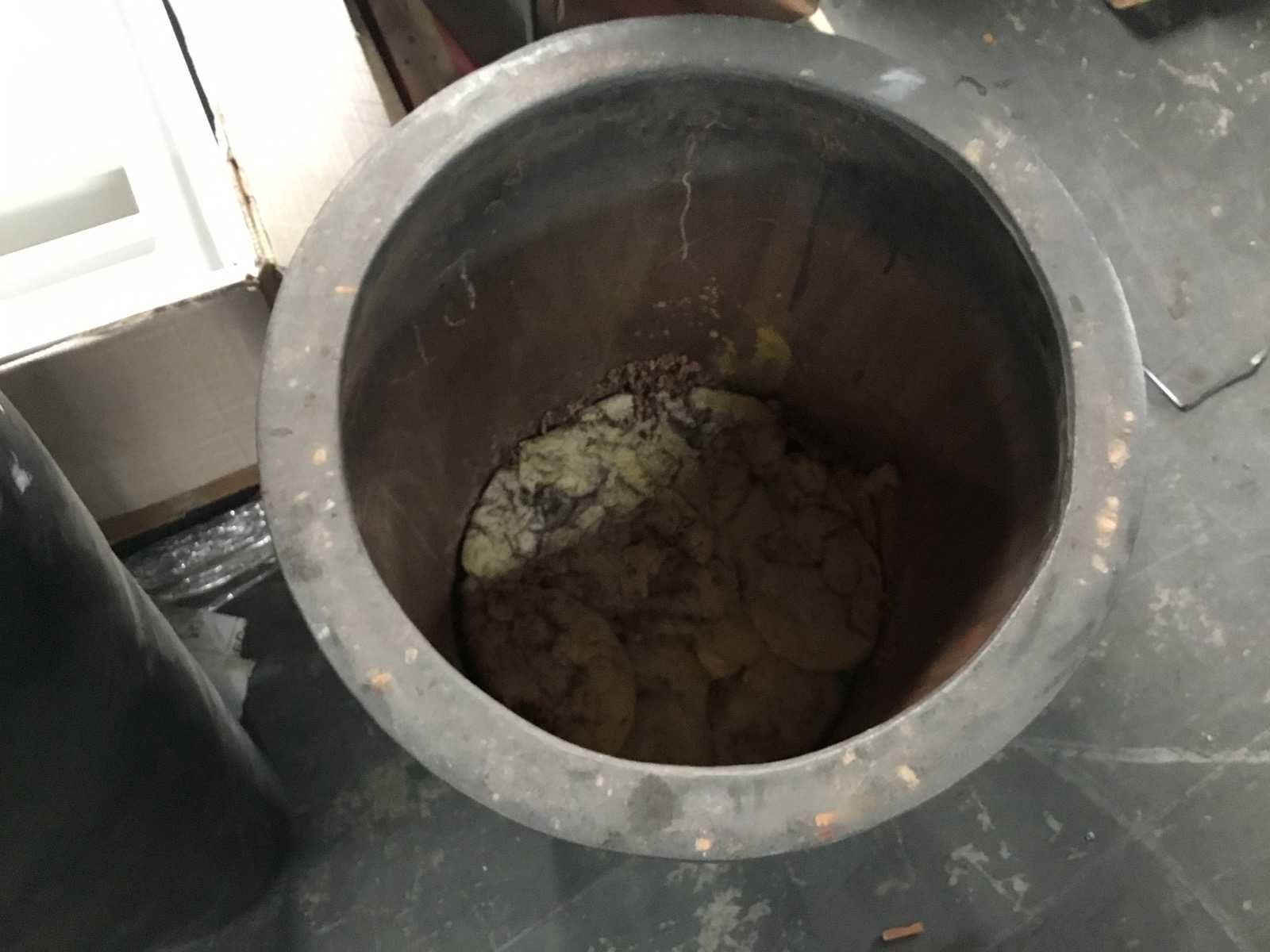 Voor beschadigingen zie foto, Let op ivm vervoer: Artikel is zwaar. Kleur: Grijs Diameter circa: 54cm Gewicht: 100kg Lengte: 130cm