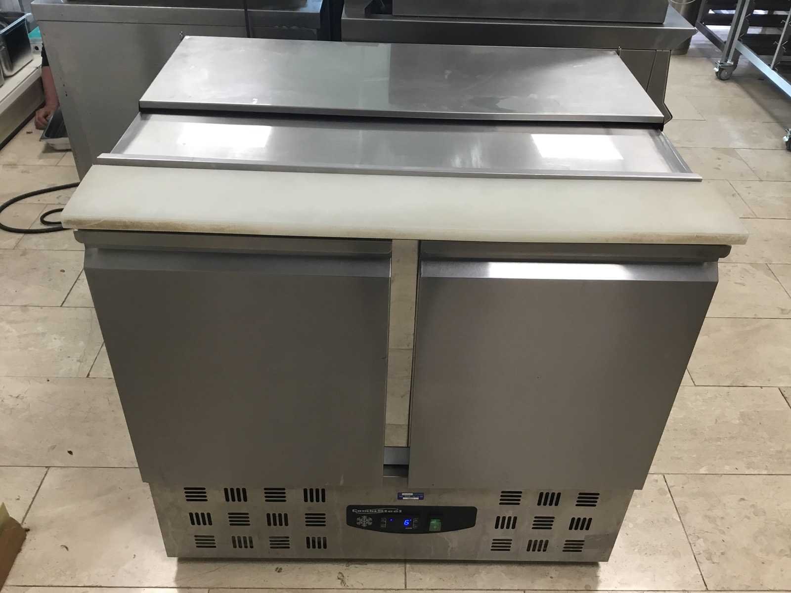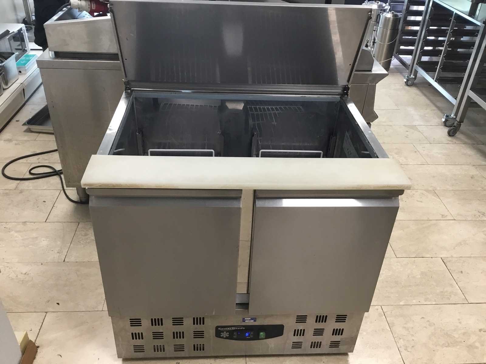 Deze ruime, maar compacte koelwerkbank van Combisteel is precies wat u nodig heeft als het in uw horeca bedrijf heel belangrijk is om zo efficiënt mogelijk om te gaan met de beschikbare ruimte. U heeft hiermee een koelkast voor het opslaan van uw producten en tegelijkertijd een saladettes aan de boven kant. zodat u producten snel kan pakken Dit tweedeurs model heeft 2 roosters voor het plaatsen van uw producten, daarnaast kunt u ook de bodem als schap gebruiken. Compact Line modellen zijn minder breed en hoger dan Standard en Pro Line modellen, omdat de compressor in de bodem zit verwerkt. De koeltemperatuur ligt op + 2° C / + 8° C, en wordt in stand gehouden door een statisch koelingssysteem met ventilator. De temperatuur kunt u gemakkelijk regelen met de temperatuur regulator dat aan de voorkant van de kast zit. Dit model is uitgerust met een automatische ontdooisysteem, wat onderhoud en schoonmaak tot een minimum beperkt. Merk: Combisteal Model: SEC900 Spanning: 230V Lengte: 90cm Breedte: 71cm Hoogte: 87cm Materiaal: RVS