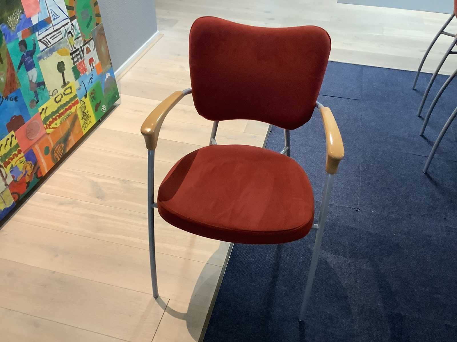 Merk: Vepa Model: Stoel Kleur: Rood Lengte: 56cm Breedte: 50cm Hoogte: 85cm Zithoogte: 47cm