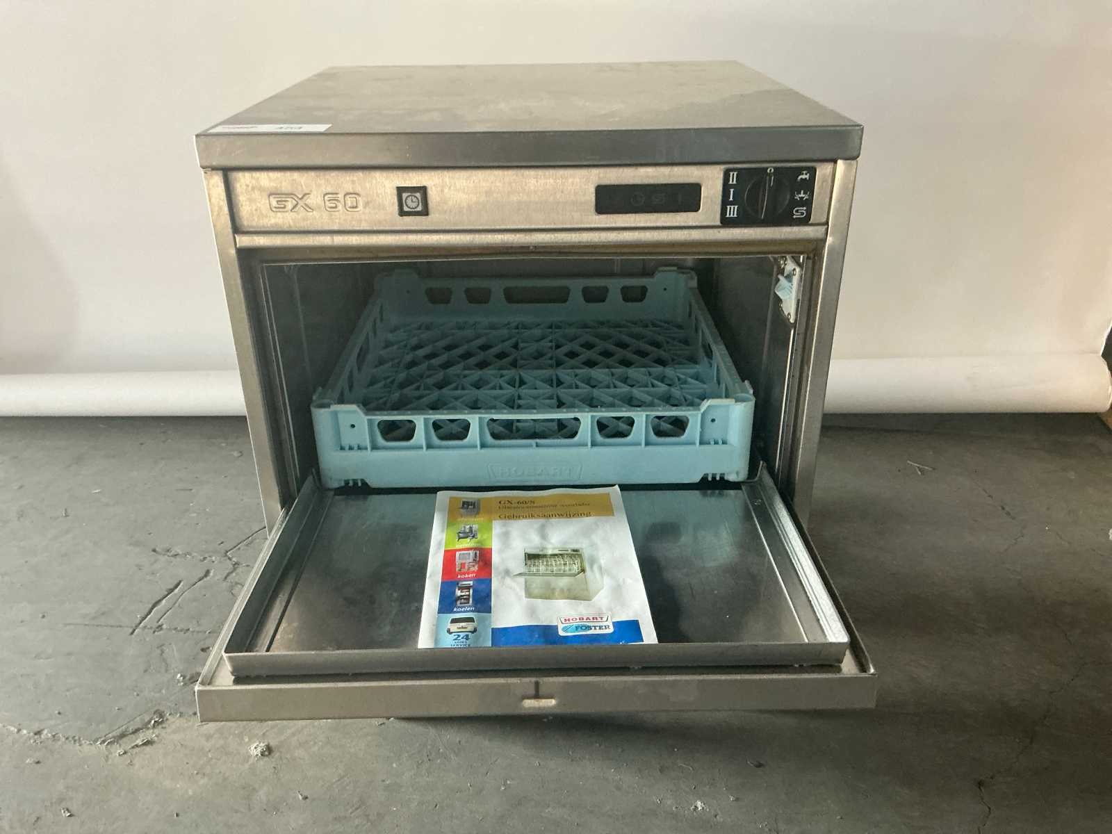 Merk: Hobart Type: GX 60 Totale afmeting L: 60cm Totale afmeting Breedte: 60cm Totale afmeting Hoogte: 70cm Aansluiting: 400V Rvs: true Korf afmeting b: 50mm Korf afmeting l: 50mm