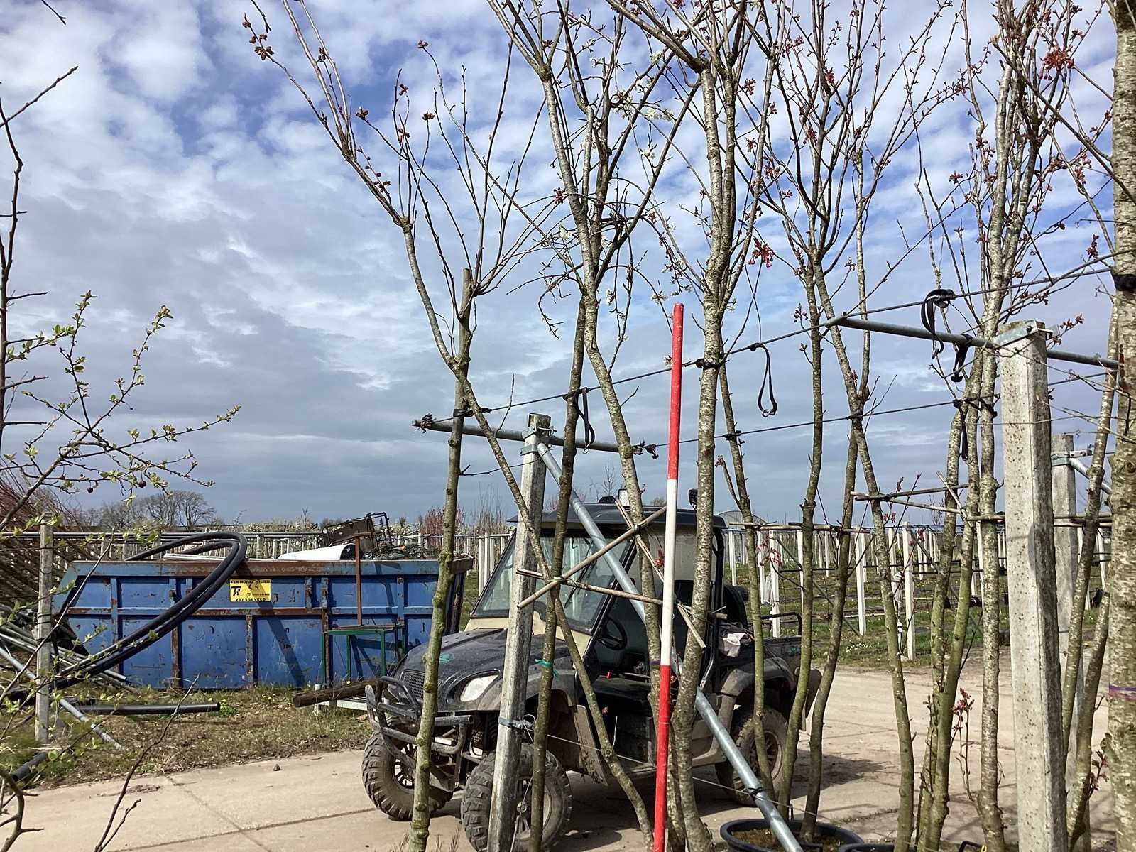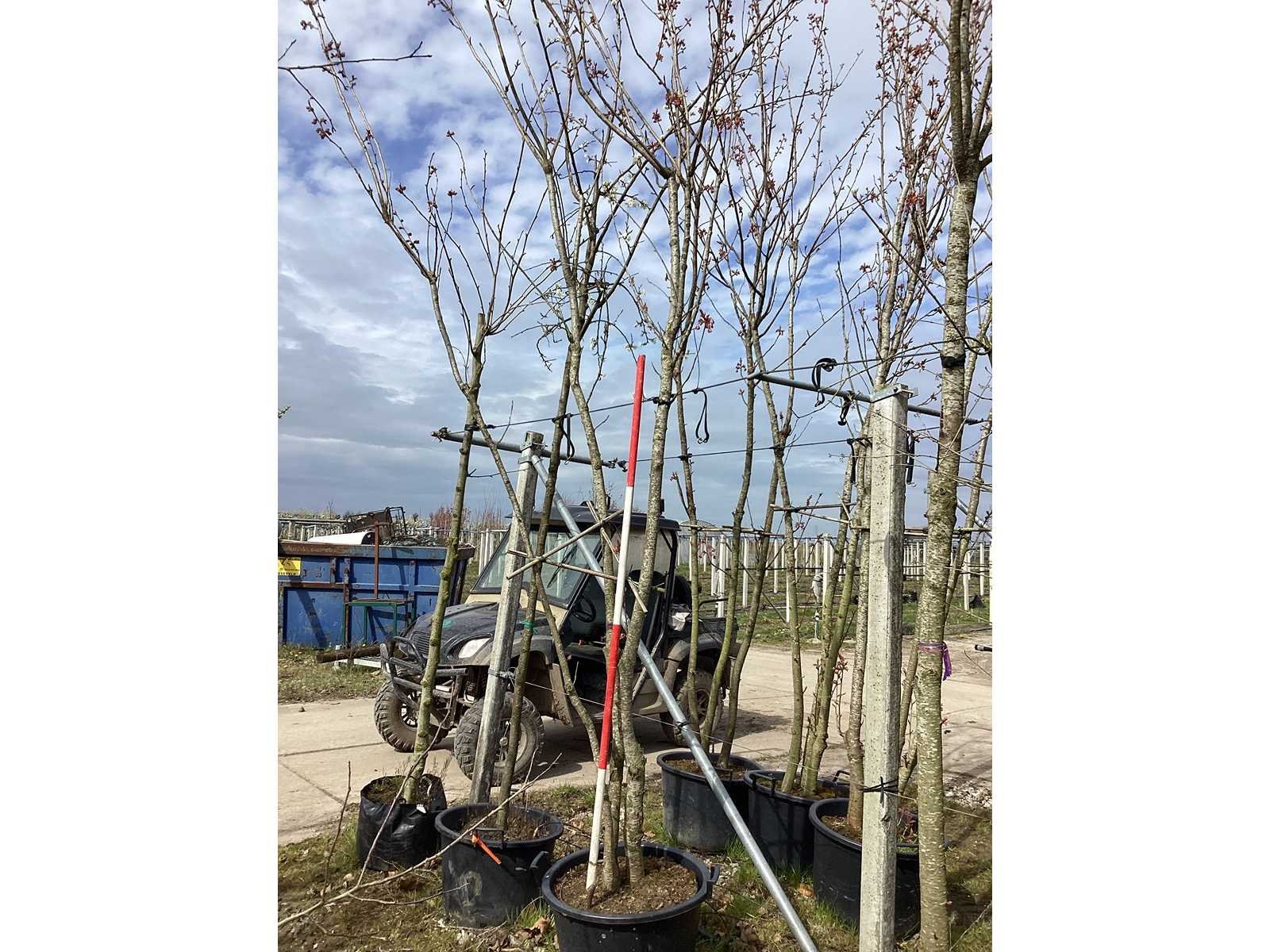 De kavels worden door ons verzameld en klaargelegd voor transport; Wilt u gebruik maken van de bezorgservice neem dan contact op via het emailadres arina@groviatrees.com. Voor overige vragen bel 0645641495 of 0633049344 Type: Japanse Sierkers Latijnse benaming: Prunus kanzam Hoogte ca.: 400cm In pot: true Stamdikte: 20cm