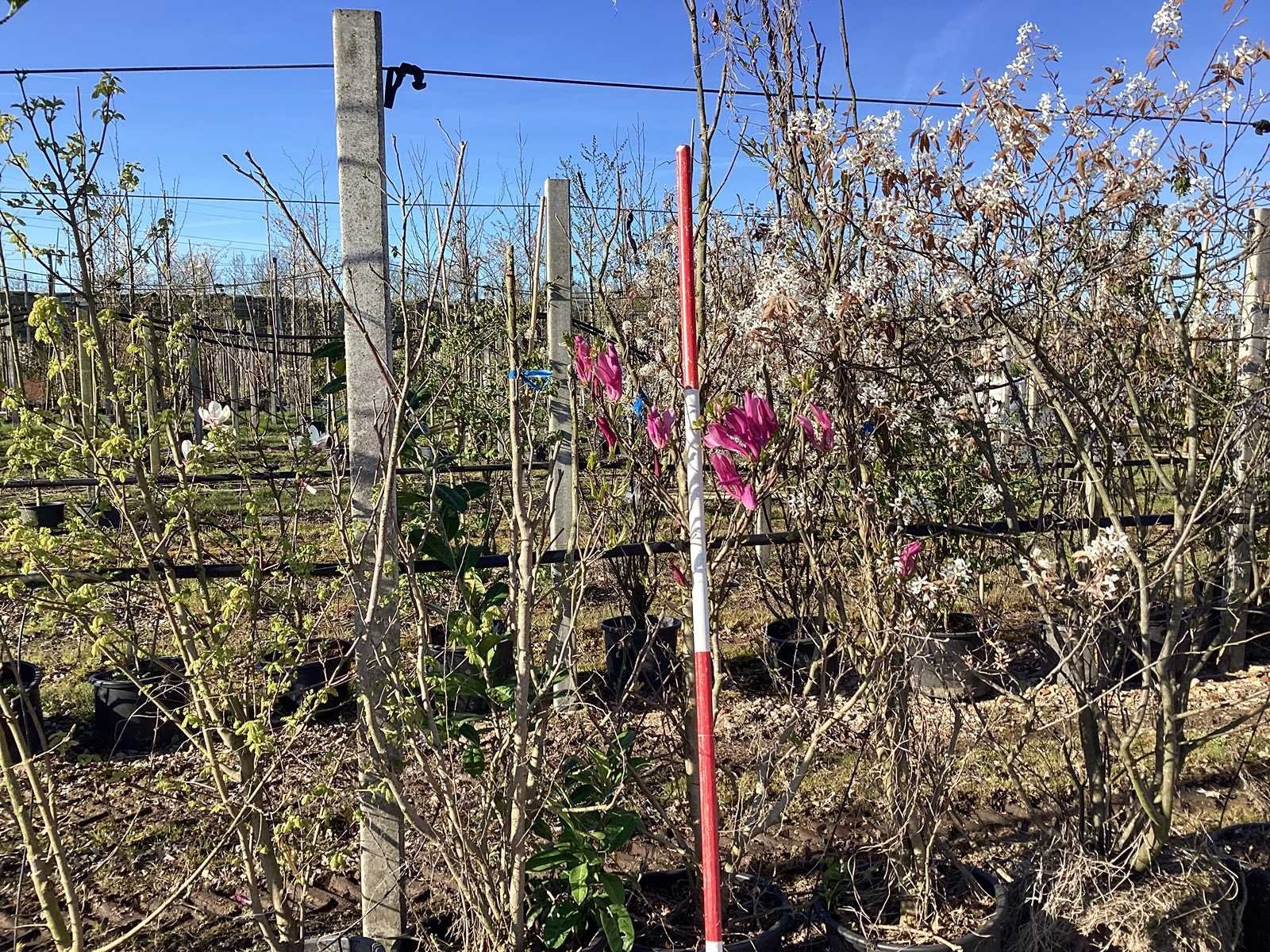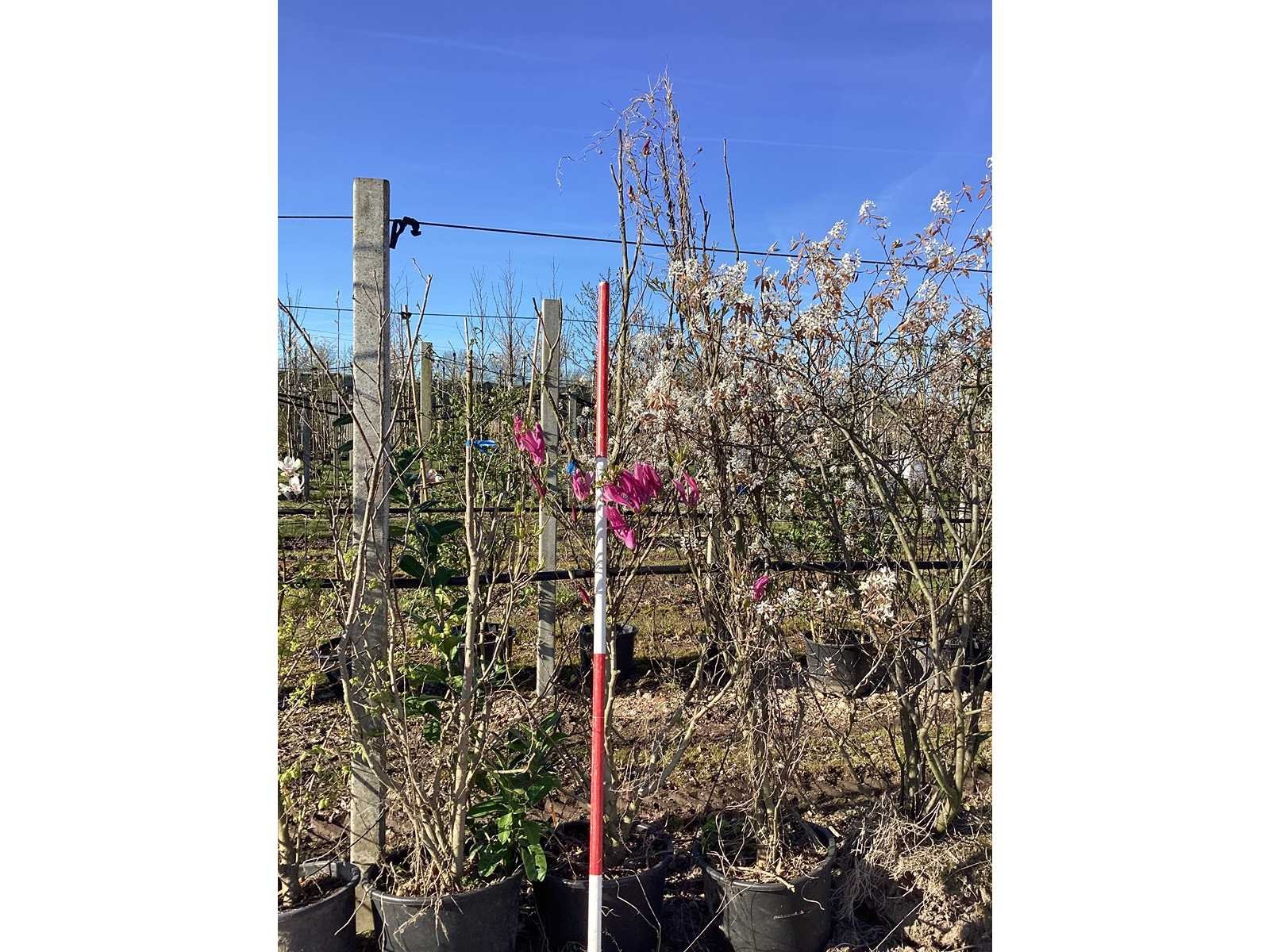 De kavels worden door ons verzameld en klaargelegd voor transport; Wilt u gebruik maken van de bezorgservice neem dan contact op via het emailadres arina@groviatrees.com. Voor overige vragen bel 0645641495 of 0633049344 Type: Valse Tulpenboom Latijnse benaming: Magnolia susan Hoogte ca.: 175cm In pot: true Stamdikte: 12cm