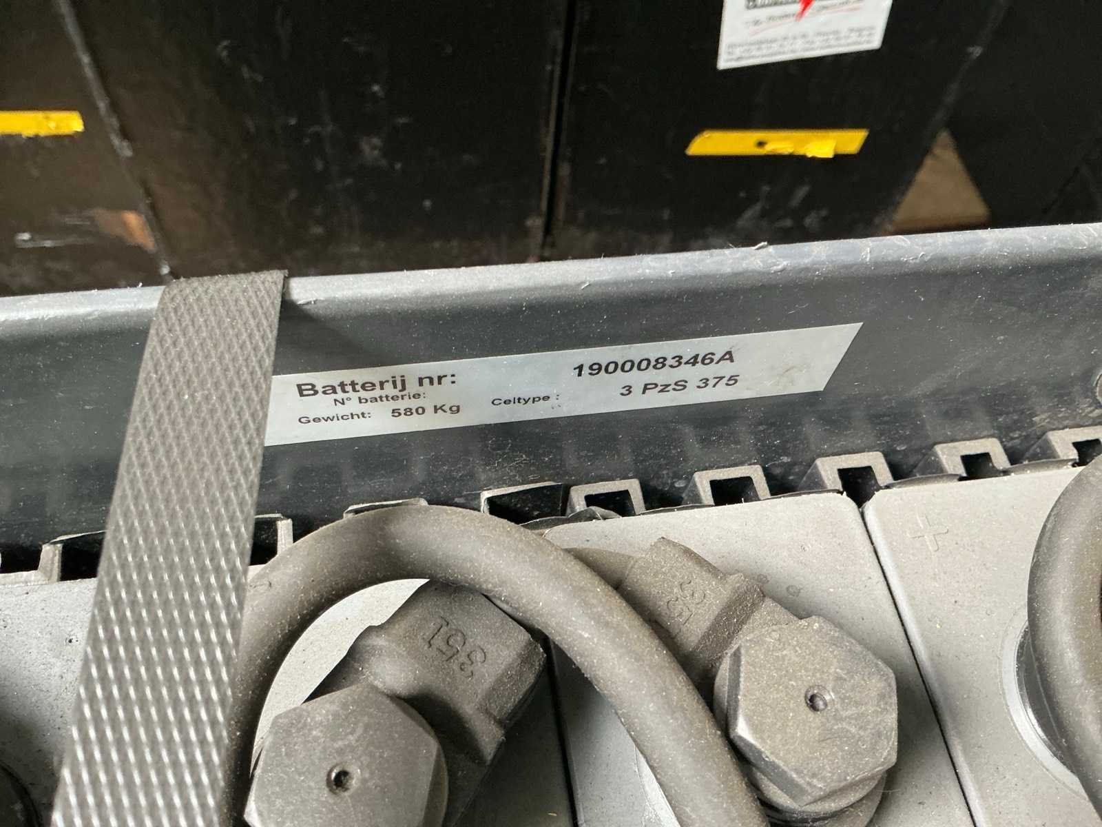 Merk: Hoppecke emrol Model: 3hpzs375 Gewicht: 559kg Lengte: 83cm Breedte: 41cm Hoogte: 63cm