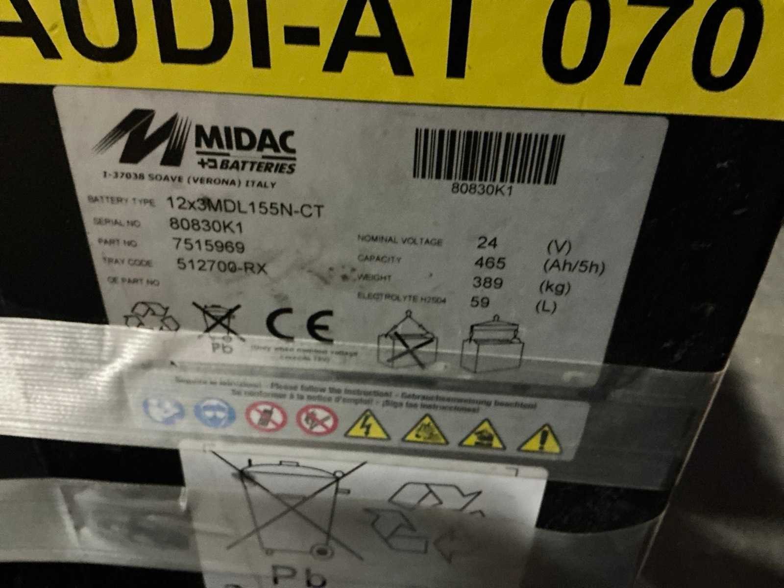 De foto is een voorbeeldfoto. 1 partijnummer = één batterij Merk: Midac Model: 12x3mdl155n-ct Product type: 24v Gewicht: 389kg Lengte: 80cm Breedte: 22cm Hoogte: 80cm