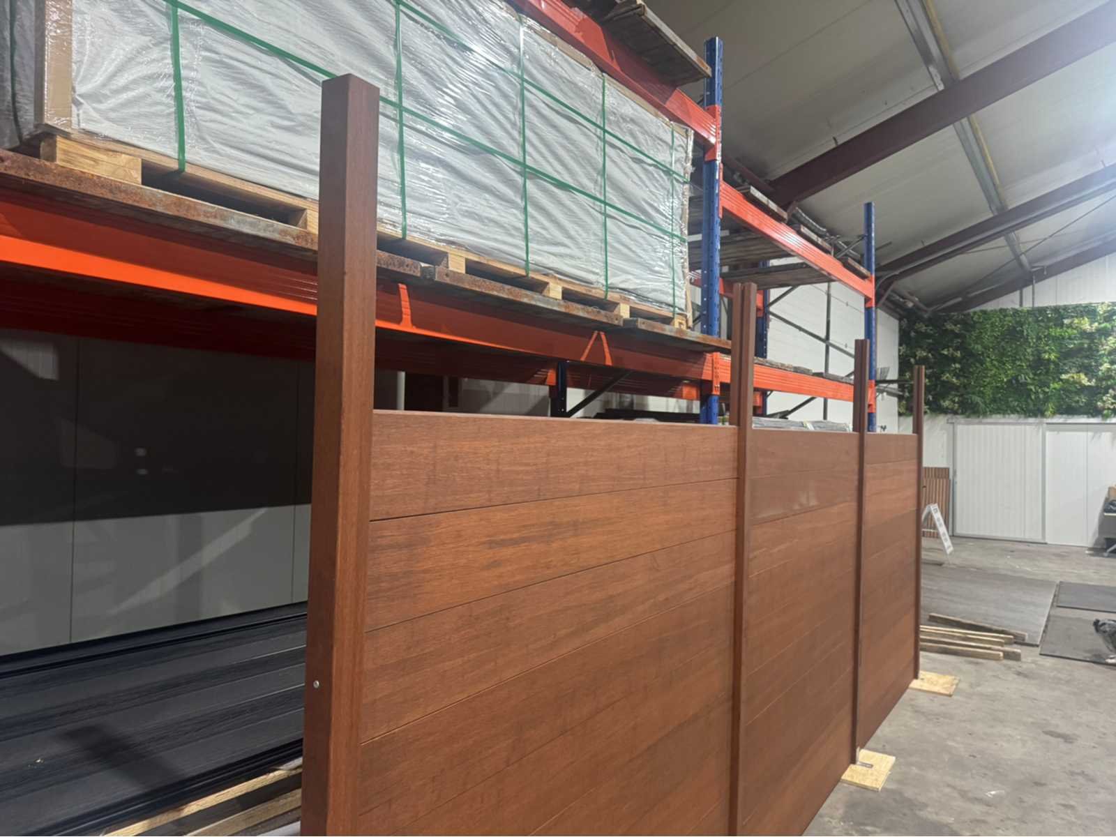 Bamboe geperste schutting; zeer lange levensduur; het product is onder hoge druk geperst; palen zijn 70x70 mm; lengte van de palen is 2500 mm; tussen planken zijn 1950 mm lang en 200 mm; plank dikte is 20 mm; dit kavel bestaat uit 10 palen en 90 planken; alles is ongebruikt; Merk: Acapulco Model: Fence