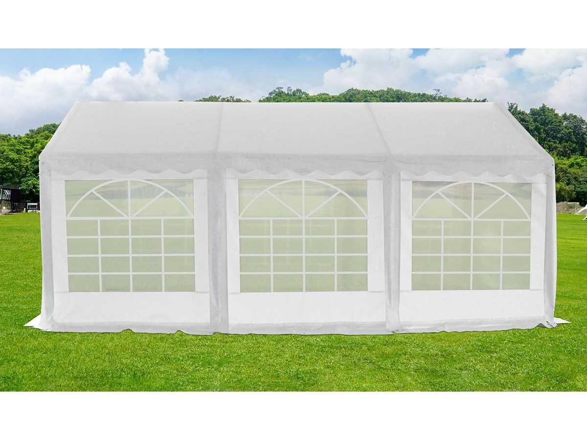 Gegalvaniseerd frame, 38mm x 1mm dik, gording 25 x 0.8 mm, 380 gram pvc zeil wit, ongebruikt in krat Model: 8x4x3 meter Product type: 400gram Kleur: wit Gewicht: 190kg Lengte: 800cm Breedte: 400cm Hoogte: 300cm
