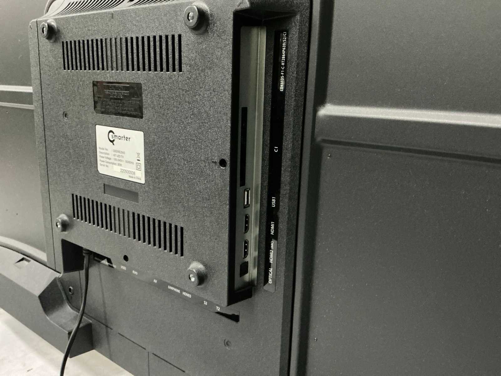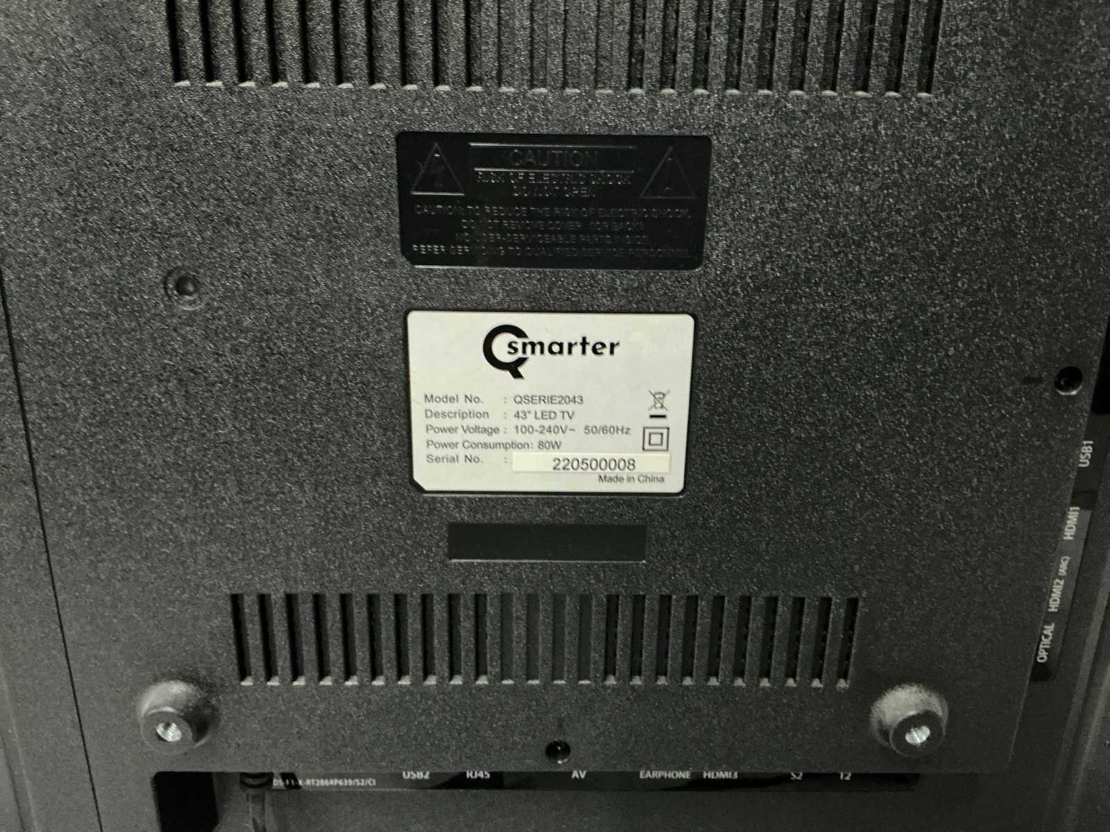 Met toebehoren, 43 Led tv Merk: Qsmarter Model: QSERIE2043 Beelddiagonaal: 110'' Wifi: true USB: 2 HDMI: 3 Smart TV: true Kleur: Zwart Lengte: 95.5cm Breedte: 8cm Hoogte: 60.5cm