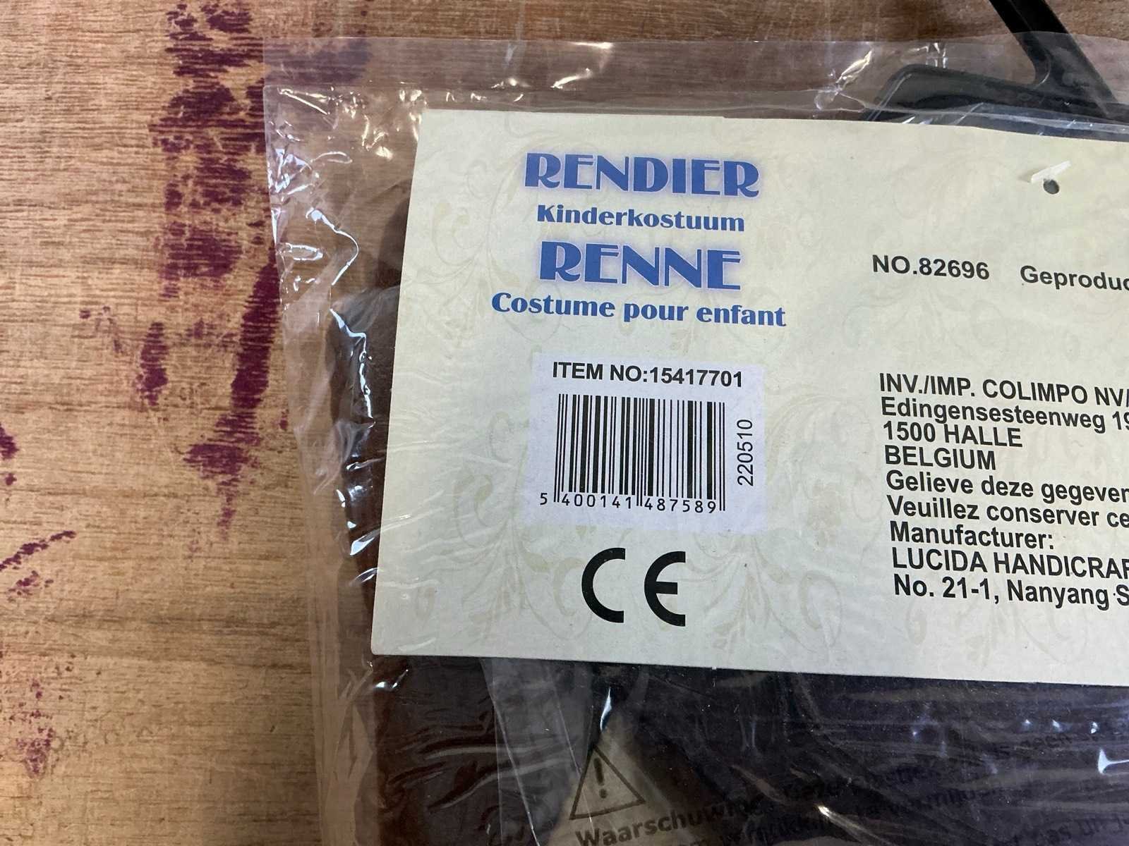 Deze kavel is afkomstig van een van de grootste retailers van Nederland. Het product is mogelijk niet volledig functioneel en origineel verpakt. Daarnaast kunnen er gebruikssporen zijn. Om een goed beeld te krijgen adviseren wij om gebruik te maken van de kijkdag. Met de juiste kennis en onderdelen kunnen apparaten gerepareerd worden. Kom naar de kijkdag om de werking en reden van retour persoonlijk te controleren of testen. Beoordeel persoonlijk of een defect te repareren valt. Wij adviseren u verder om de foto's zorgvuldig te bekijken om een goed beeld te krijgen van de huidige staat van het product en eventueel cosmetische schade te beoordelen. Door te bieden op dit kavel draagt u bij aan een duurzamere e-commerce industrie. Je geeft dit product een tweede leven en draagt bij aan het verminderen van e-waste en CO2 uitstoot. Merk: Rendier Product type: Kinderkostuum
