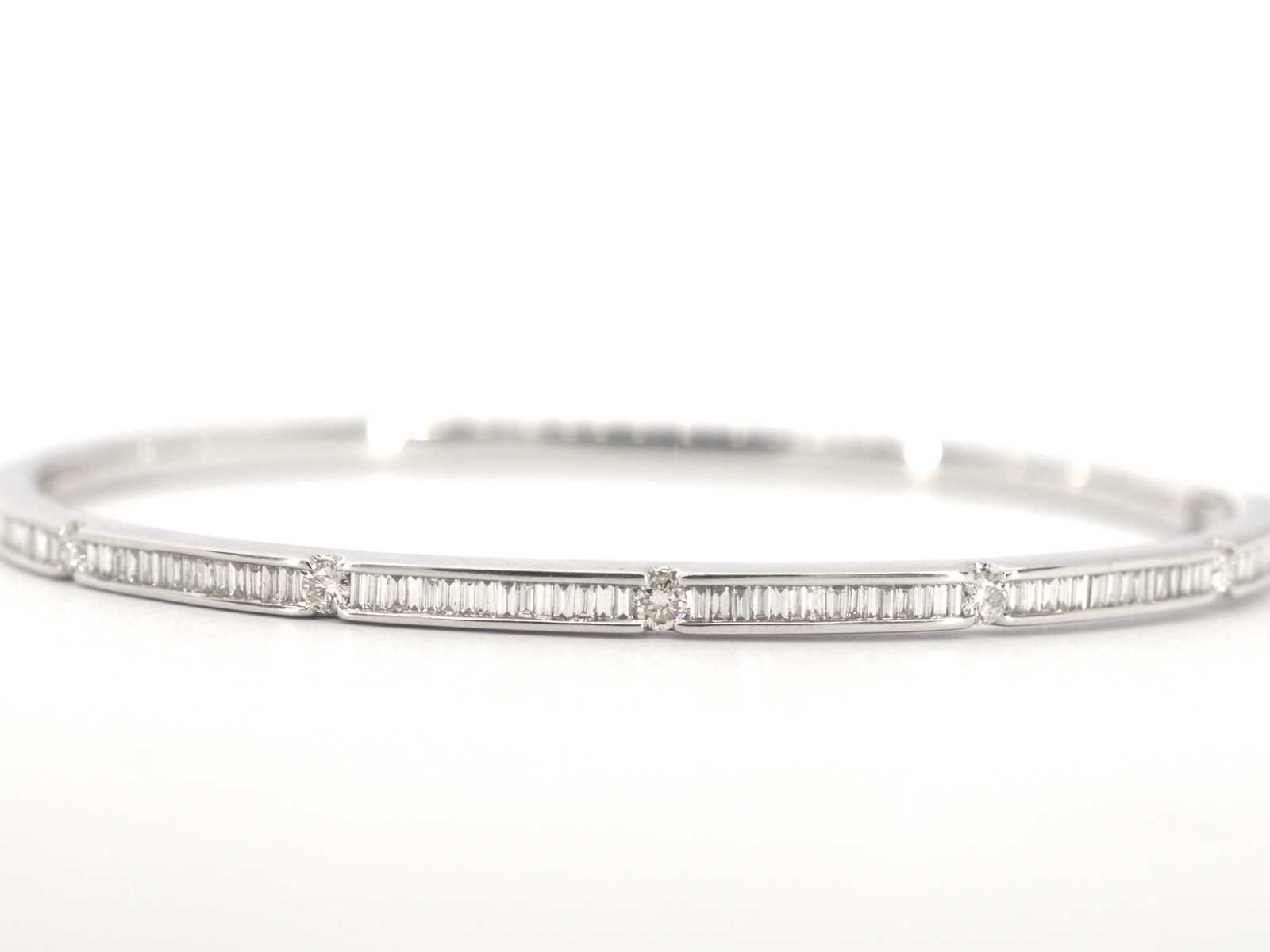 Samenvatting van gegevens Witgouden vaste armband met diamanten Diamant: Natuurlijk; Slijpvorm: Briljant en baguette geslepen; Gewicht (carat): 0.90 carat; Kleur: F; Zuiverheid: VS; Slijpkwaliteit: Zeer mooi; Juweel: Armband; Gewicht: 13.9 gram; Afmetingen/lengte: 60 x 50 mm; Materiaal: 18K goud (750); Conditie: Nieuw; Verpakking: Luxe sieradendoos; Toelichting: De kwaliteit is overgenomen van het rapport behorend bij item. De waardebepaling is een beoordeling van een gecertificeerde diamantair, gebaseerd op consumentenprijzen.; Consumentenprijs: € 15.200,- Within 14 days Materiaal: Goud Voornaamste diamant: Natuurlijk Kleur diamant: F Gewicht diamant: 0.90ct Slijpvorm diamant: Briljant en baguette geslepen Slijpkwaliteit diamant: Zeer mooi Zuiverheidsgraad diamant: VS Totaal gewicht: 13.9g Keurmerk: 750 Lage schatting: 12160€ Hoge schatting: 15200€
