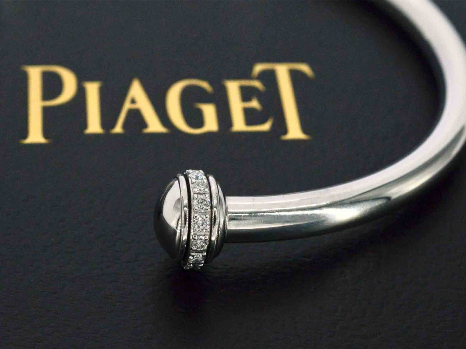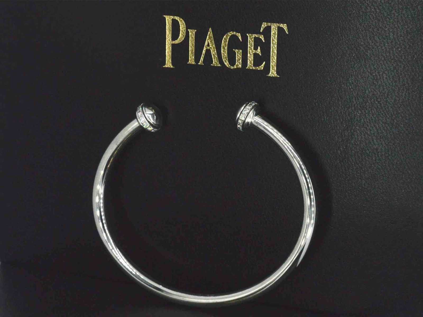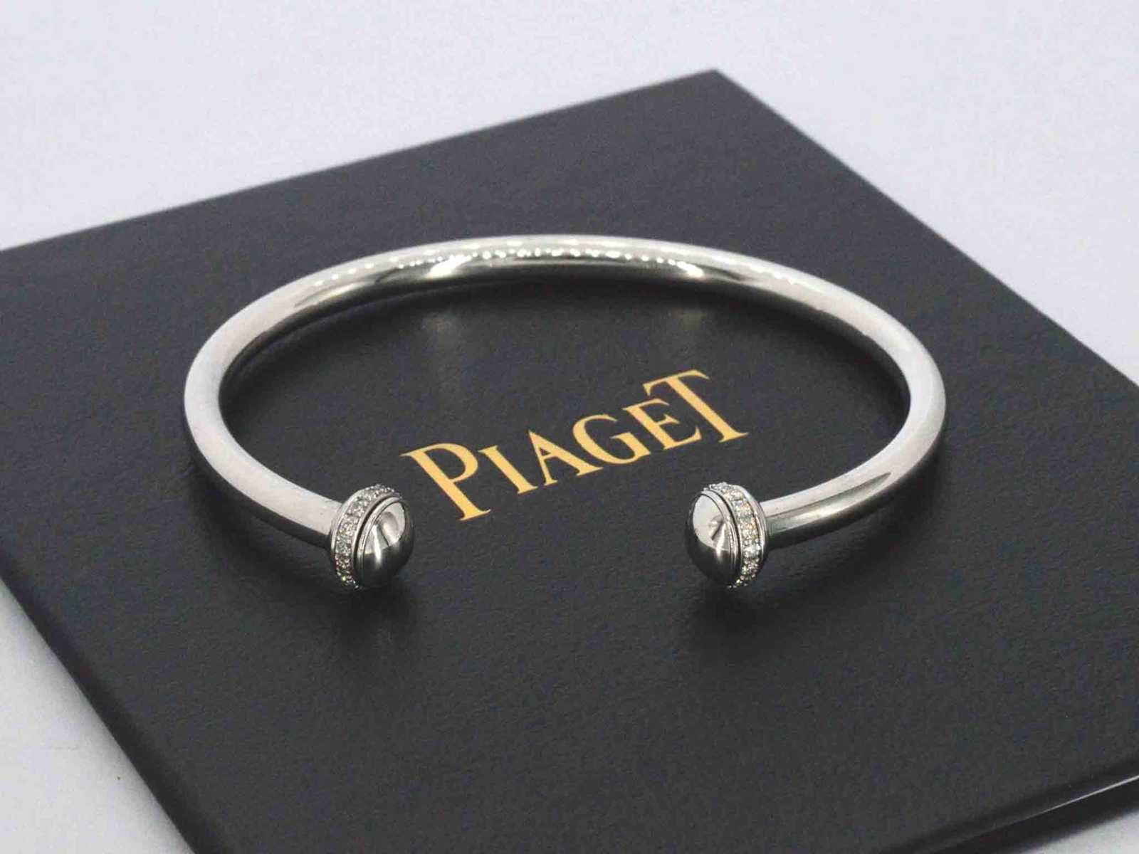 Samenvatting van gegevens Piaget - Possession model open bangle armband met hoge kwaliteit diamanten Diamant: Natuurlijk; Aantal: 30 stuks; Slijpvorm: Briljant geslepen; Gewicht (carat): 0.38 carat; Extra informatie: Originele Piaget diamanten van hoge kwaliteit; Juweel: Armband; Merk: Piaget; Model: Posession; Serienummer: H21XXX; Jaar: 2021; Gewicht: 13.6 gram; Afmetingen/lengte: Maat: 17; Materiaal: 18k goud (750); Conditie: Zo goed als nieuw; Verpakking: Origineel sieradendoos; Toelichting: De kwaliteit is overgenomen van het rapport behorend bij item. De waardebepaling is een beoordeling van een gecertificeerde diamantair, gebaseerd op consumentenprijzen.; Extra informatie: Komt met originele doos en papieren.; Consumentenprijs: € 8.250,- Within 14 days Materiaal: Goud Voornaamste diamant: Natuurlijk Gewicht diamant: 0.38ct Slijpvorm diamant: Briljant geslepen Totaal gewicht: 13.6g Keurmerk: 750 Lage schatting: 6600€ Hoge schatting: 8250€