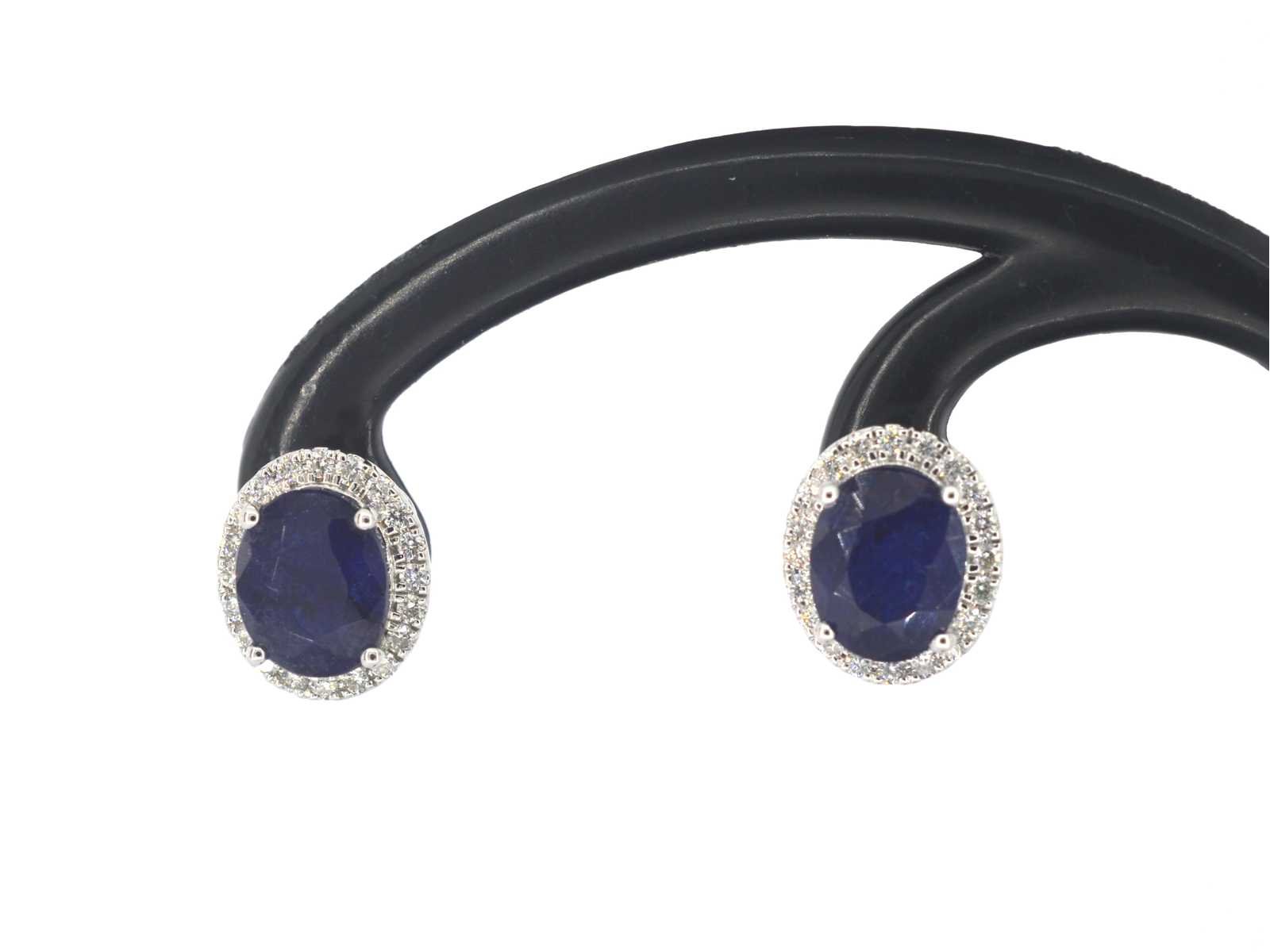 Samenvatting van gegevens Witgouden entourage oorbellen met diamanten en saffier Diamant: Natuurlijk; Slijpvorm: Briljant geslepen; Gewicht (carat): 0.40 carat; Kleur: F-G; Zuiverheid: VS; Slijpkwaliteit: Zeer mooi; Edelsteen: Saffier; Aantal: 2 stuks; Slijpvorm: Ovaal; Gewicht (carat): 6.00 carat; Kleur: Royal blue (enhanced); Zuiverheid: Met natuurlijke insluitsels (enhanced); Juweel: Oorbellen; Gewicht: 4 gram; Materiaal: 14 karaat (585); Conditie: Nieuw; Verpakking: Luxe sieradendoos; Toelichting: De kwaliteit is overgenomen van het rapport behorend bij item. De waardebepaling is een beoordeling van een gecertificeerde diamantair, gebaseerd op consumentenprijzen.; Consumentenprijs: € 3.760,- Within 14 days Voornaamste diamant: Natuurlijk Kleur diamant: F-G Gewicht diamant: 0.40ct Slijpvorm diamant: Briljant geslepen Slijpkwaliteit diamant: Zeer mooi Zuiverheidsgraad diamant: VS Edelsteen: Saffier Kleur edelsteen: Royal blue (enhanced) Slijpvorm edelsteen: Ovaal Zuiverheidsgraad edelsteen: Met natuurlijke insluitsels (enhanced) Totaal gewicht: 4g Keurmerk: 585 Lage schatting: 3008€ Hoge schatting: 3760€