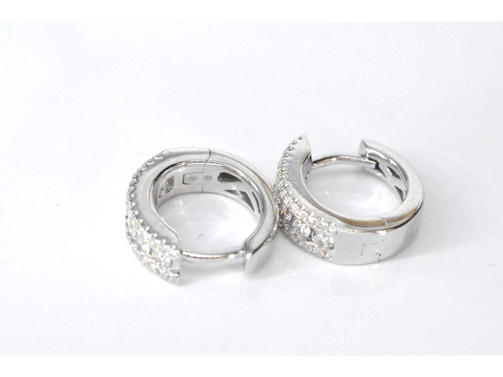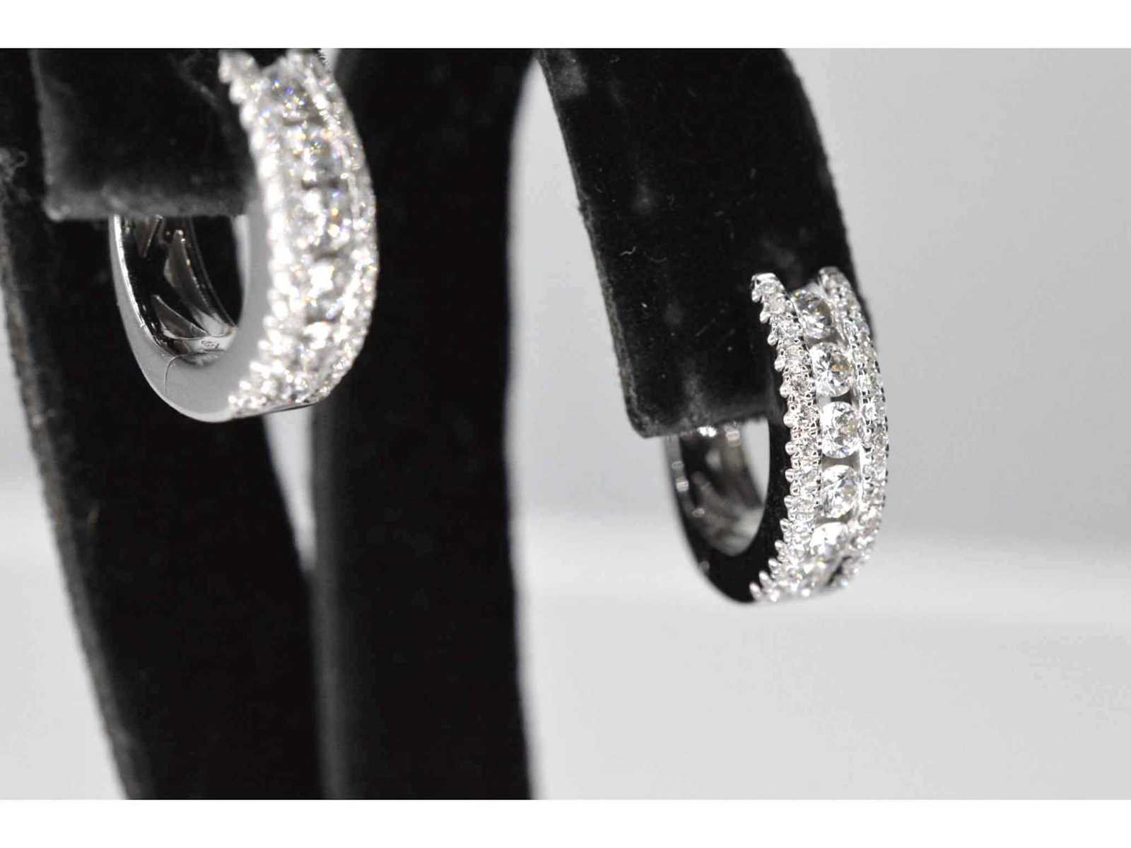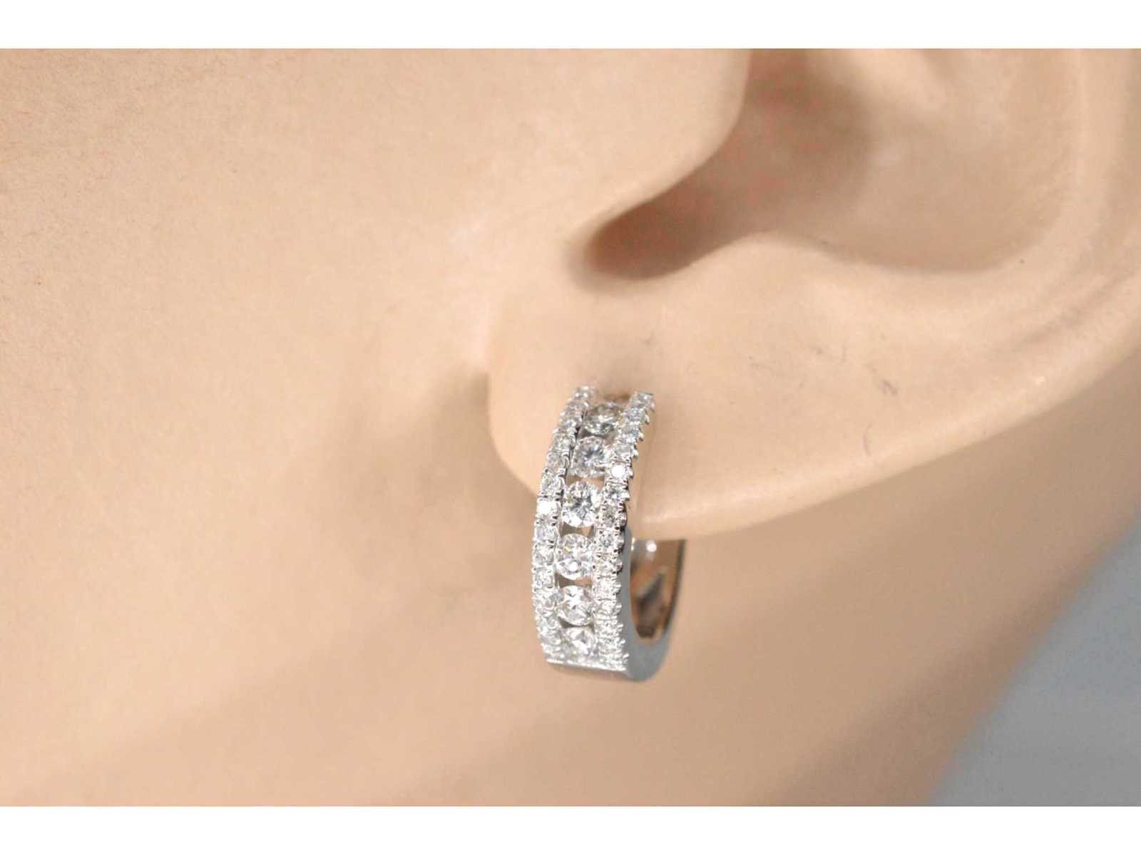 Samenvatting van gegevens Witgouden oorbellen met drie rijen diamanten Diamant: Natuurlijk; Slijpvorm: Briljant geslepen; Gewicht (carat): 0.65 carat; Kleur: F-G; Zuiverheid: VS; Slijpkwaliteit: Zeer mooi; Juweel: Oorbellen; Gewicht: 4.1 gram; Afmetingen/lengte: 10 x 10 mm (verstelbaar); Materiaal: 18K goud (750); Conditie: Nieuw; Verpakking: Luxe sieradendoos; Toelichting: De kwaliteit is overgenomen van het rapport behorend bij item. De waardebepaling is een beoordeling van een gecertificeerde diamantair, gebaseerd op consumentenprijzen.; Consumentenprijs: € 6.930,- Within 14 days Materiaal: Goud Voornaamste diamant: Natuurlijk Kleur diamant: F-G Gewicht diamant: 0.65ct Slijpvorm diamant: Briljant geslepen Slijpkwaliteit diamant: Zeer mooi Zuiverheidsgraad diamant: VS Totaal gewicht: 4.1g Keurmerk: 750 Lage schatting: 5544€ Hoge schatting: 6930€