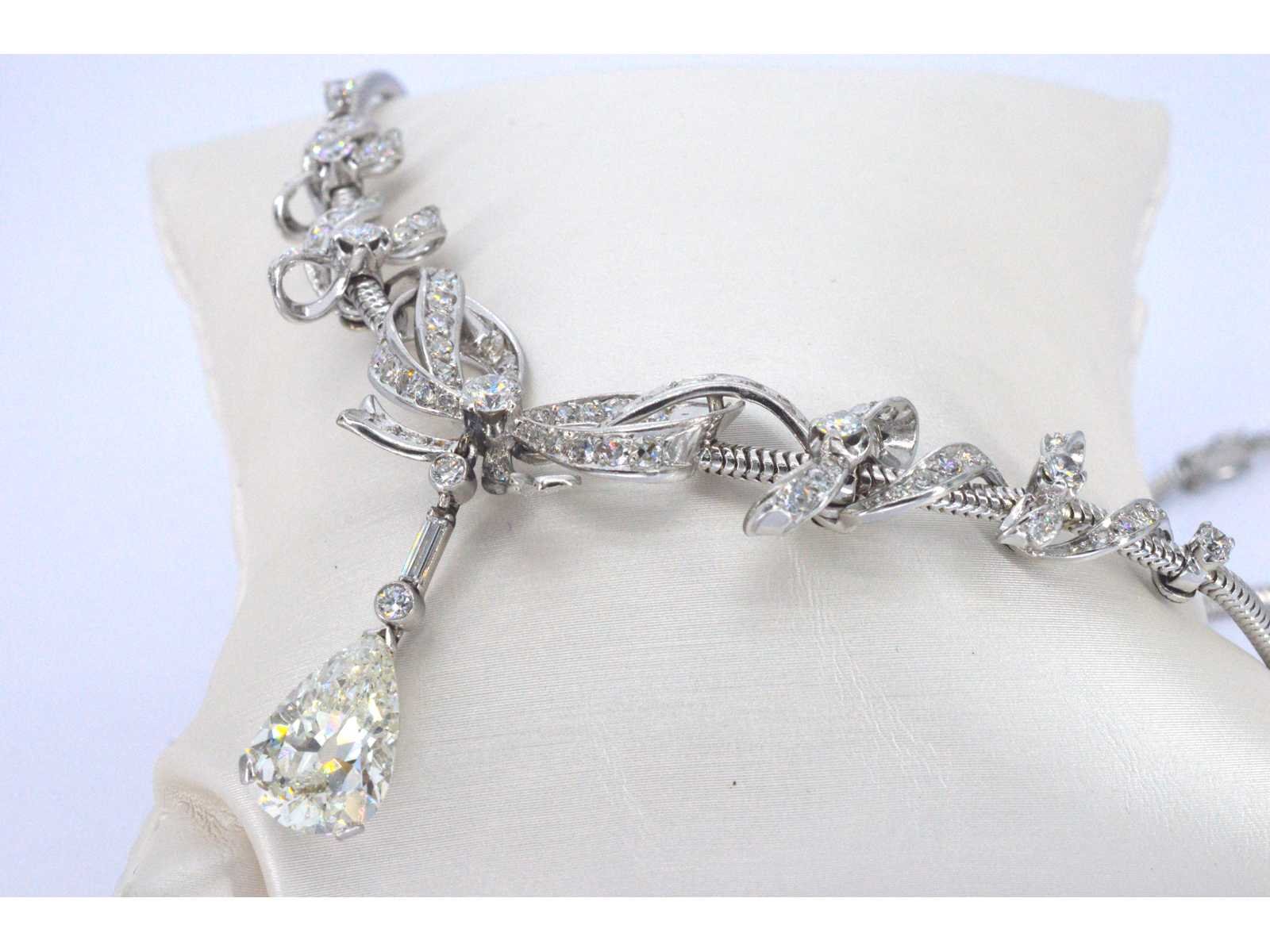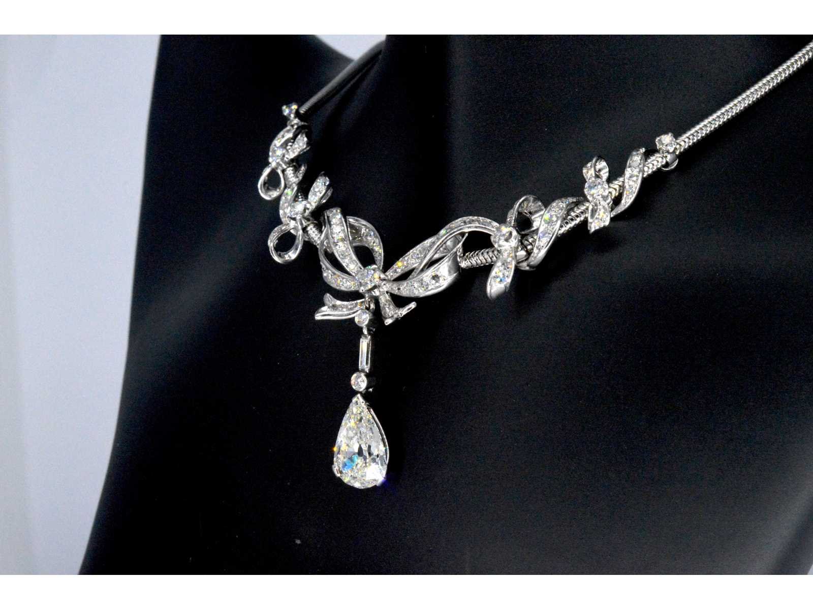 Samenvatting van gegevens Belangrijk collier met een grote peer vorm diamant van 3.50 carat en natuurlijke diamanten Diamant: Natuurlijk; Aantal: 1 stuk; Slijpvorm: Peer vorm geslepen; Gewicht (carat): 3.50 carat; Kleur: Warm getint; Zuiverheid: VS-SI; Slijpkwaliteit: Zeer mooi geslepen uit de tijd; Diamant (secundair): Natuurlijk; Aantal diamanten: 80 stuks; Slijpvorm: Swiss geslepen; Gewicht (carat): 1.20 carat; Kleur: F-G; Zuiverheid: VS; Diamant (secundair): Natuurlijk; Aantal diamanten: 9 stuks; Slijpvorm: Briljant geslepen; Gewicht (carat): 0.75 carat; Kleur: F-G; Zuiverheid: VS; Slijpkwaliteit: Zeer mooi; Diamant (secundair): Natuurlijk; Aantal: 1 stuk; Slijpvorm: Baguette geslepen; Gewicht (carat): 0.10 carat; Kleur: F-G; Zuiverheid: VS; Slijpkwaliteit: Zeer mooi; Juweel: Halsketting; Gewicht: 25.1 gram; Afmetingen/lengte: 41 cm; Materiaal: 14K goud (585); Conditie: Zo goed als nieuw; Verpakking: Luxe sieradendoos; Toelichting: De kwaliteit is overgenomen van het rapport behorend bij item. De waardebepaling is een beoordeling van een gecertificeerde diamantair, gebaseerd op consumentenprijzen.; Consumentenprijs: € 108.500,- Within 14 days Materiaal: Goud Voornaamste diamant: Natuurlijk Kleur diamant: Warm getint Gewicht diamant: 3.50ct Slijpvorm diamant: Peer vorm geslepen Slijpkwaliteit diamant: Zeer mooi geslepen uit de tijd Zuiverheidsgraad diamant: VS-SI Totaal gewicht: 25.1g Keurmerk: 585 Lage schatting: 86800€ Hoge schatting: 108500€