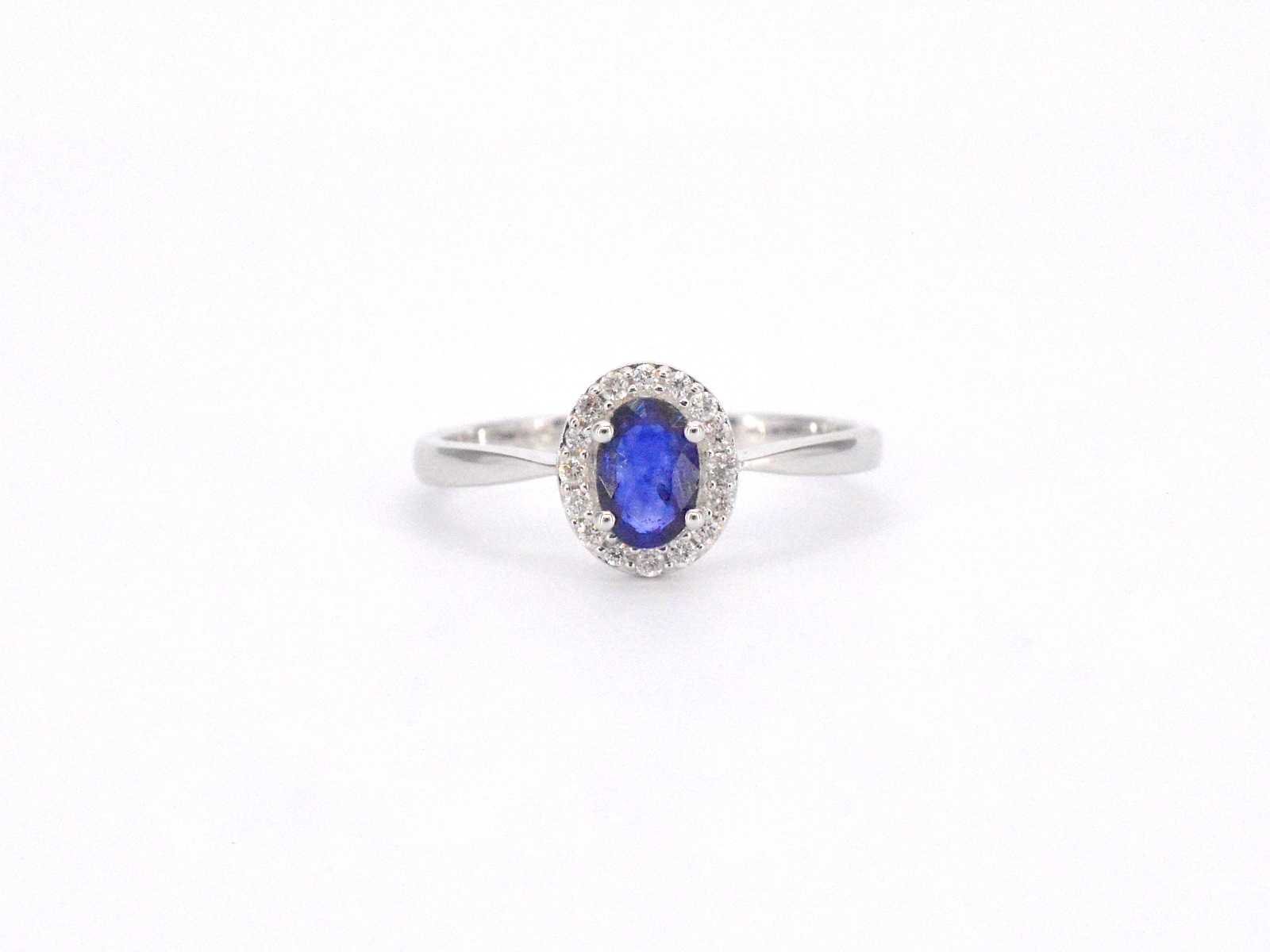 Samenvatting van gegevens Witgouden entourage ring met diamanten en saffier Diamant: Natuurlijk; Slijpvorm: Rond geslepen; Gewicht (carat): 0.12 carat; Kleur: F-G; Zuiverheid: SI; Slijpkwaliteit: Zeer mooi; Edelsteen: Saffier; Slijpvorm: Ovaal; Gewicht (carat): 0.65 carat; Juweel: Ring; Gewicht: 2.2 gram; Ringmaat (op maat gemaakt*): 54 (17.25 mm); Materiaal: 14k goud (585); Conditie: Nieuw; Verpakking: Luxe sieradendoos; Toelichting: De kwaliteit is overgenomen van het rapport behorend bij item. De waardebepaling is een beoordeling van een gecertificeerde diamantair, gebaseerd op consumentenprijzen.; Consumentenprijs: € 1.785,- Within 14 days Materiaal: Goud Voornaamste diamant: Natuurlijk Gewicht diamant: 0.12ct Edelsteen: Saffier Totaal gewicht: 2.2g Keurmerk: 585 Lage schatting: 1428€ Hoge schatting: 1785€ Kleur diamant: F-G Slijpvorm diamant: Rond geslepen Slijpkwaliteit diamant: Zeer mooi Zuiverheidsgraad diamant: SI Slijpvorm edelsteen: Ovaal