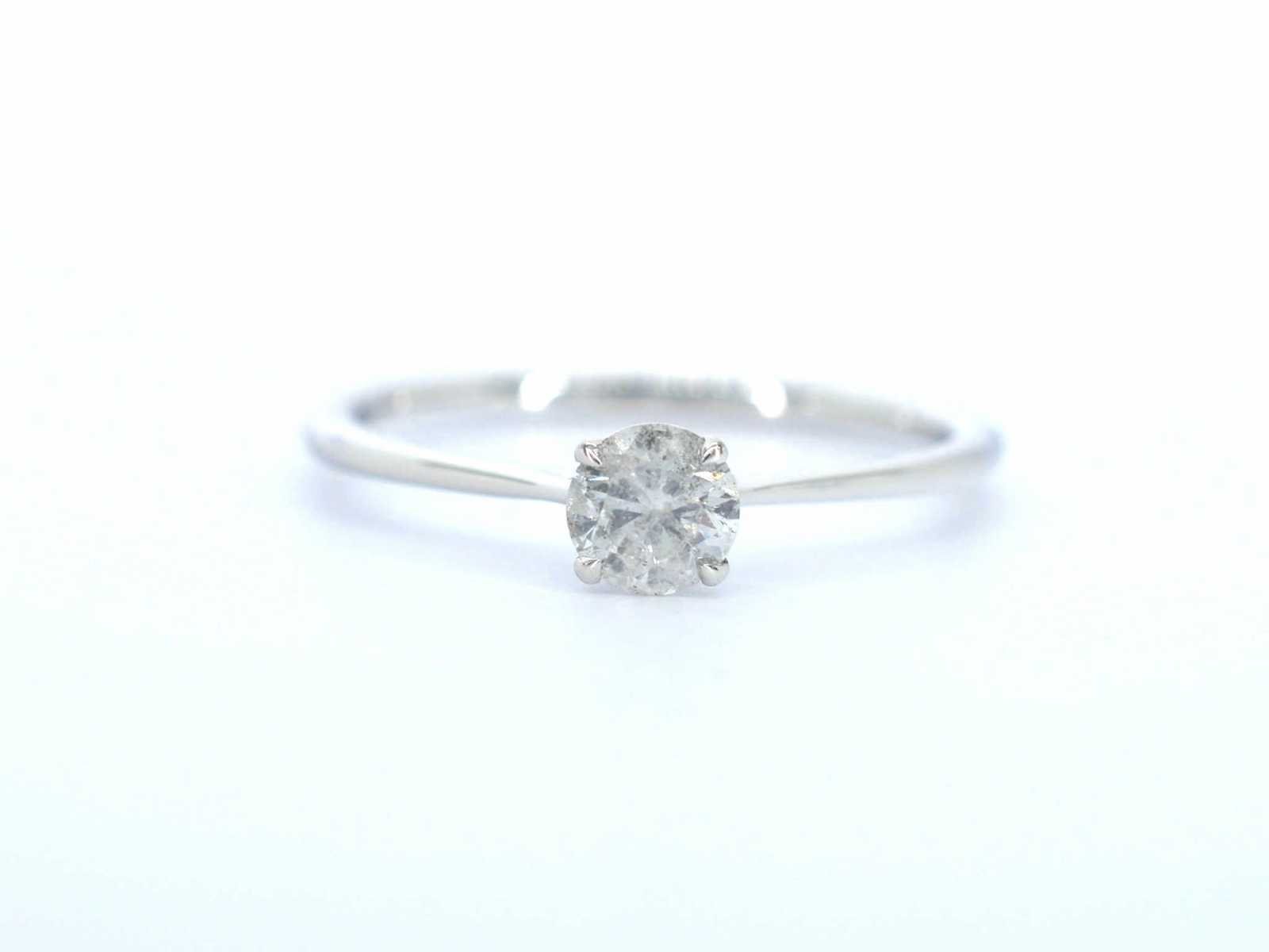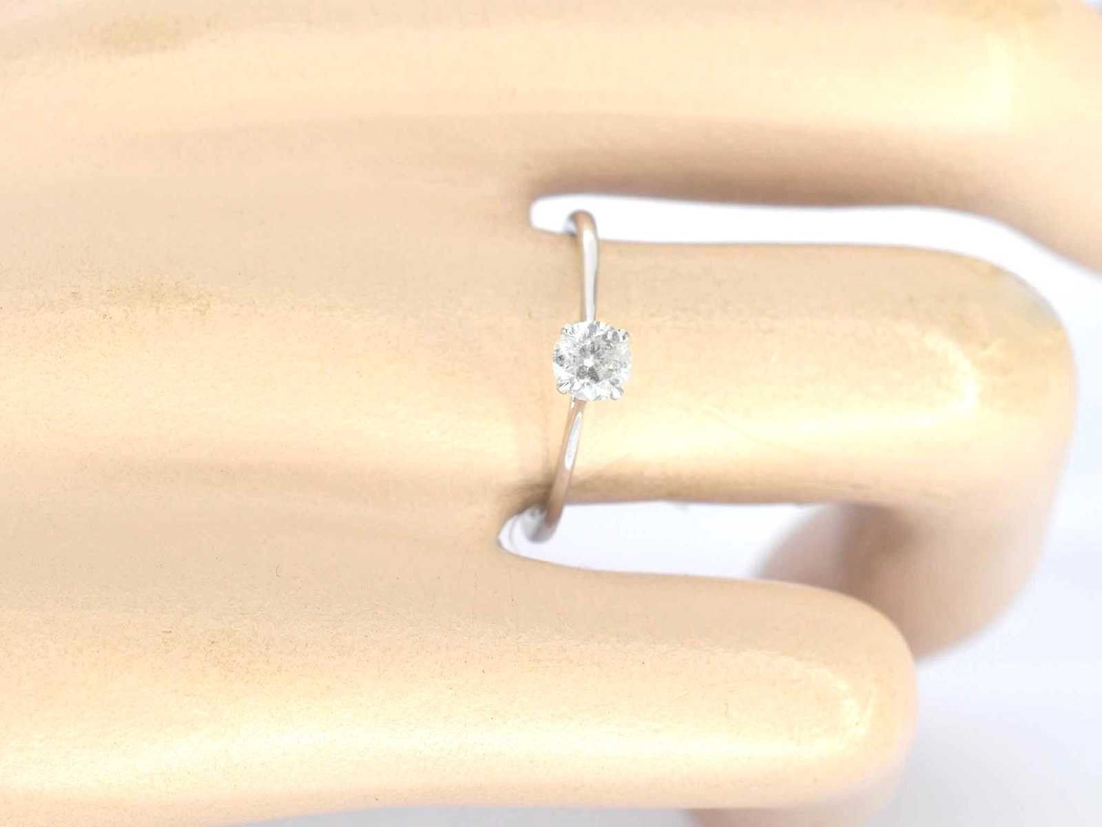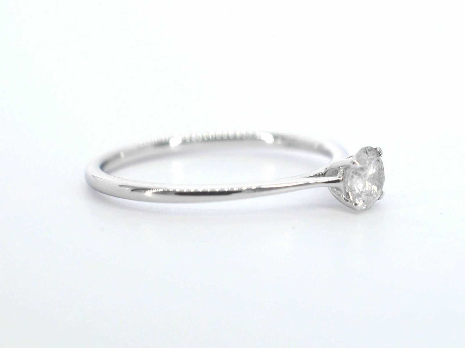 Samenvatting van gegevens Witgouden ring solitair met natuurlijke briljant geslepen diamanten Diamant: Natuurlijk; Aantal: 1 stuk; Slijpvorm: Briljant geslepen; Gewicht (carat): 0.40 carat; Kleur: Wit; Zuiverheid: Met natuurlijke insluitsels; Slijpkwaliteit: Zeer mooi; Juweel: Ring; Gewicht: 1 gram; Ringmaat (op maat gemaakt*): 54 (17.25 mm); Materiaal: 14k goud (585); Conditie: Nieuw; Verpakking: Luxe sieradendoos; Toelichting: De kwaliteit is overgenomen van het rapport behorend bij item. De waardebepaling is een beoordeling van een gecertificeerde diamantair, gebaseerd op consumentenprijzen.; Consumentenprijs: € 1.500,- Within 14 days Materiaal: Goud Voornaamste diamant: Natuurlijk Gewicht diamant: 0.40ct Totaal gewicht: 1g Keurmerk: 585 Lage schatting: 1200€ Hoge schatting: 1500€ Kleur diamant: Wit Slijpvorm diamant: Briljant geslepen Slijpkwaliteit diamant: Zeer mooi Zuiverheidsgraad diamant: Met natuurlijke insluitsels