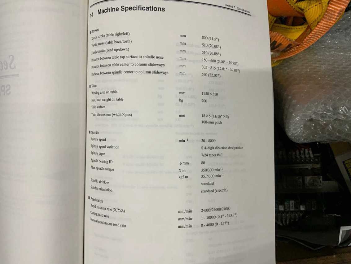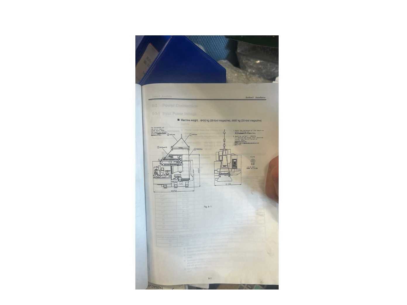 Let op!! uitlevering 15 December Merk: Masuura Type: MC-800 VG Bouwjaar: 1998 Serienummer: 980713212 Opname iso: JOS B 6339 tool scank 40T Verplaatsing x-as: 800mm Verplaatsing y-as: 510mm Verplaatsing z-as: 510mm Snelheid van n =: 30rpm Snelheid tot n =: 8000rpm Werkstuk gewicht max.: 700kg T-gleuf opspantafelafmeting B: 510mm T-gleuf opspantafelafmeting L: 1150mm Aansluiting: 400V Totale afmeting Hoogte: 2970mm Totale afmeting Breedte: 4245mm Totale afmeting L: 4410mm Machinegewicht: 6400kg