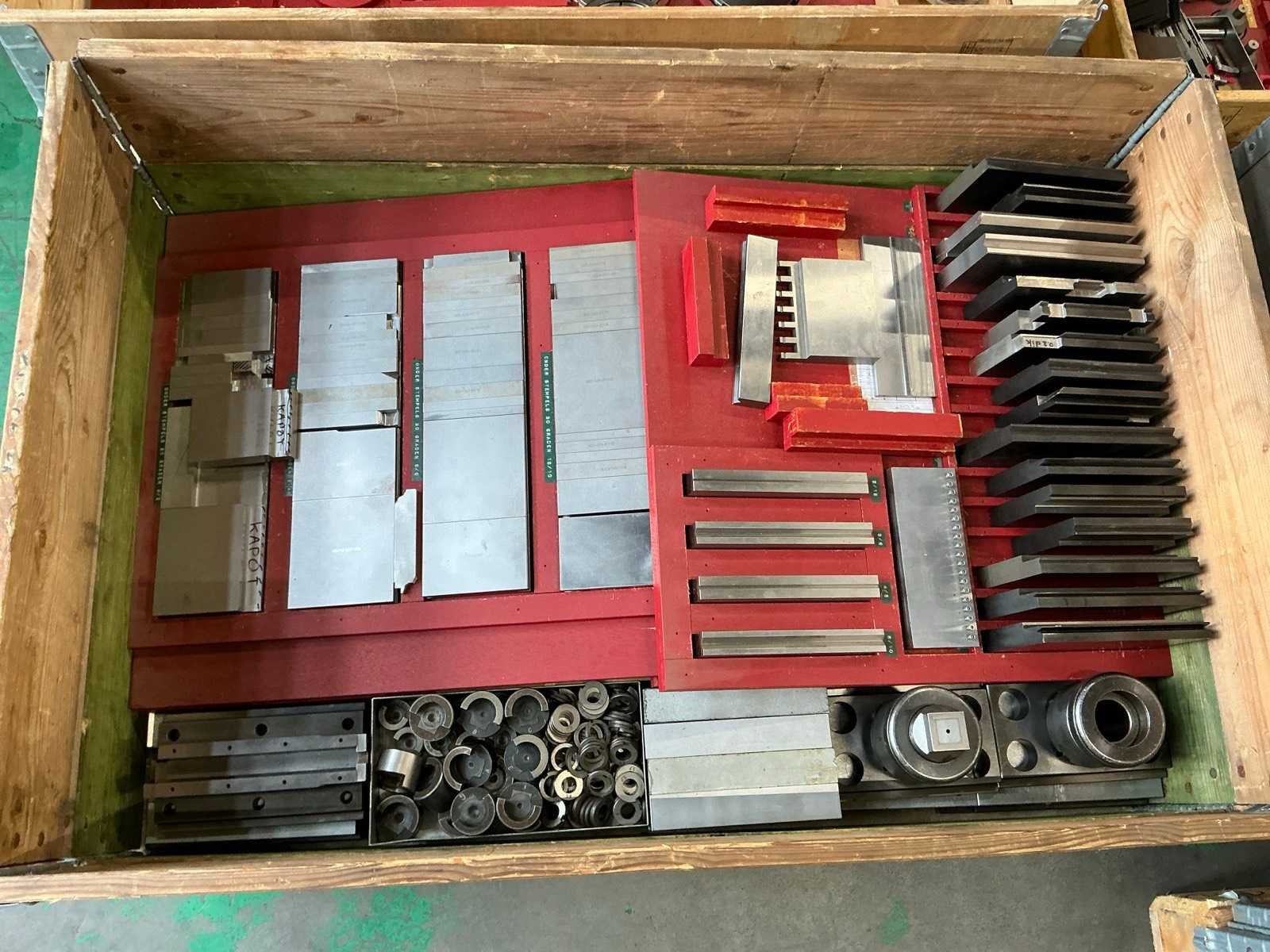Inclusief 5 palletboxen voorzien van diverse ponsen; Merk: Baltec Type: PWS 610 Bouwjaar: 1986 Serienummer: 66/86 Capaciteit.: 25t Voetbediening: true Afgelezen urenstand: 47389 Motorvermogen (kW): 13.5kW Aansluiting: 380V Afmeting l: 1820mm Afmeting b: 1610mm Afmeting h: 2370mm