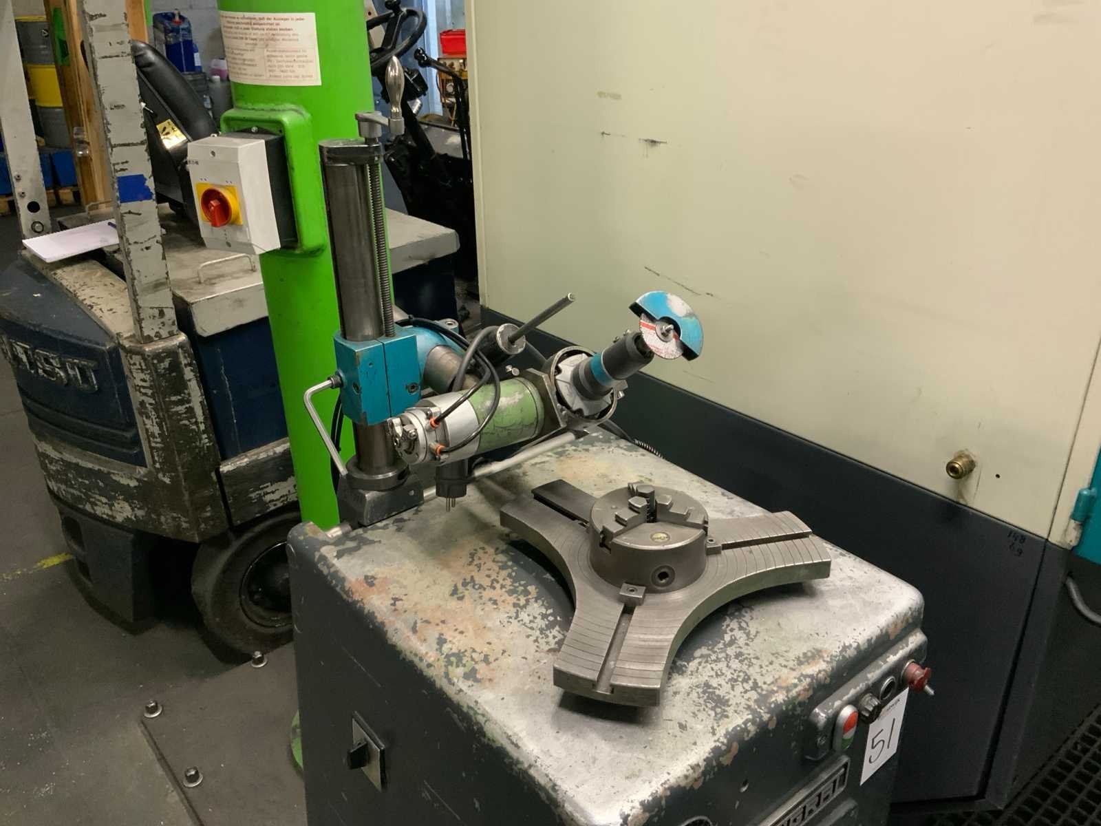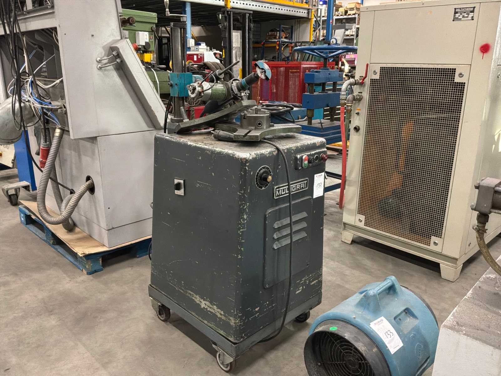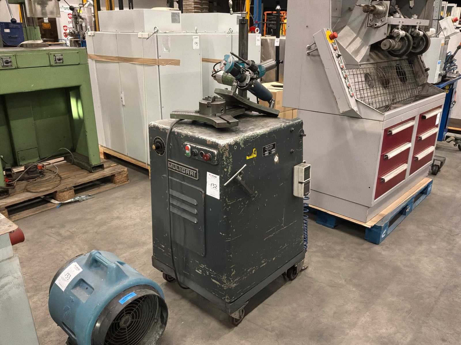 Bouwjaar: 1965, Serienummer: 702, Voltage: 230 Volt; voorzien van: meedraaiende tafel, snelheid regelbaar van: 0-220 / rpm, inclusief Bosch GGS28LC2 slijpmachine, pneumatisch gestuurd. Merk: Multigrat Type: MA500 Bouwjaar: 1965 Serienummer: 702 Tafel afmeting l: 500mm Tafel afmeting b: 500mm
