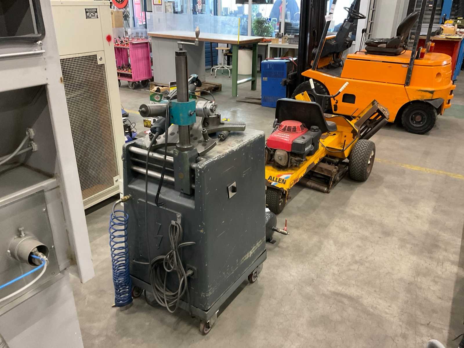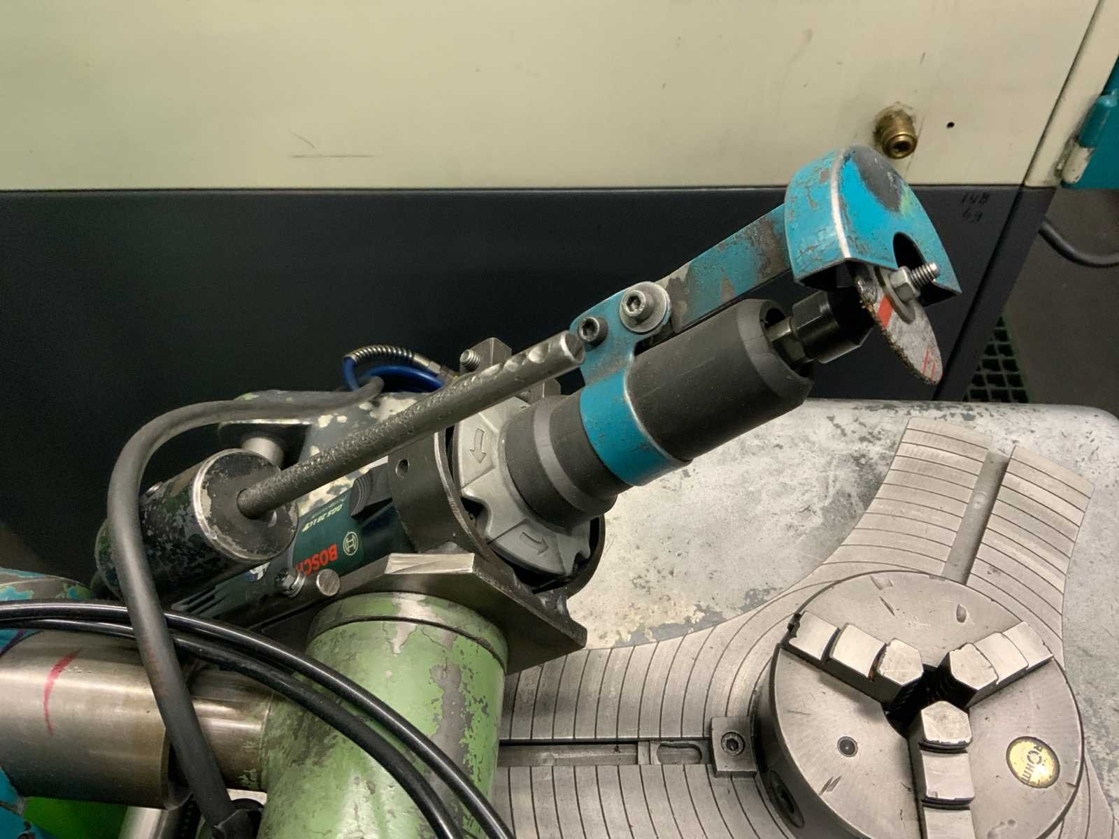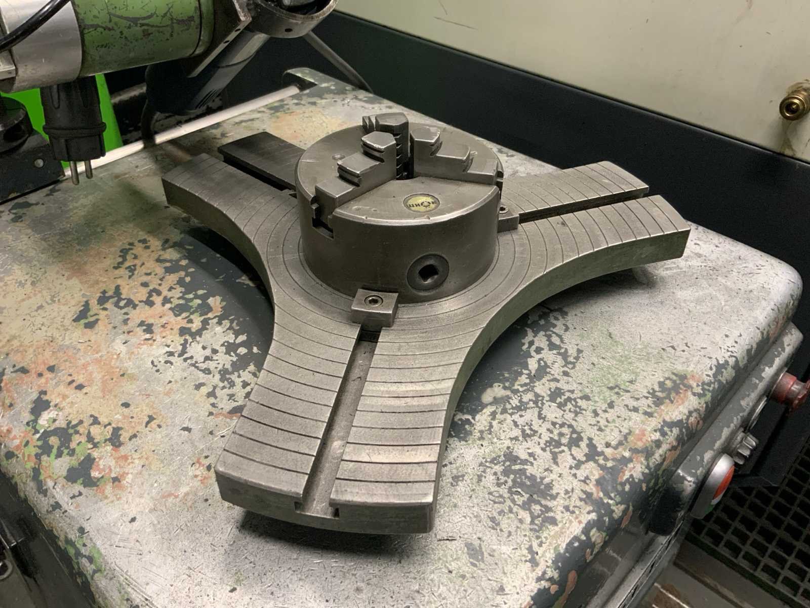 Bouwjaar: 1965, Serienummer: 702, Voltage: 230 Volt; voorzien van: meedraaiende tafel, snelheid regelbaar van: 0-220 / rpm, inclusief Bosch GGS28LC2 slijpmachine, pneumatisch gestuurd. Merk: Multigrat Type: MA500 Bouwjaar: 1965 Serienummer: 702 Tafel afmeting l: 500mm Tafel afmeting b: 500mm