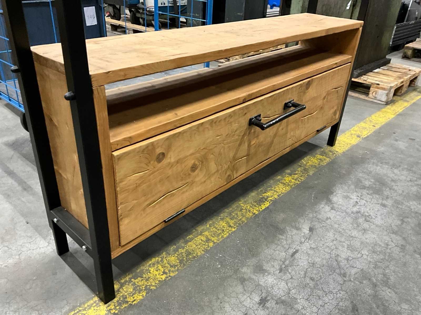 Stalen frame met houten planken en klep Lengte: 30cm Breedte: 150 Hoogte: 240cm