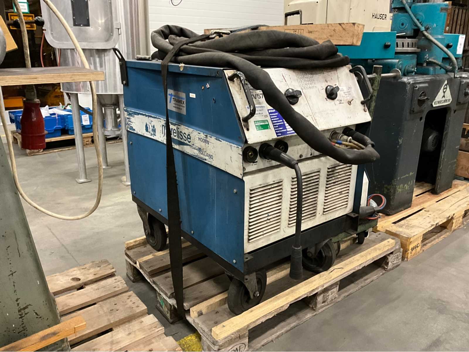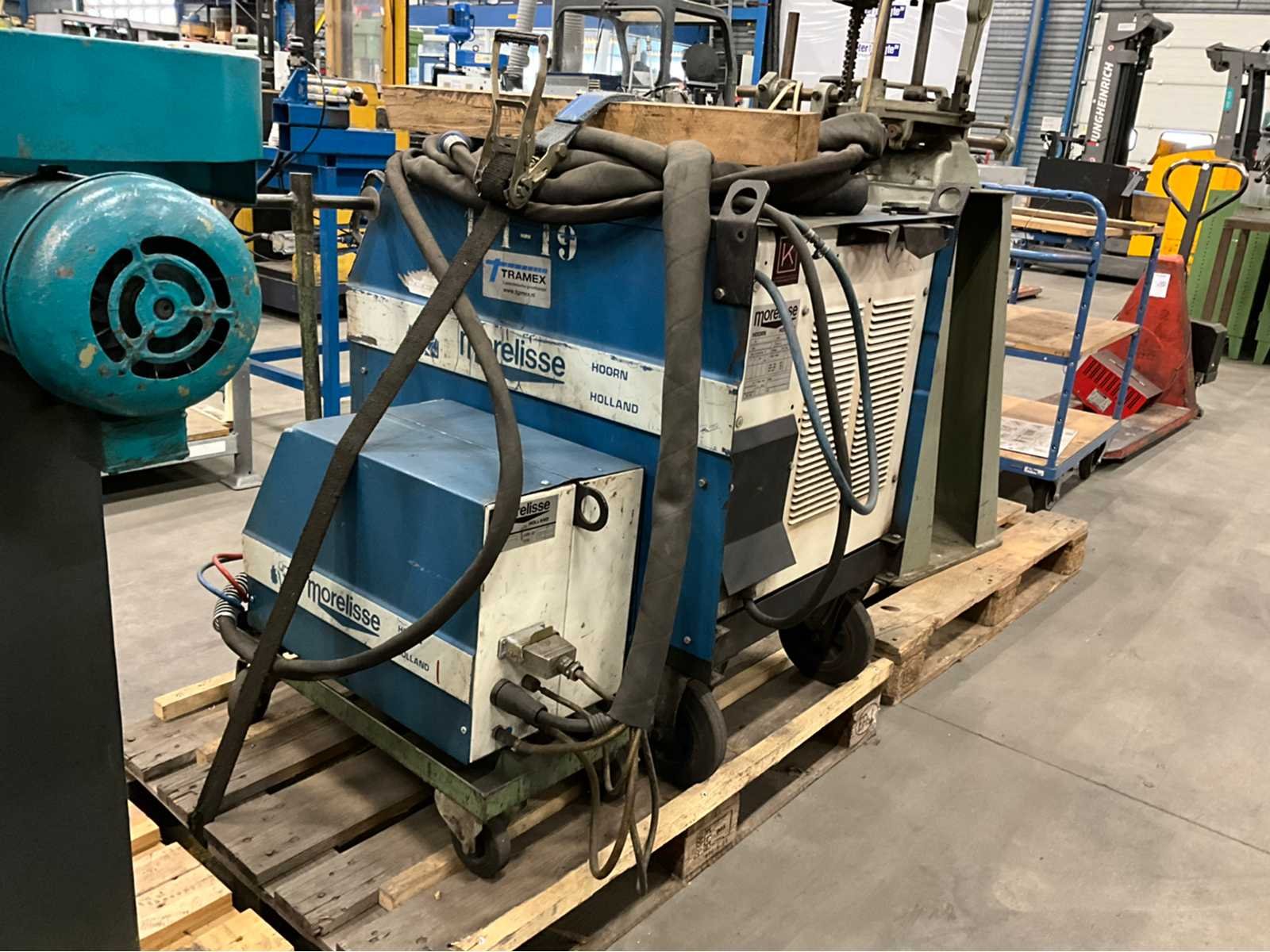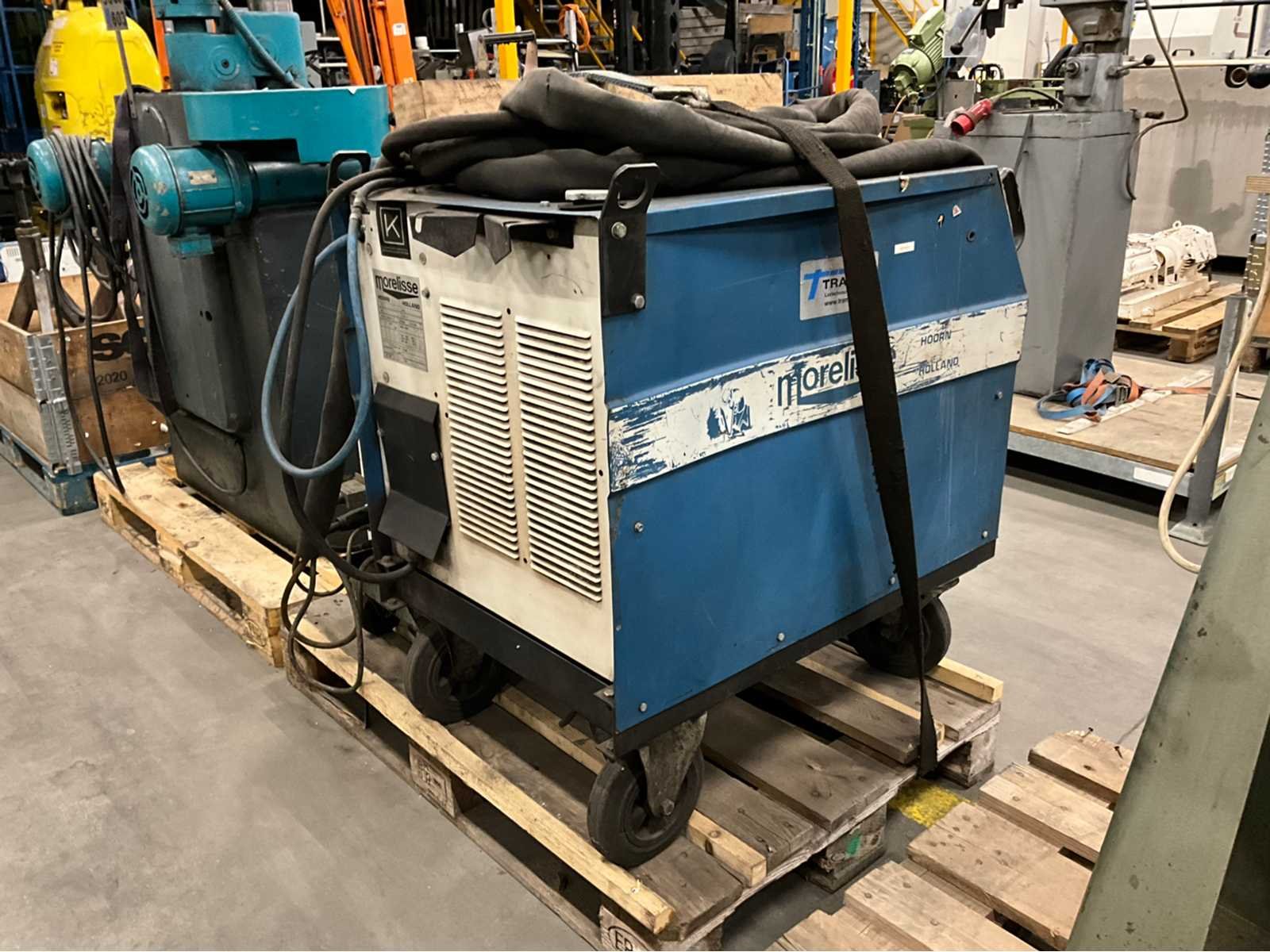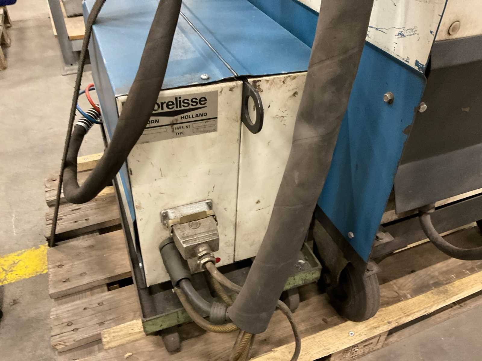 Watergekoeld; inclusief draad doorvoeraparaat; voorzien van hijsogen; verrijdbaar; Merk: Morelisse Type: CV 570 / DA 4 Serienummer: 3219101 Mig type: true Ampère belasting: 520A Draadaanvoerunit: true Aansluiting: 400V Handboek aanwezig: true Afmeting l: 1200mm Afmeting b: 800mm Afmeting h: 1250mm