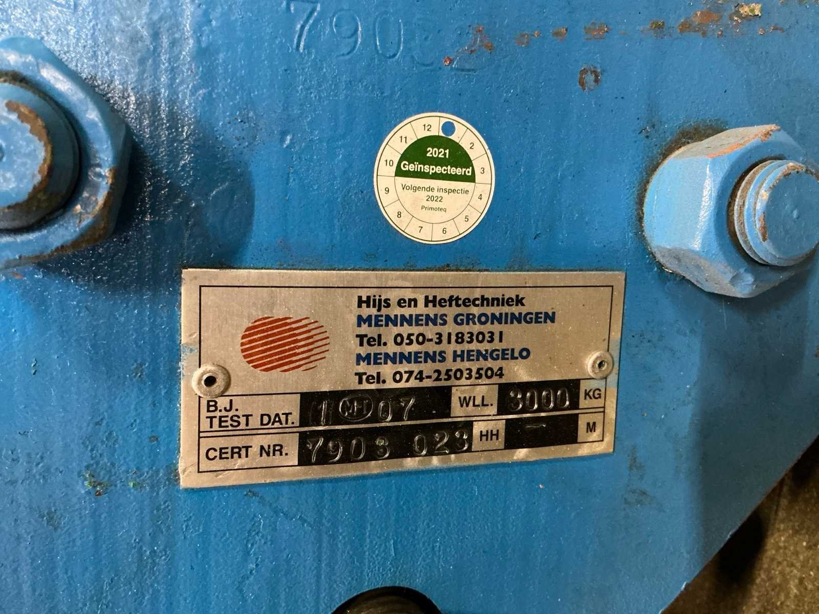 Merk: Mennens Type: Swl Bouwjaar: 2007 Hijsvermogen: 3000kg Afmeting l: 520mm Afmeting b: 340mm Afmeting h: 280mm