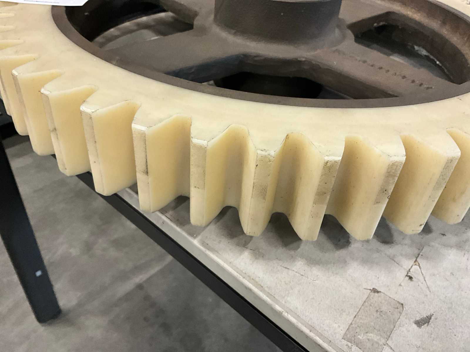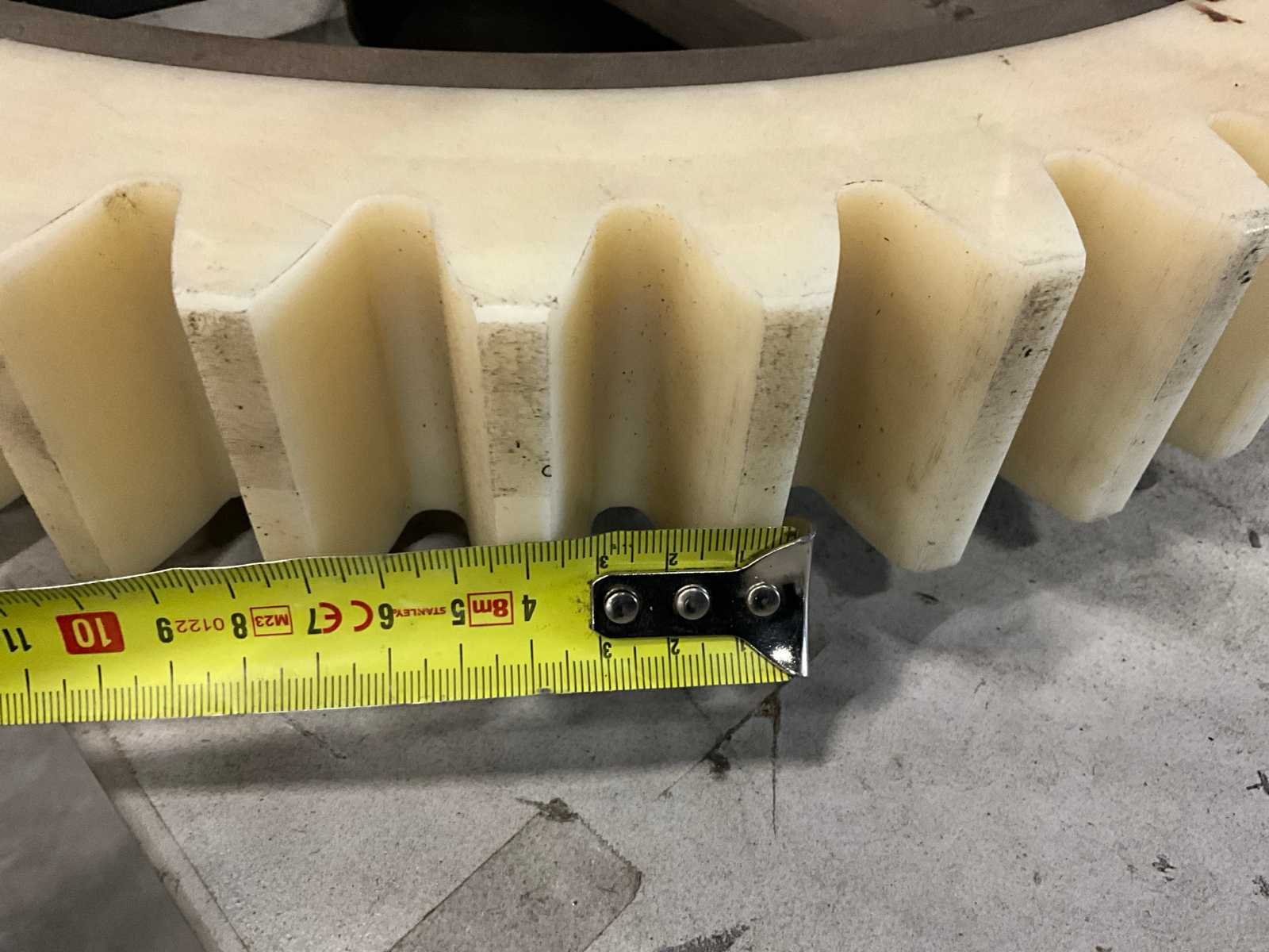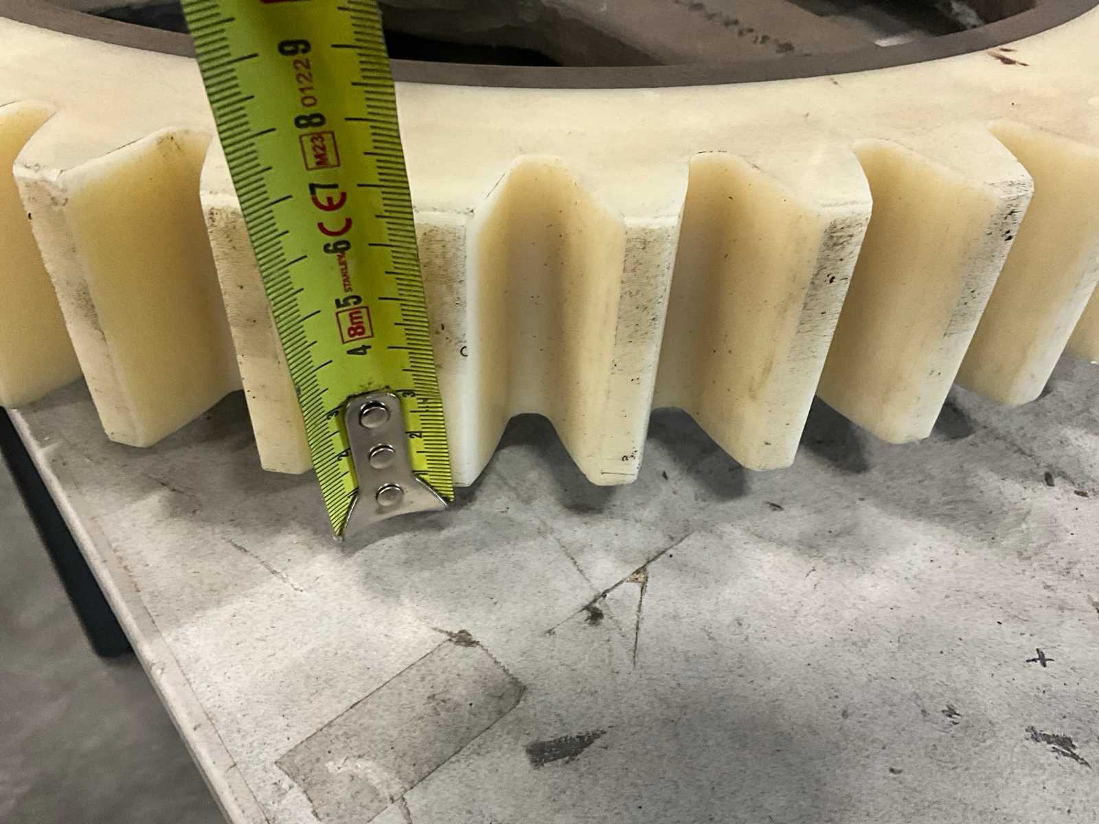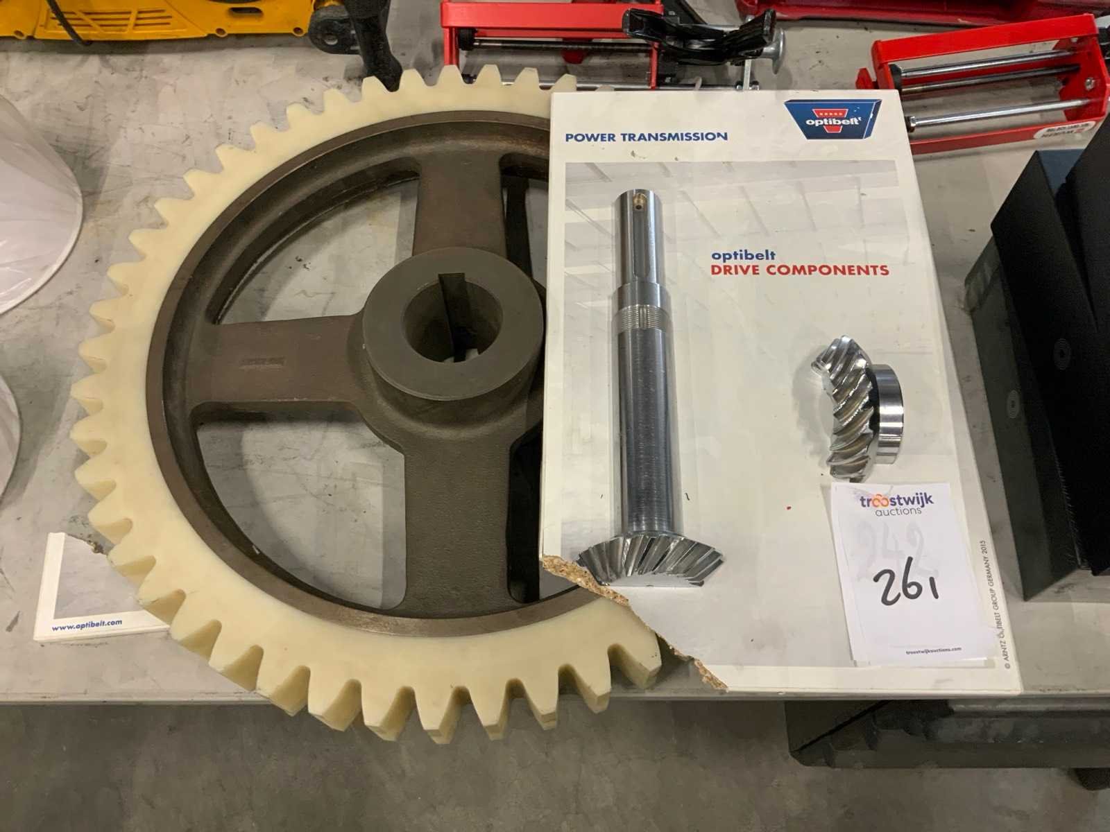 Kunststof tandwiel op stalen wiel en 1 optibelt drive component Merk: SHW Type: WI Totale afmeting L: 500mm Totale afmeting Breedte: 500mm Totale afmeting Hoogte: 110mm