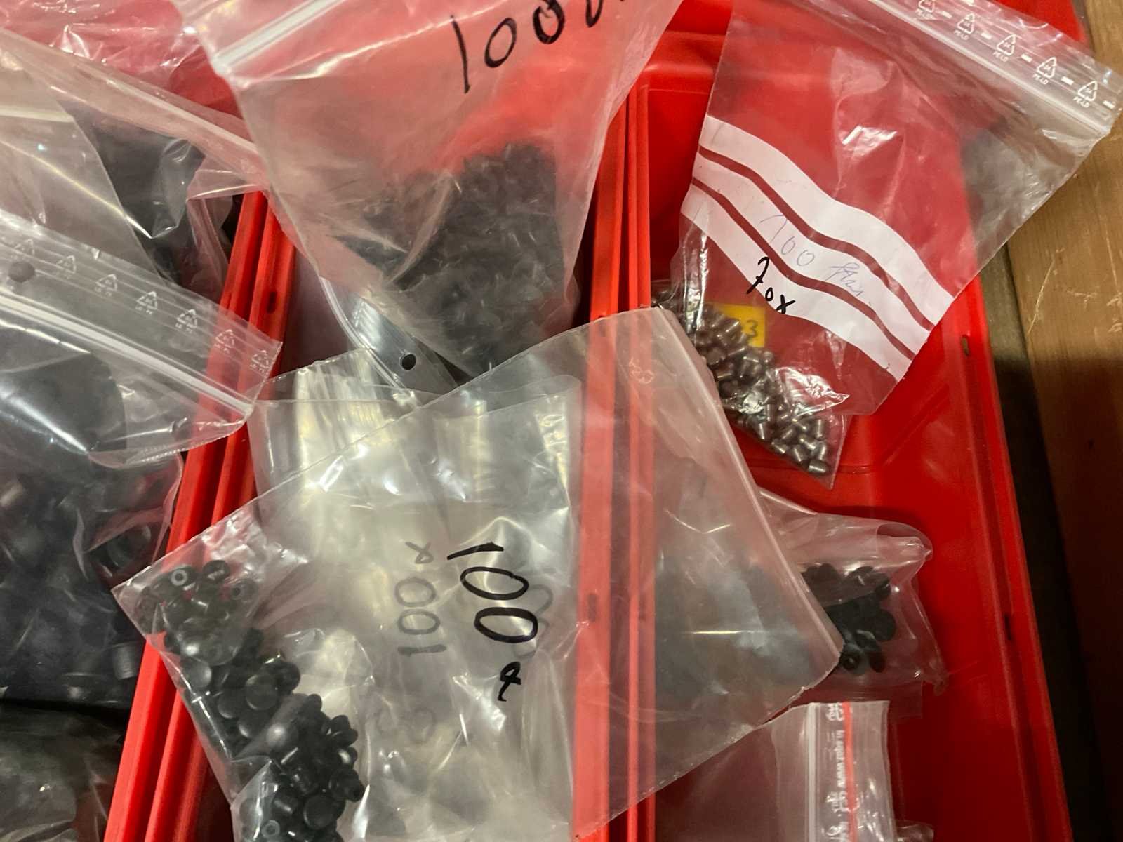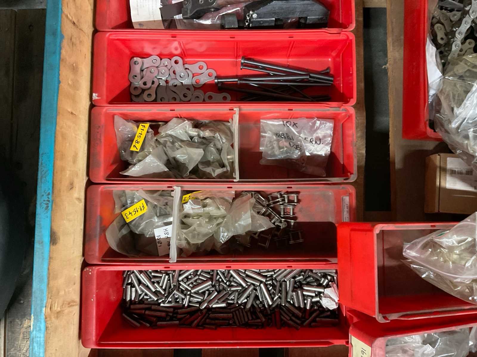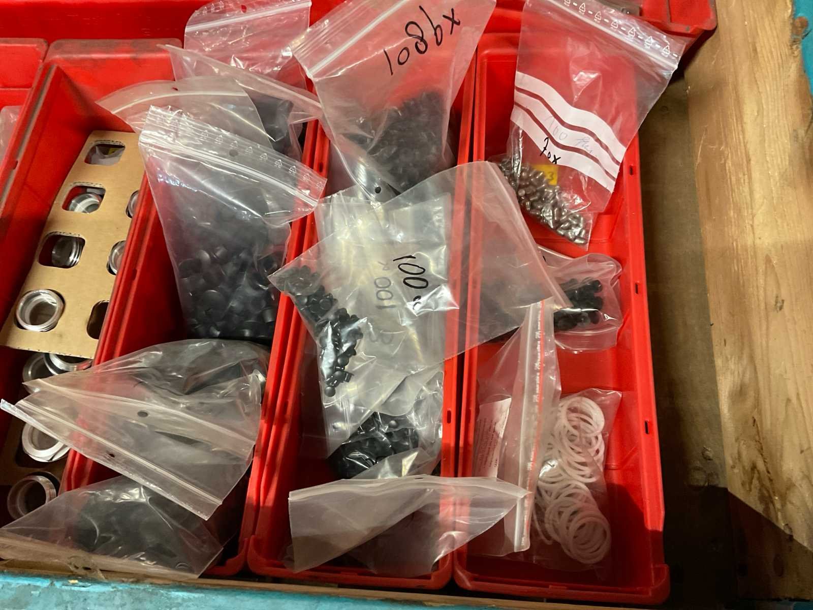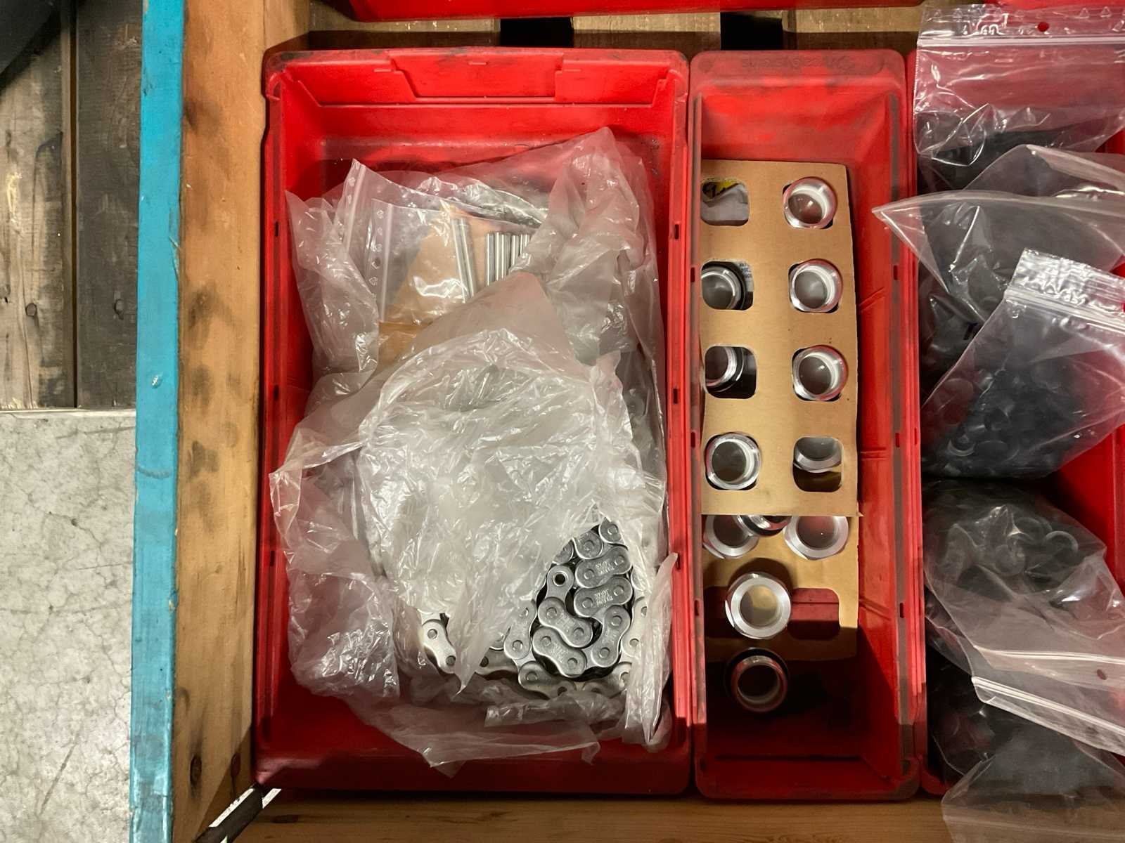 Waaronder diverse slijpschijven, slijpstenen, kettingen, schuurband, kunststof afdopmaterialen en kunststof ton ø circa 50 cm hoogte circa 70 cm; zonder palletbox;