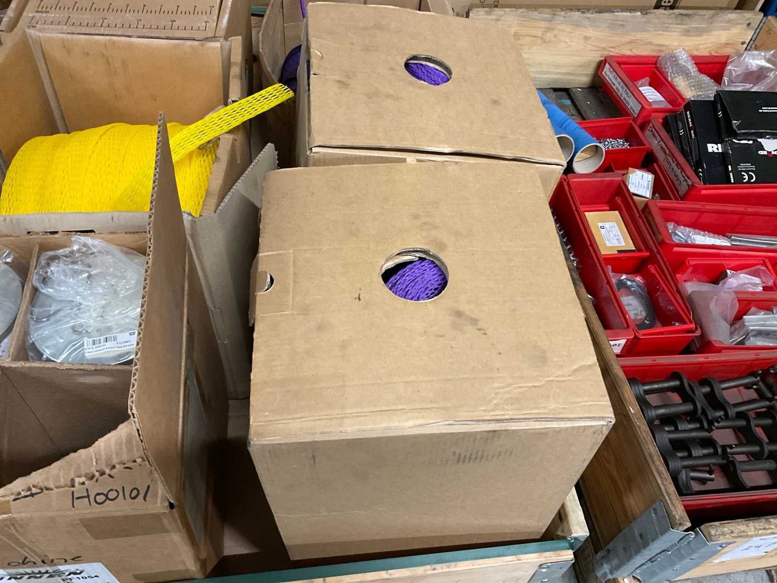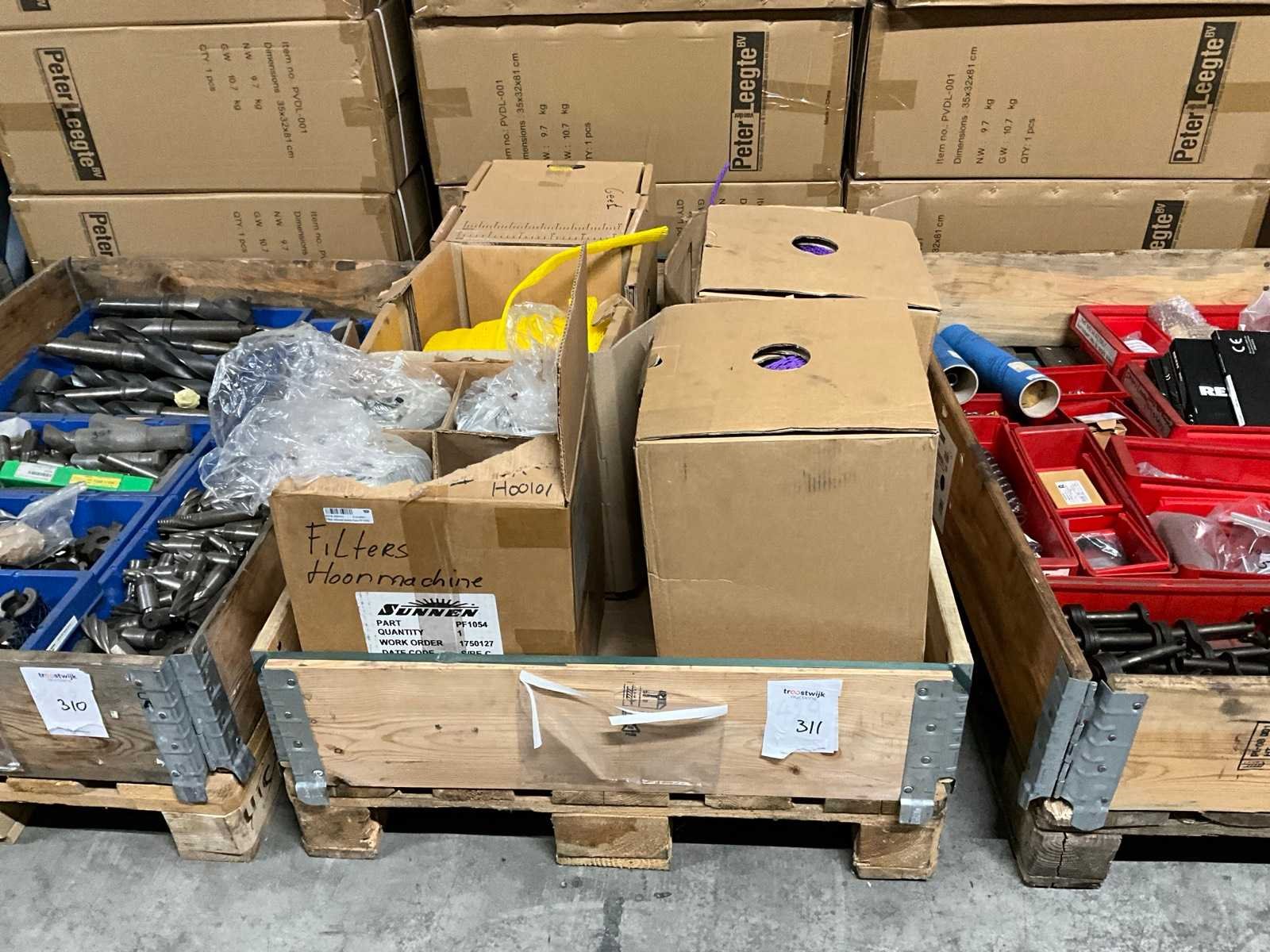 Bestaande uit 3 dozen 10 mm lpde paars en 60 mm geel, alsmede 3 filters ten behoeve van hoonmachine; zonder palletbox; Merk: Iver