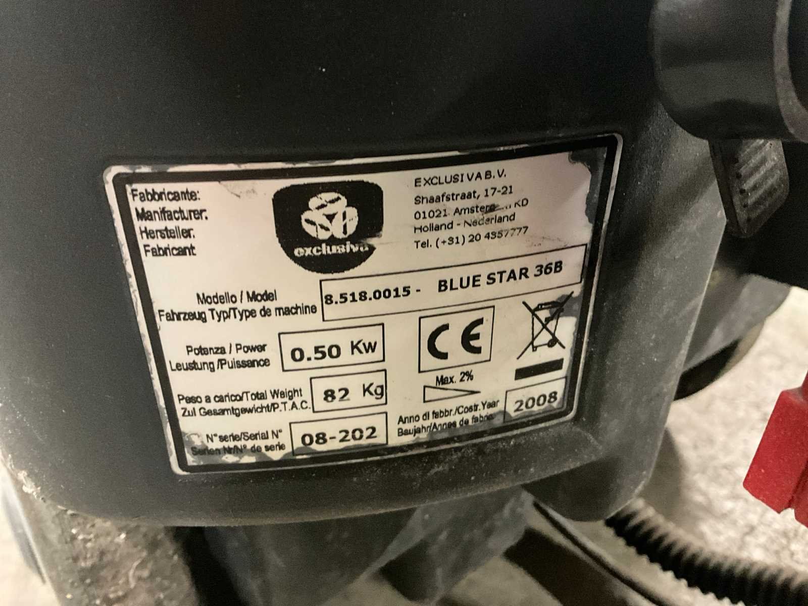 Merk: Exclusiva Type: Blue Star 36B Bouwjaar: 2008 Elektrisch: true Oplaadbaar: true Eigen gewicht: 82kg Totale afmeting L: 1050mm Totale afmeting Breedte: 450mm Totale afmeting Hoogte: 950mm