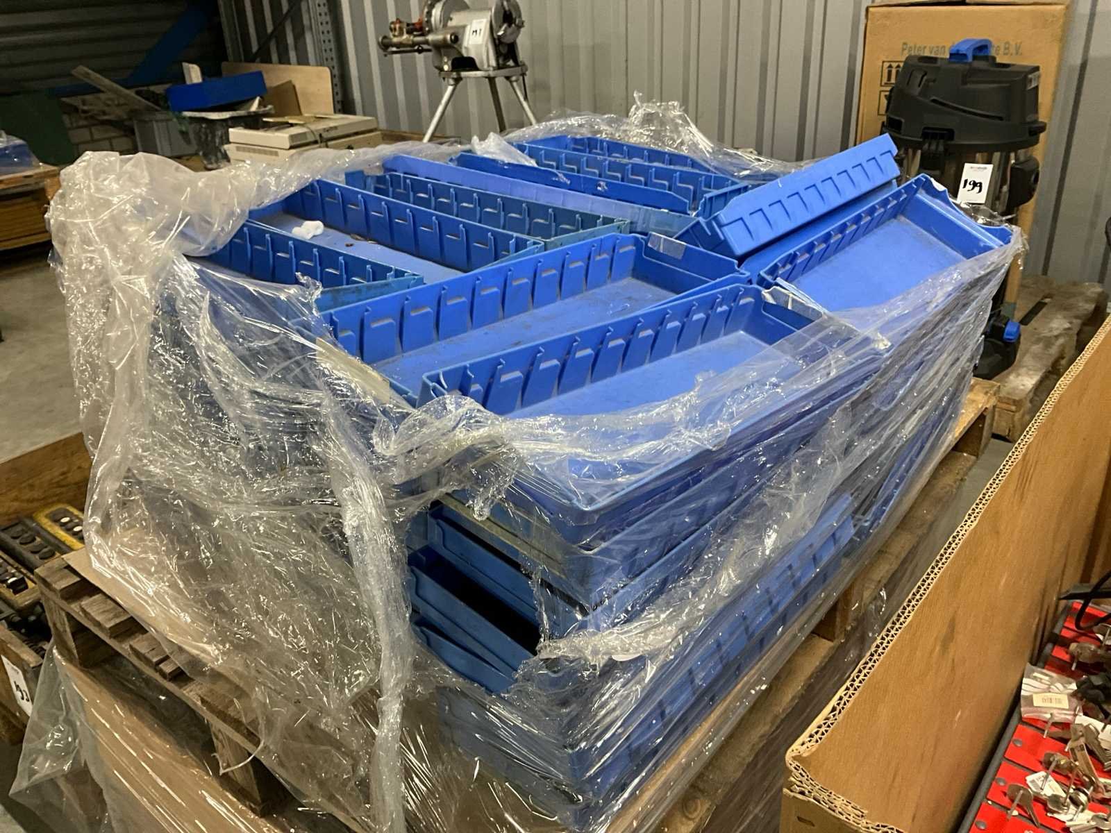 Kleur blauw; waaronder afmeting 490x150x60 mm; inclusief pallet en palletbox;