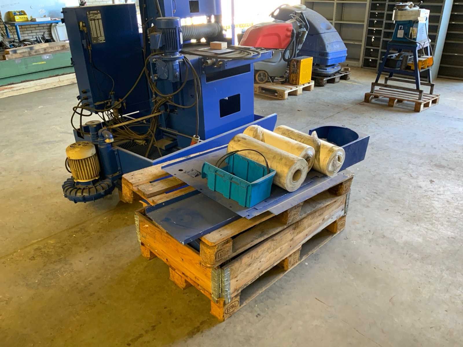 Werkbreedte: 500mm, voorzien van filterbed, inclusief pallet met toebehoren Merk: Timesavers Aansluiting: 400V Afmeting l: 1250mm Afmeting b: 1830mm Afmeting h: 2300mm