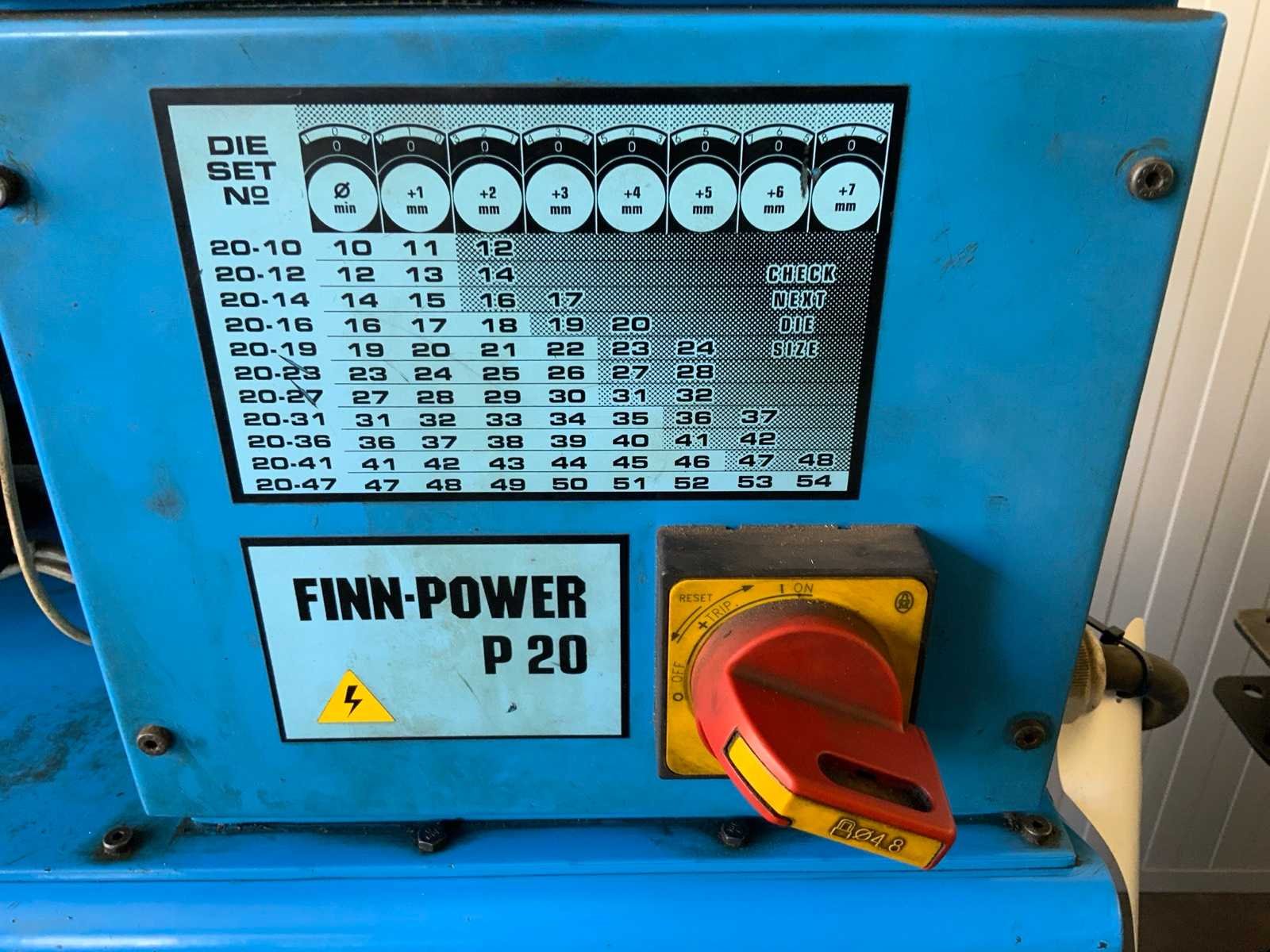 Inclusief toebehoren Merk: Finn-Power Type: P 20 Bouwjaar: 1998 Aansluiting: 400V Machinegewicht: 130kg Totale afmeting L: 1070mm Totale afmeting Breedte: 800mm Totale afmeting Hoogte: 1350mm