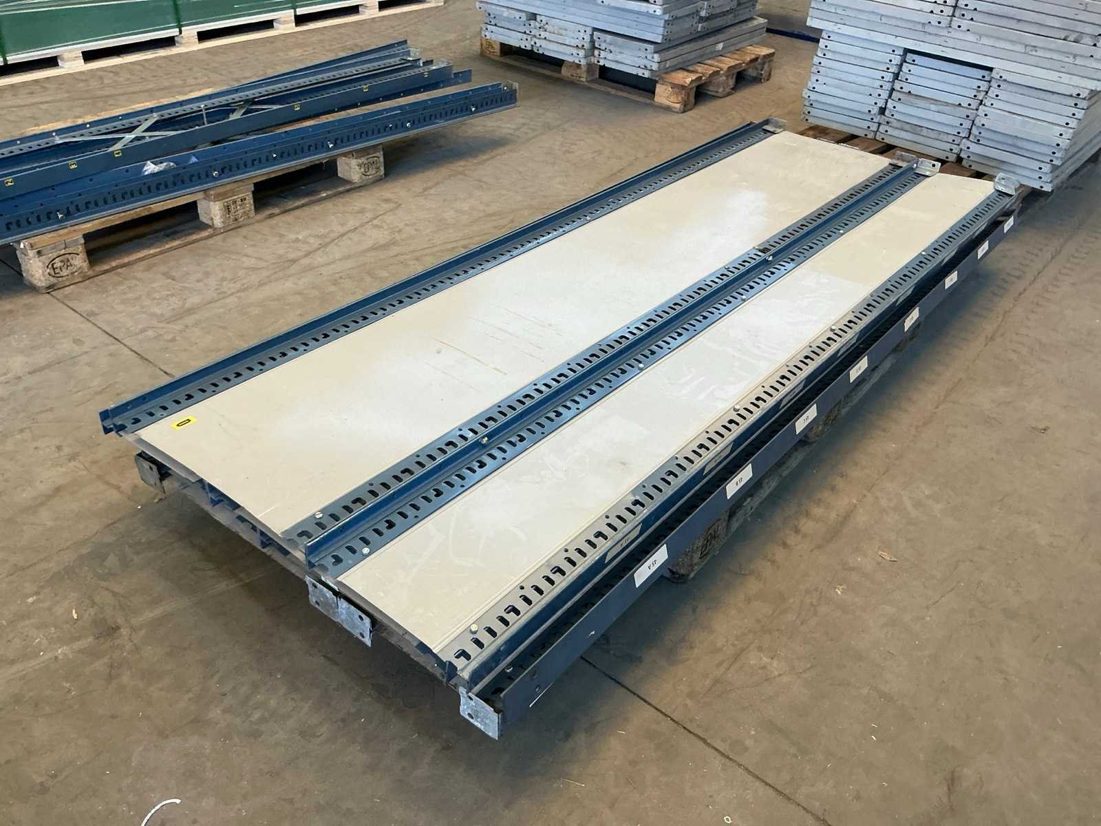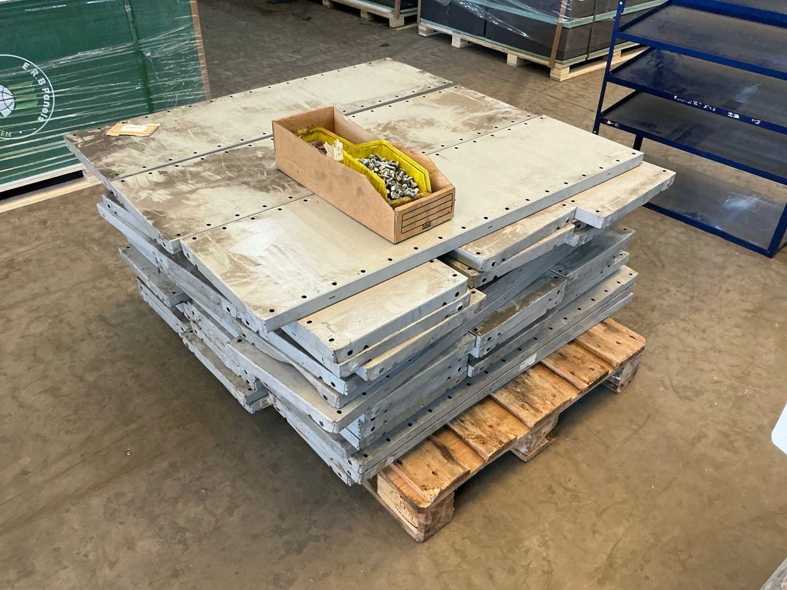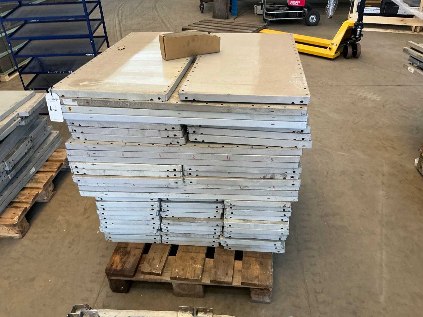 Op 4 pallets. Met bevestigingsmaterialen. Legborden onder andere LxB: 50x99cm en 30x99cm