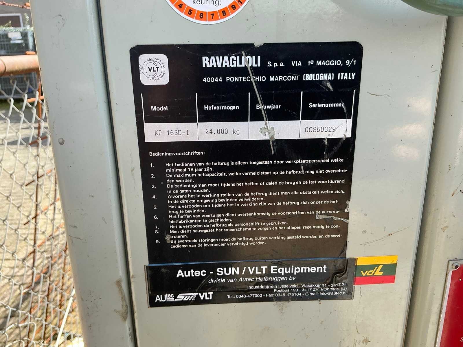 Merk: Ravaglioli Type: KP 163D-I Serienummer: 00860329 4-koloms: true Capaciteit.: 24000kg Totale afmeting L: 8100mm Totale afmeting Breedte: 3950mm Totale afmeting Hoogte: 1960mm