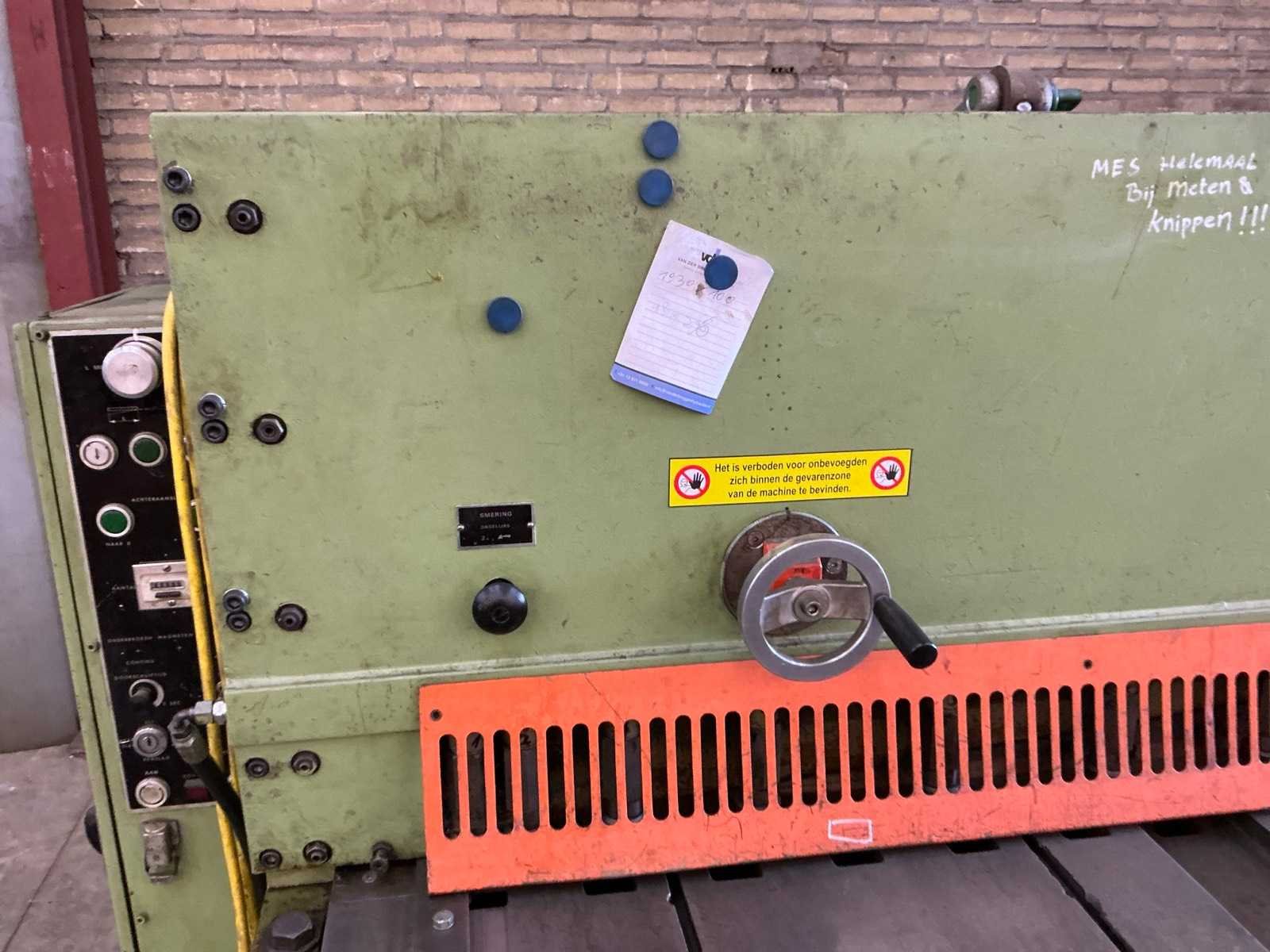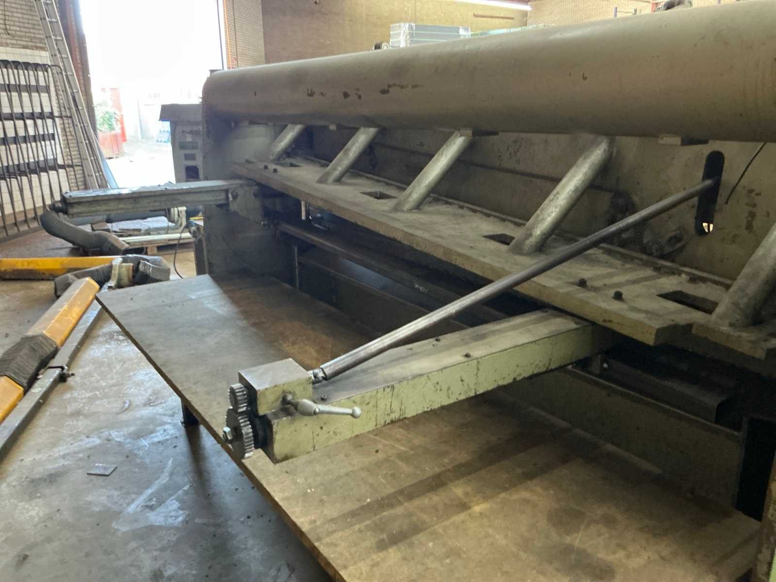 Merk: Wila Type: HS 255-6 Bouwjaar: 1969 Serienummer: 2816 Snijlengte: 2550mm Max. plaatdikte: 6mm Aansluiting: 400V Afmeting l: 2050mm Afmeting b: 3150mm Afmeting h: 1780mm