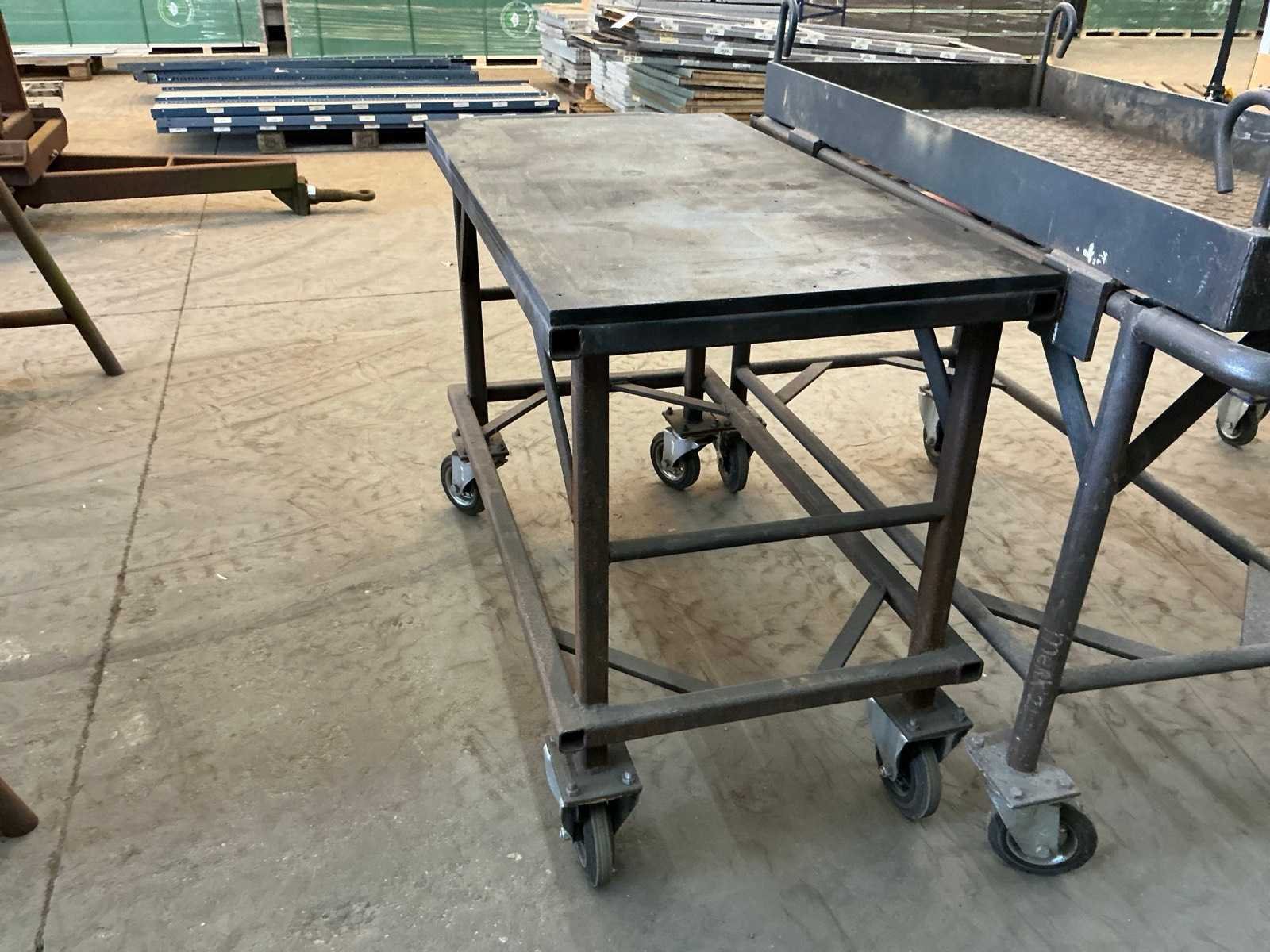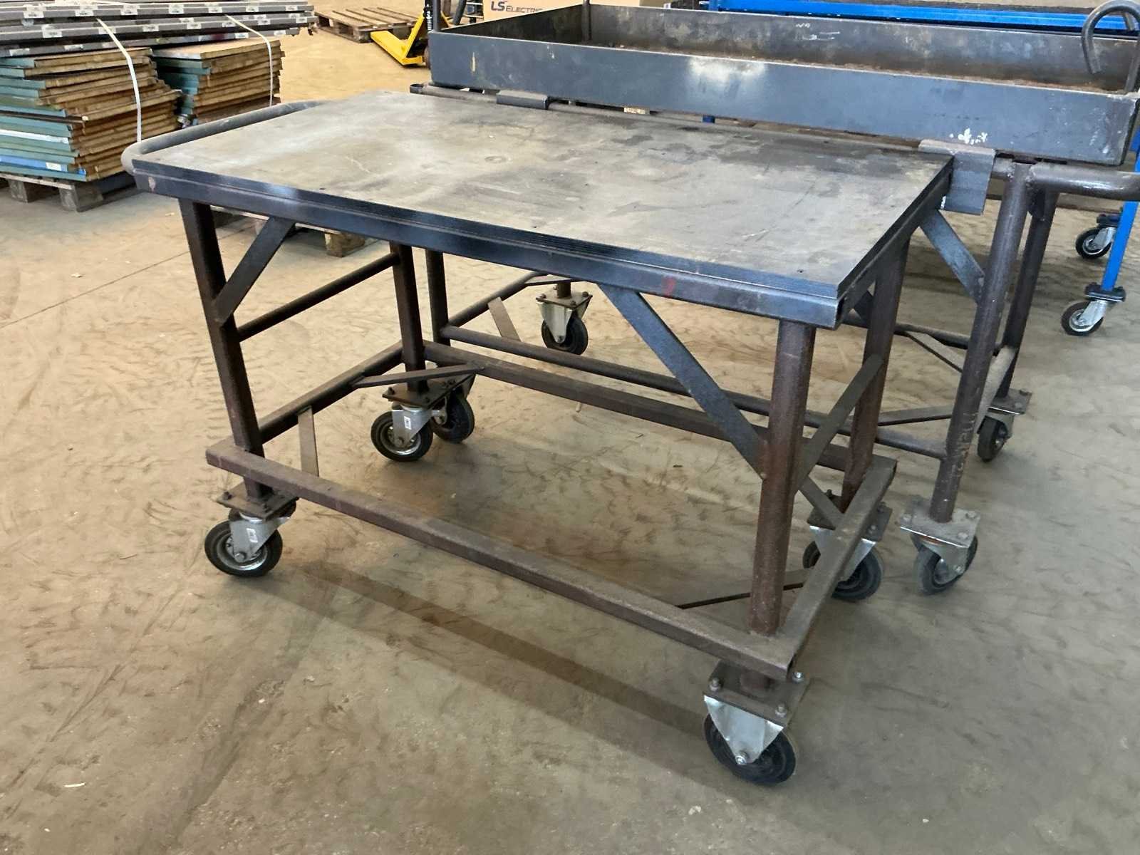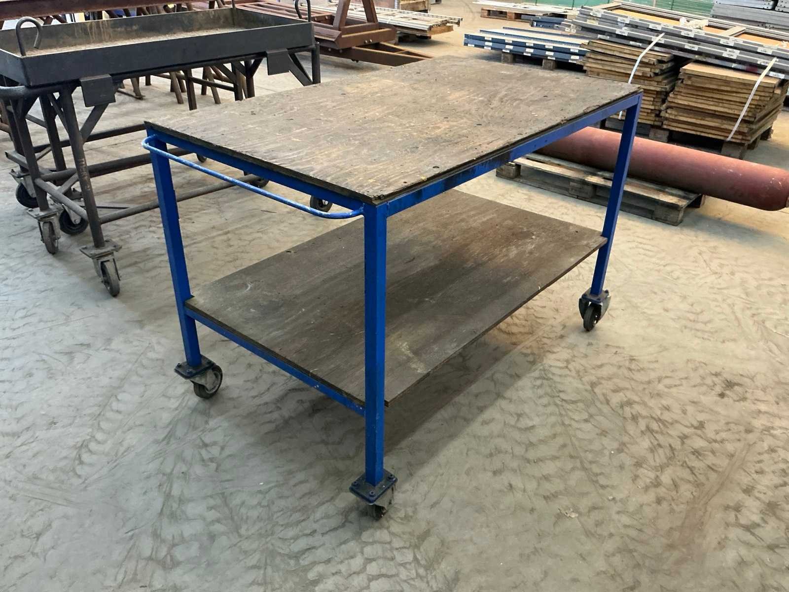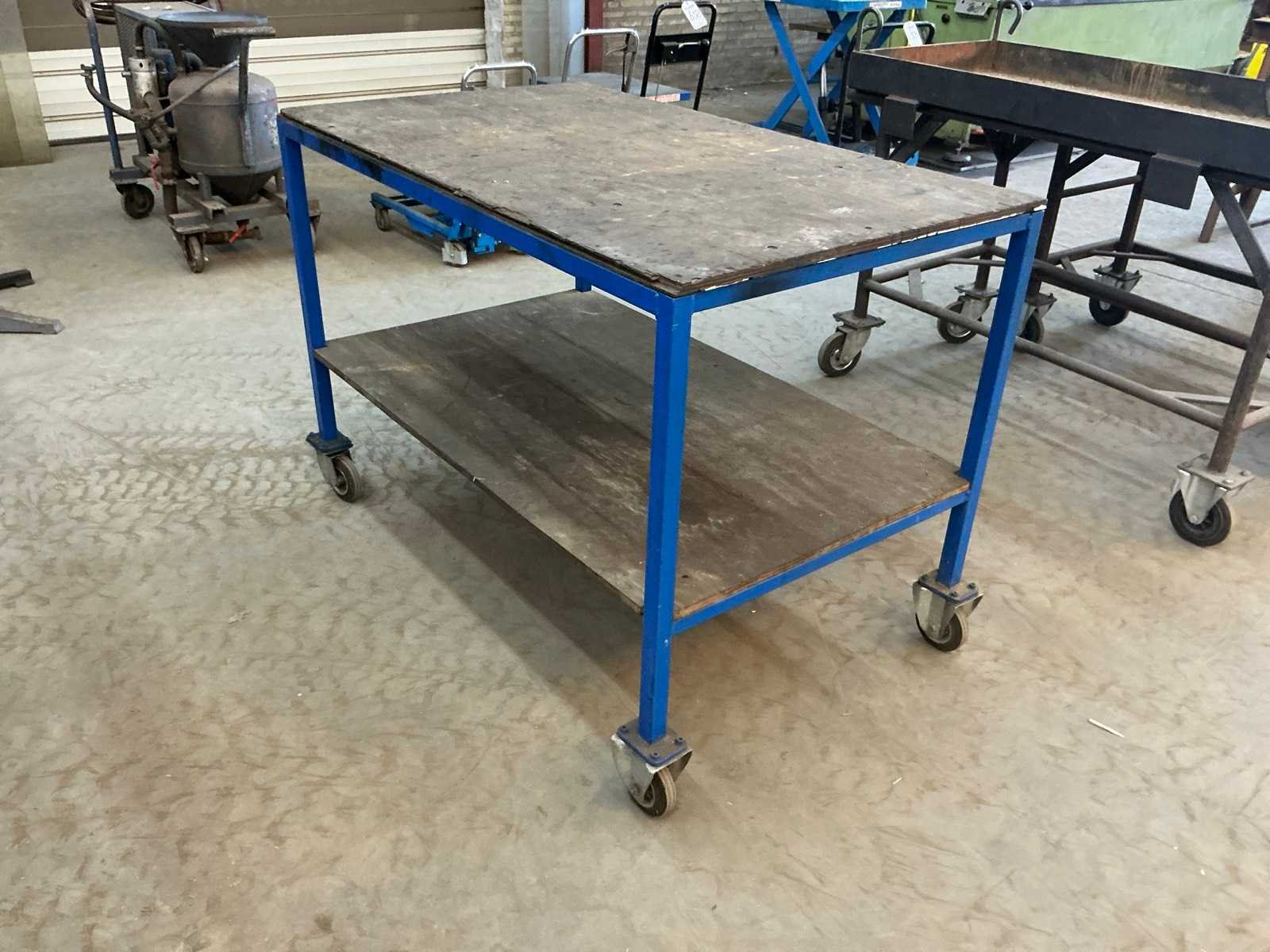 1x met houten blad (LxBxH:1450x830x970mm), 1x met metalen bak (LxBxH:1450x700x1140mm), 1x met enkel blad (LxBxH:1360x630x910mm)