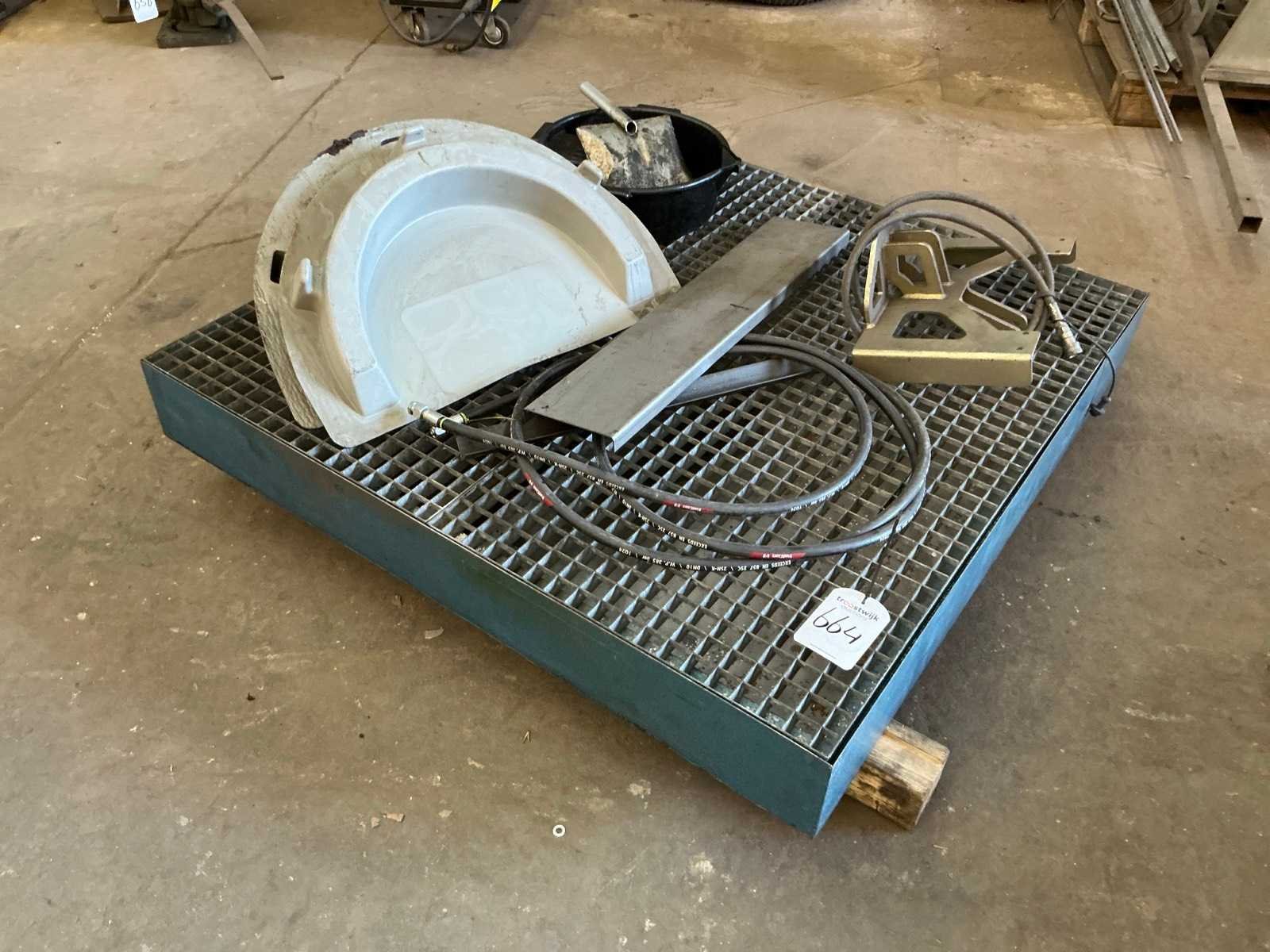 1x met rooster (LxBxH:1210x1210x160mm), 1x metalen bak (LxBxH:1570x1015x160mm)