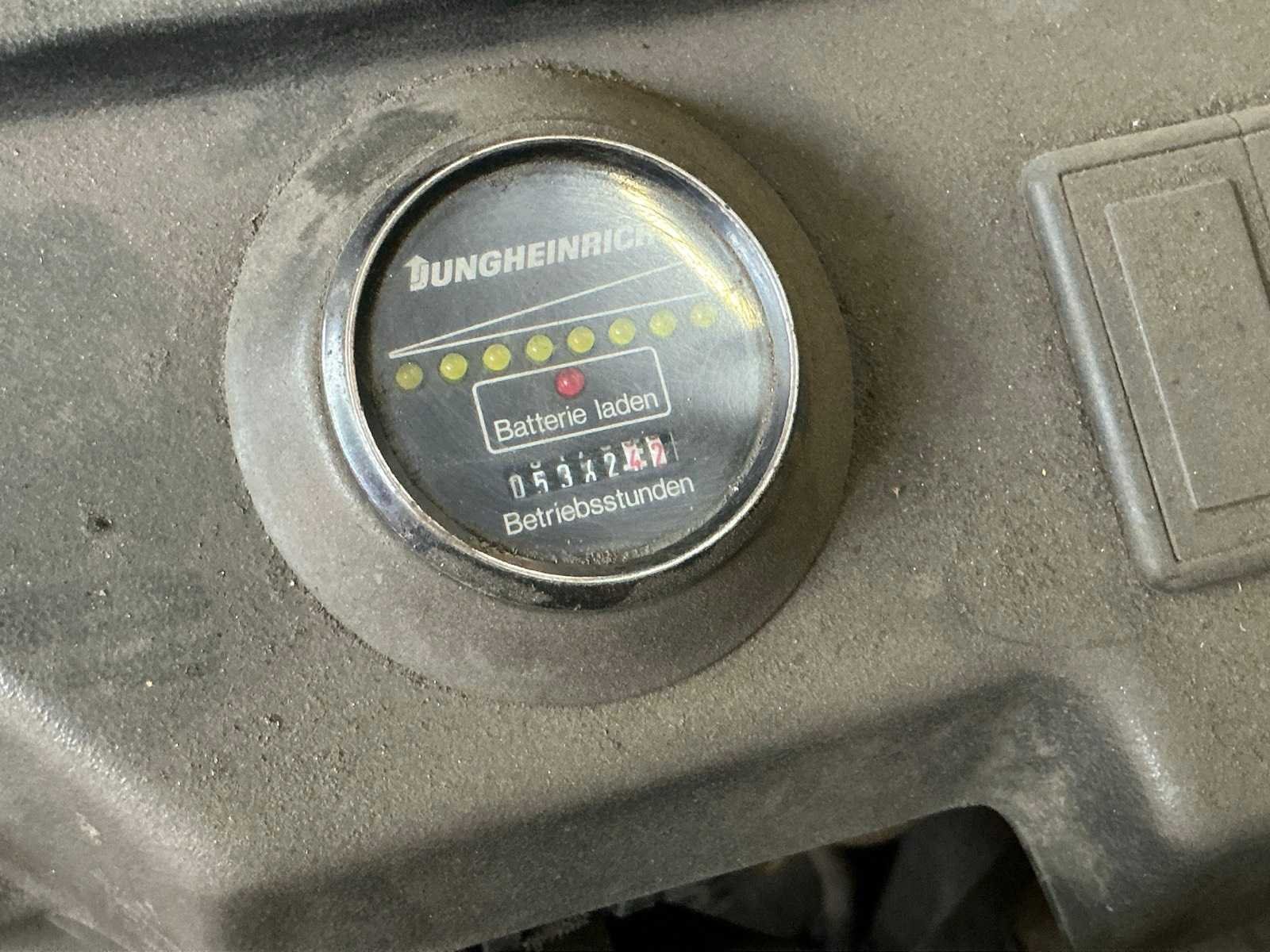 Merk: Jungheinrich Bouwjaar: 1990 Brandstof: Elektrisch Soort band: Volrubber Aantal wielen: 3 Afgelezen urenstand: 5362 Accu lader: true Free-lift: true Triple mast: true Lepellengte: 1140mm Minimale doorrijhoogte: 2720mm Totale afmeting L: 2500mm Totale afmeting Breedte: 1240mm Totale afmeting Hoogte: 2720mm Elektrisch: true Vol rubber banden: true