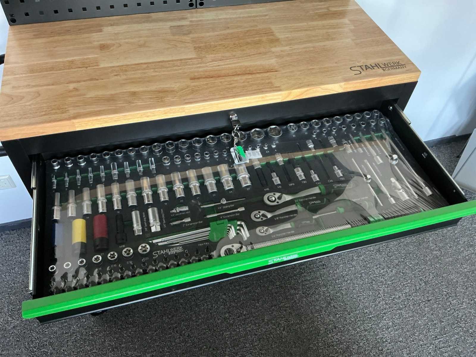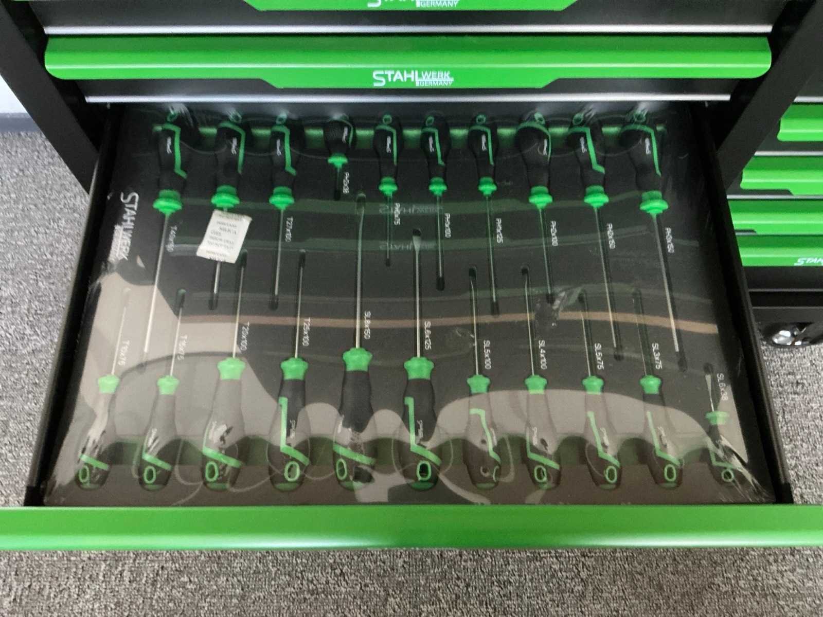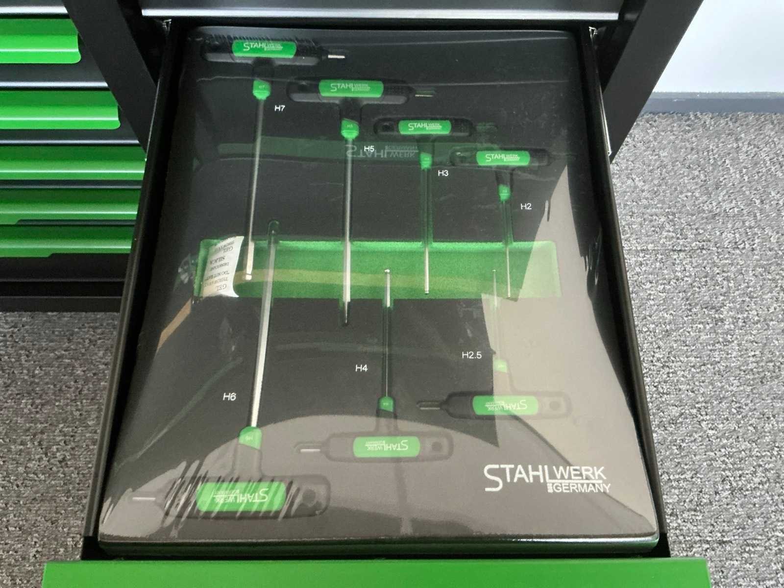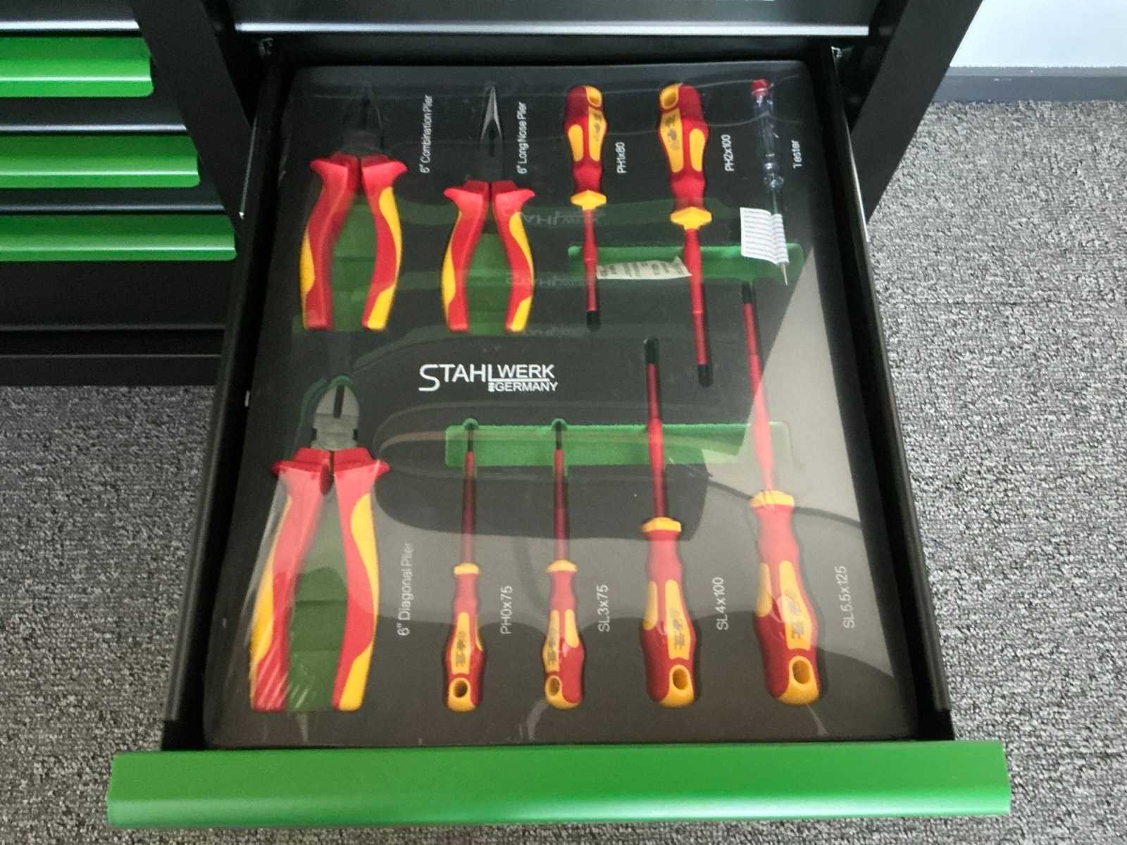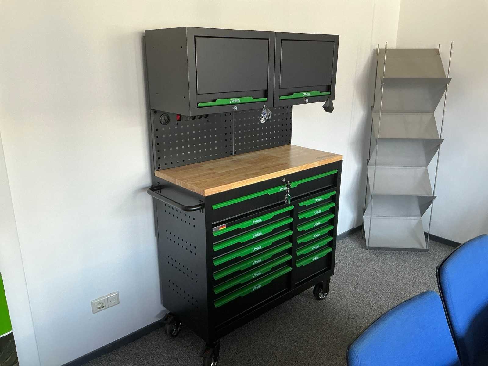 Voorzien van 2 zwenkwielen met rem, 3x 230v aansluiting en 2x USB Merk: Stahlwerk Aantal laden: 13 Met inhoud: true Totale afmeting L: 500mm Totale afmeting Breedte: 1140mm Totale afmeting Hoogte: 1700mm