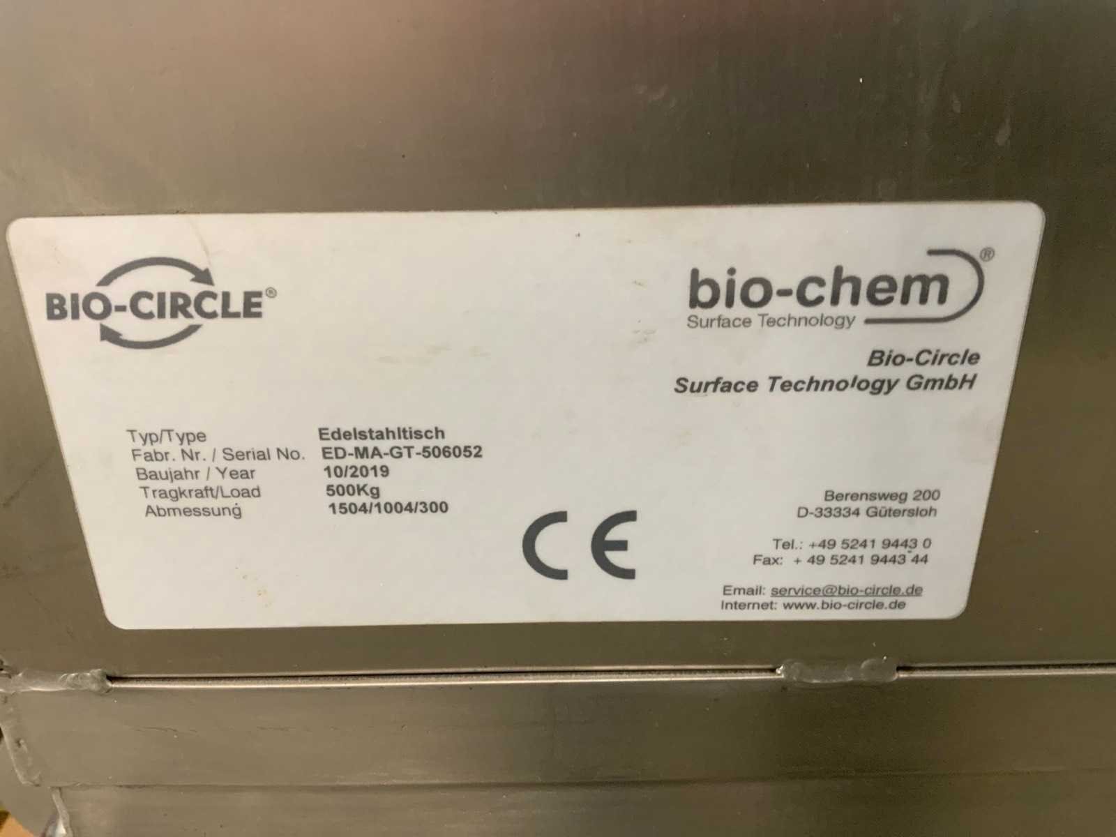 Draaglast: 250 kg Merk: Bio-Circle Type: Edelstahitisch Bouwjaar: 2019 Serienummer: ED-MA-GT-506052 Aansluiting: 230V Afmeting l: 1504mm Afmeting b: 1004mm Afmeting h: 1250mm