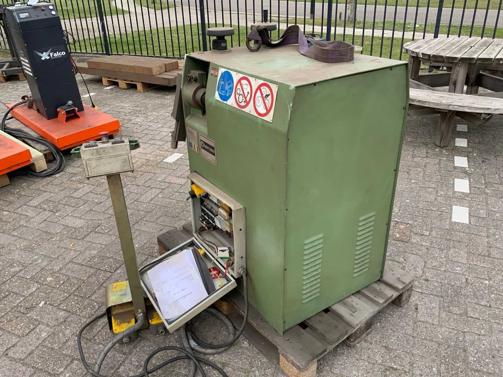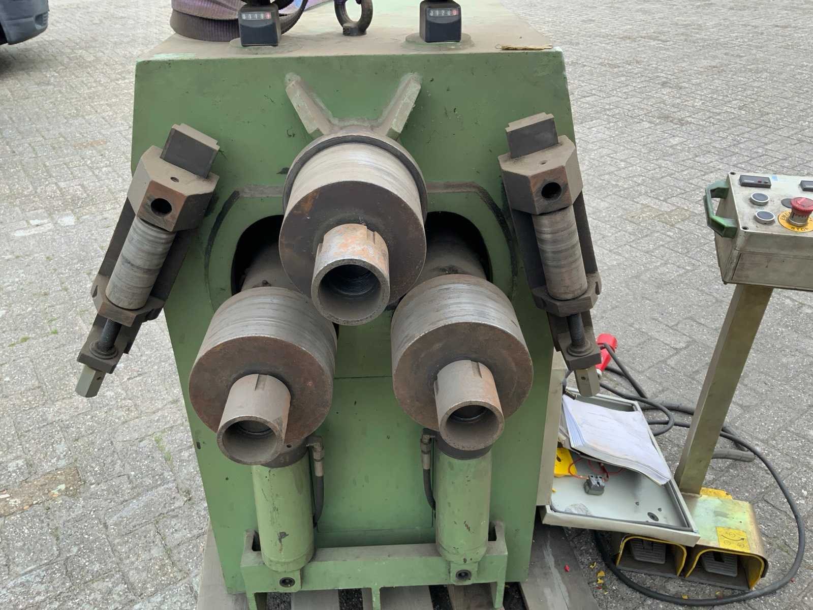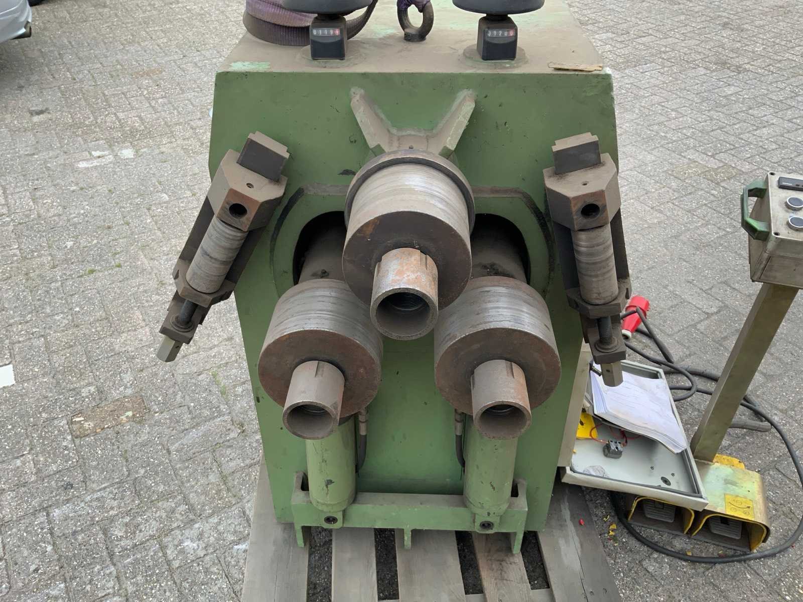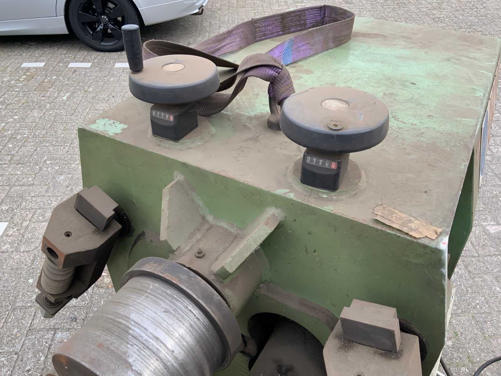 Inclusief rek met diverse buigrollen Merk: Comac Type: 303 HV Bouwjaar: 2000 Serienummer: 303131HV Aantal rollen: 3 Verticaal: true As Ø: 50 Voetbediening: true Digitale uitlezing: true Aansluiting: 380V Afmeting l: 1250mm Afmeting b: 1200mm Afmeting h: 1200mm