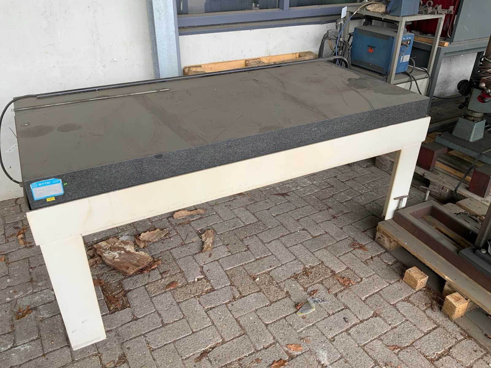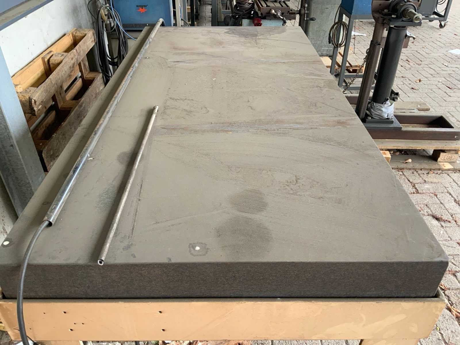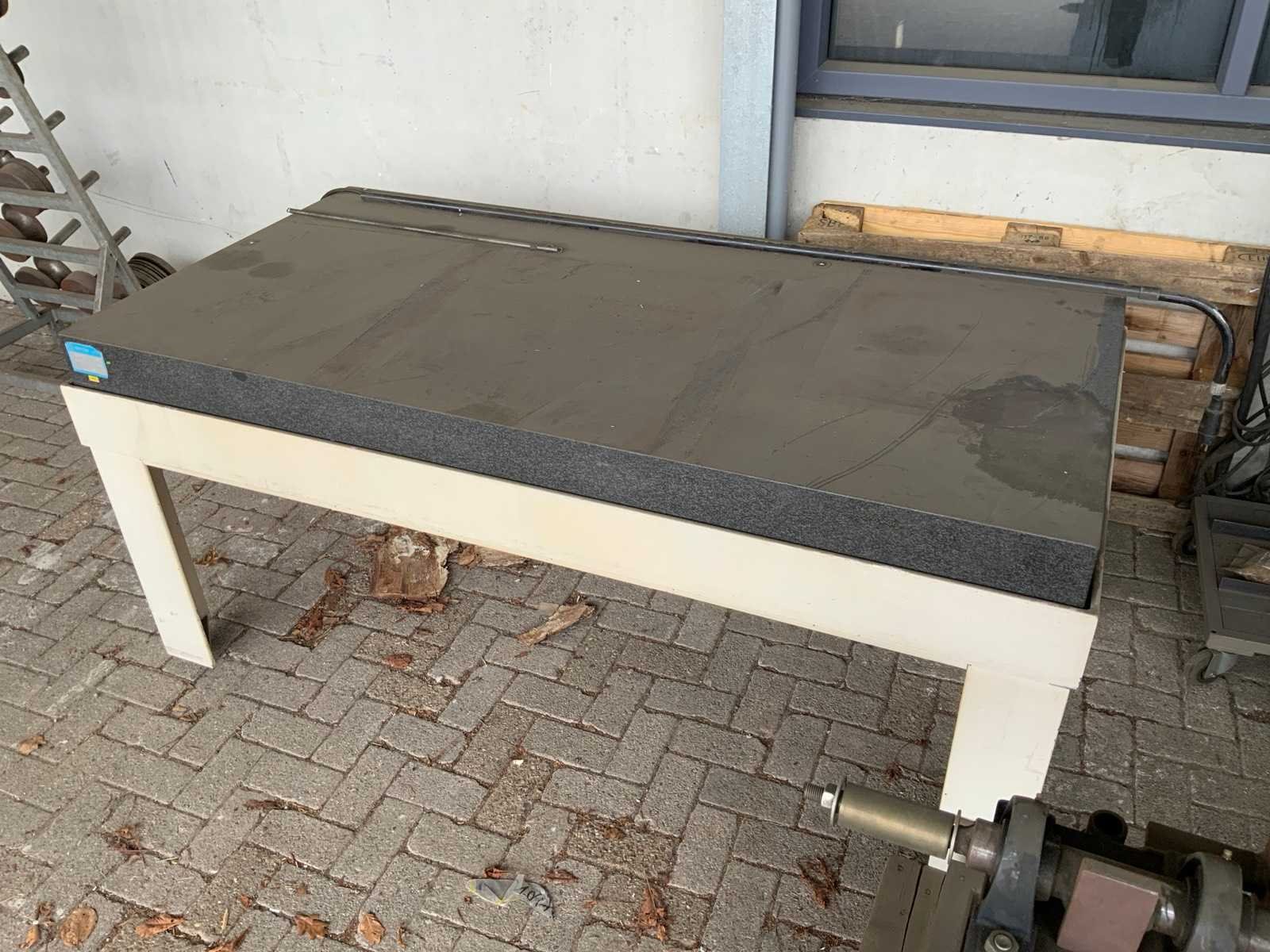 Op stalen onderstel, voorzien van stelpoten Merk: Mytri Bouwjaar: 2011 Graniet: true Totale afmeting L: 2000mm Totale afmeting Breedte: 1000mm Totale afmeting Hoogte: 915mm