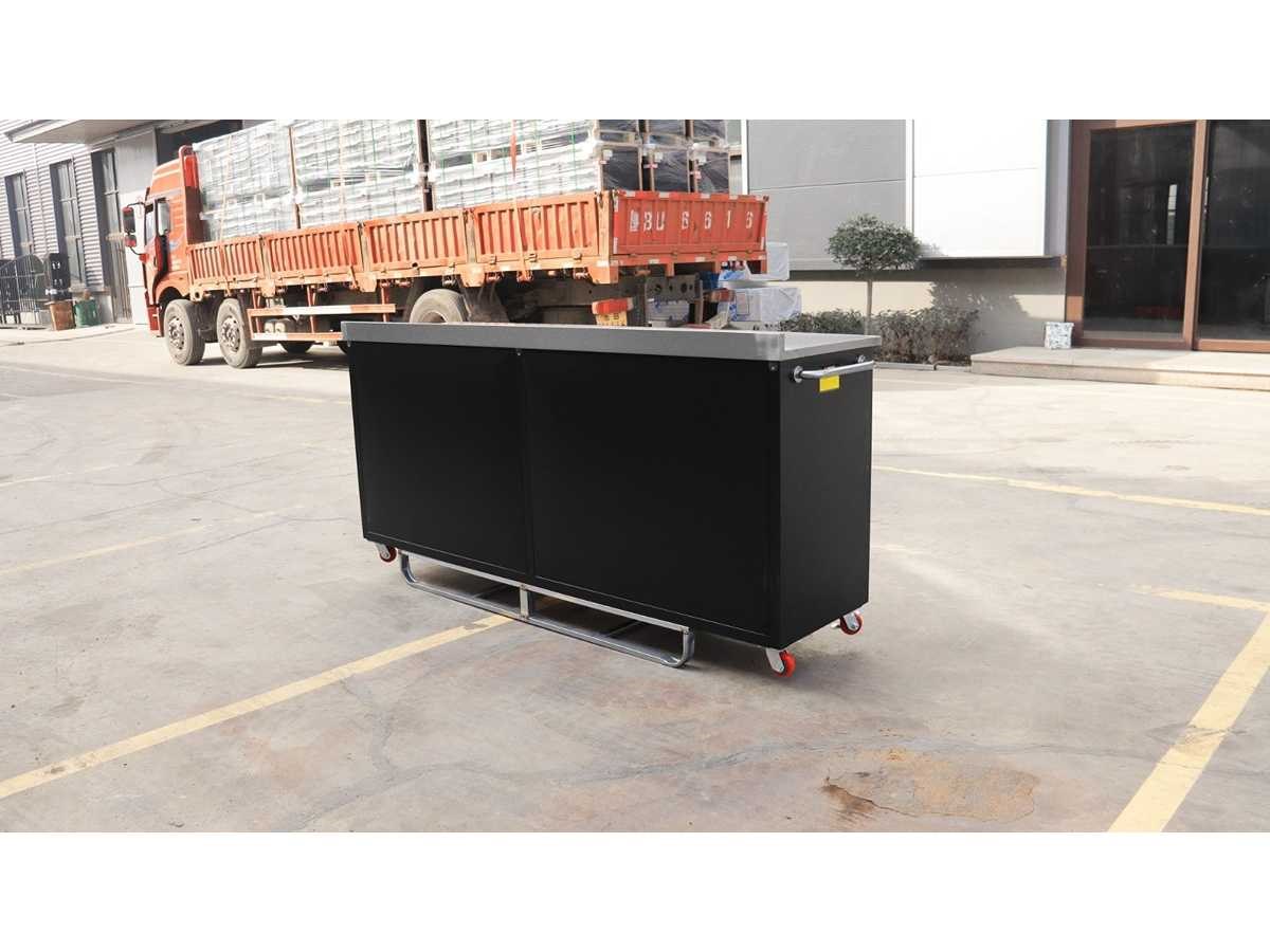 Voorzien van Gepoedercoat staal met RVS lades; 10 lades; Ongebruikt (Transportafmeting 1720x660x970mm) Merk: Rhino-Cross-Workbench Type: 7ft-20D-01C RVS Aantal laden: 28